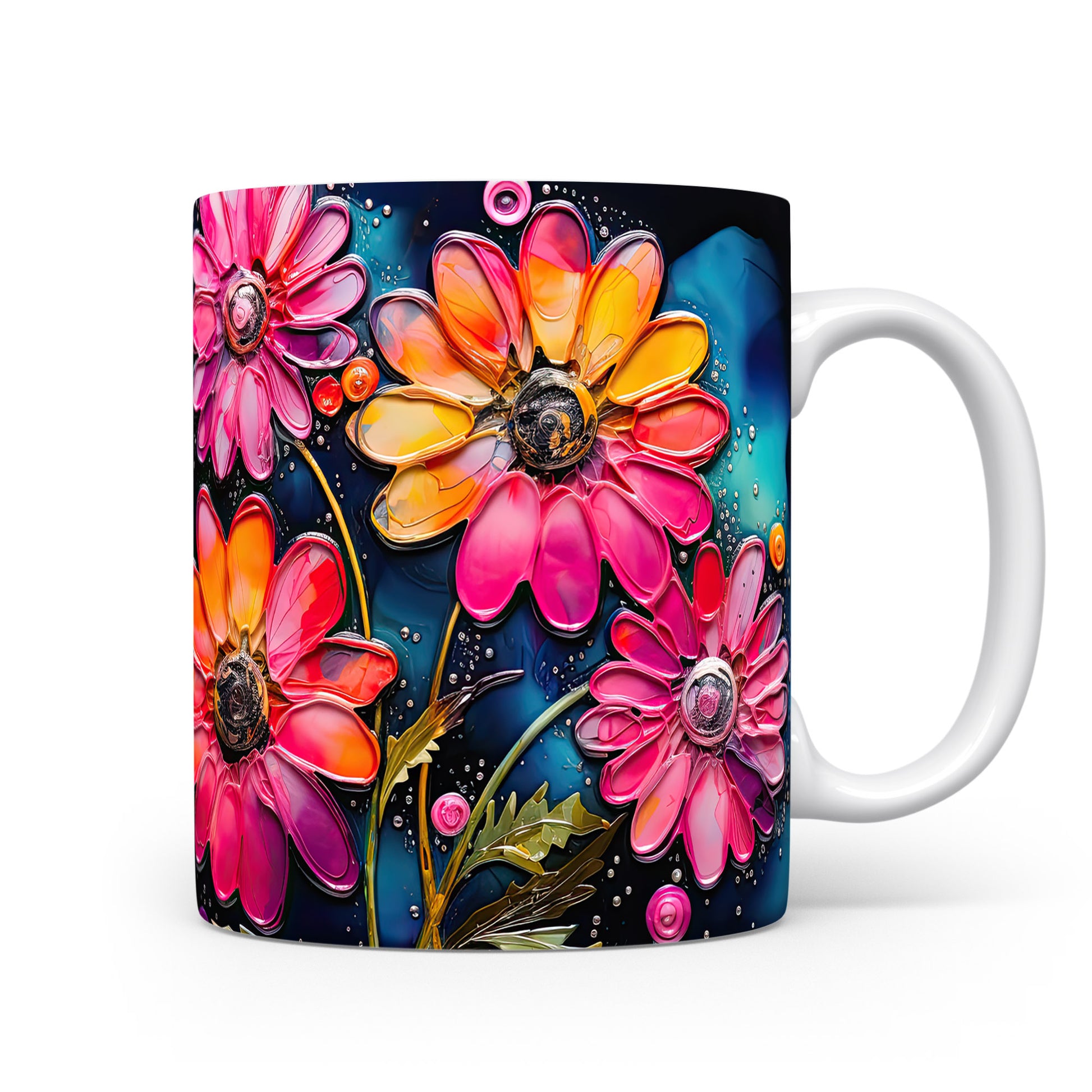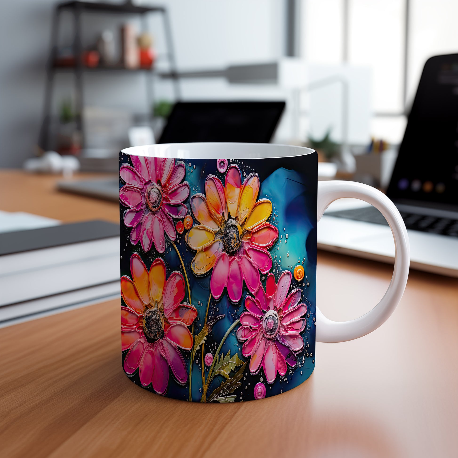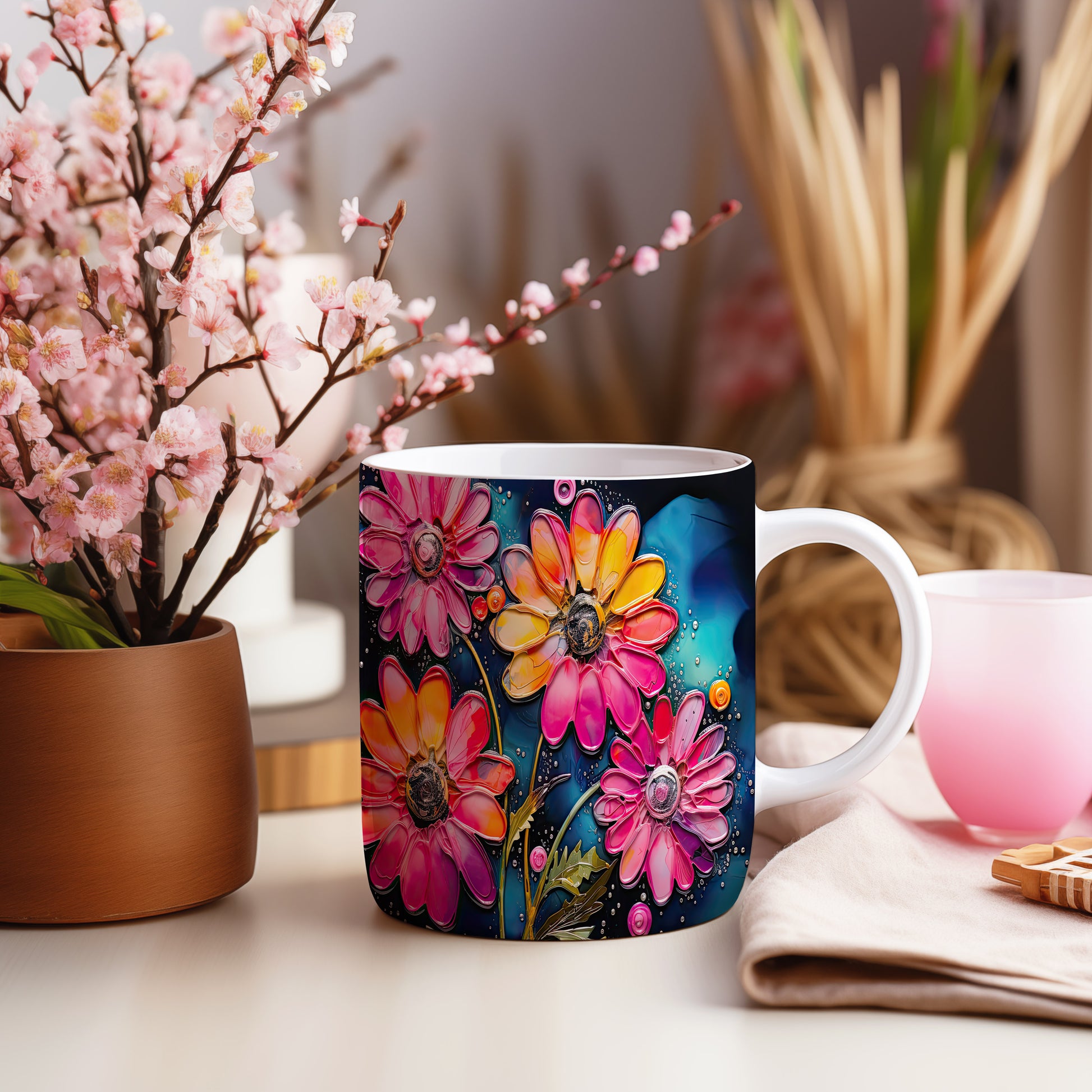 Hrnek s květinami v barevném designu – digitální ilustrace