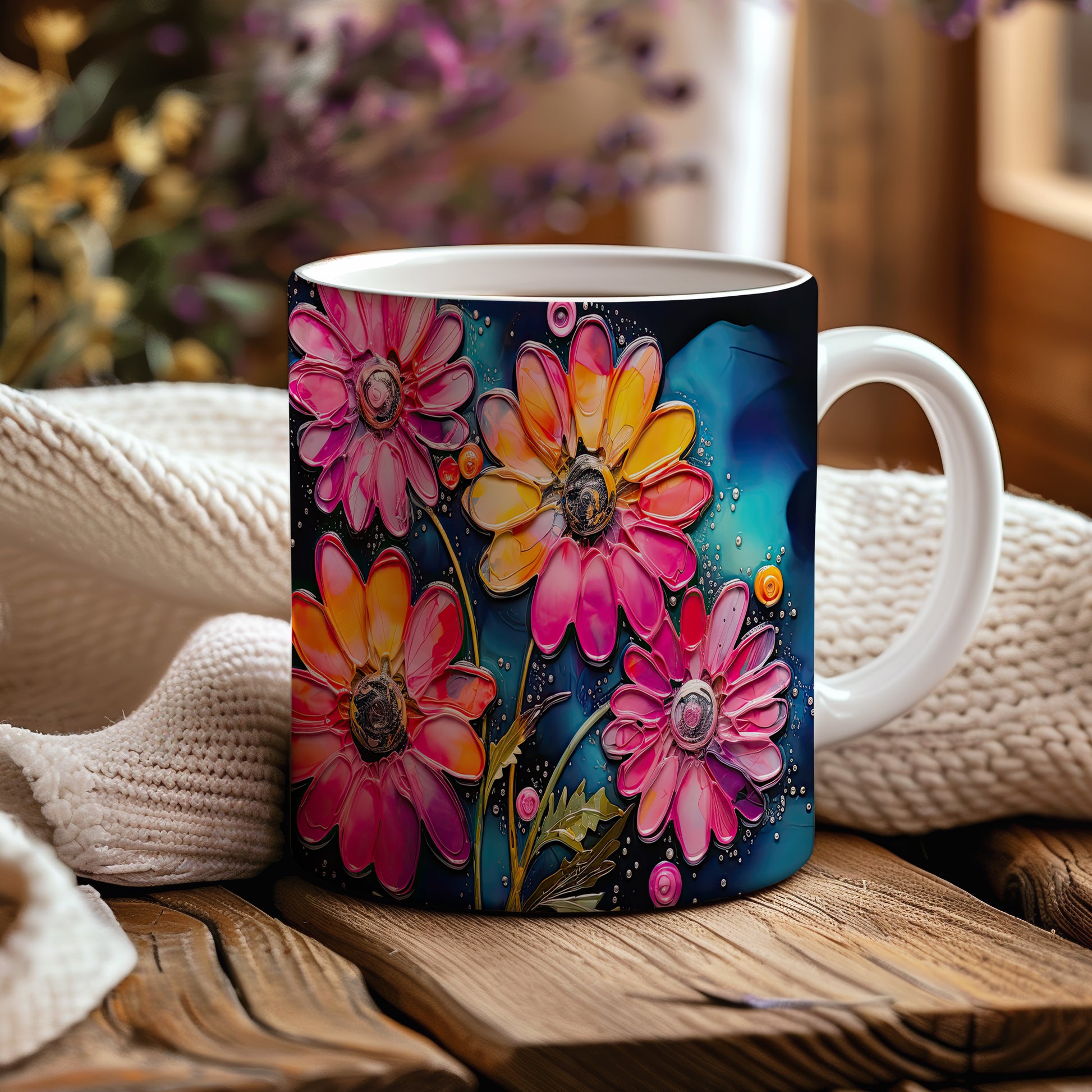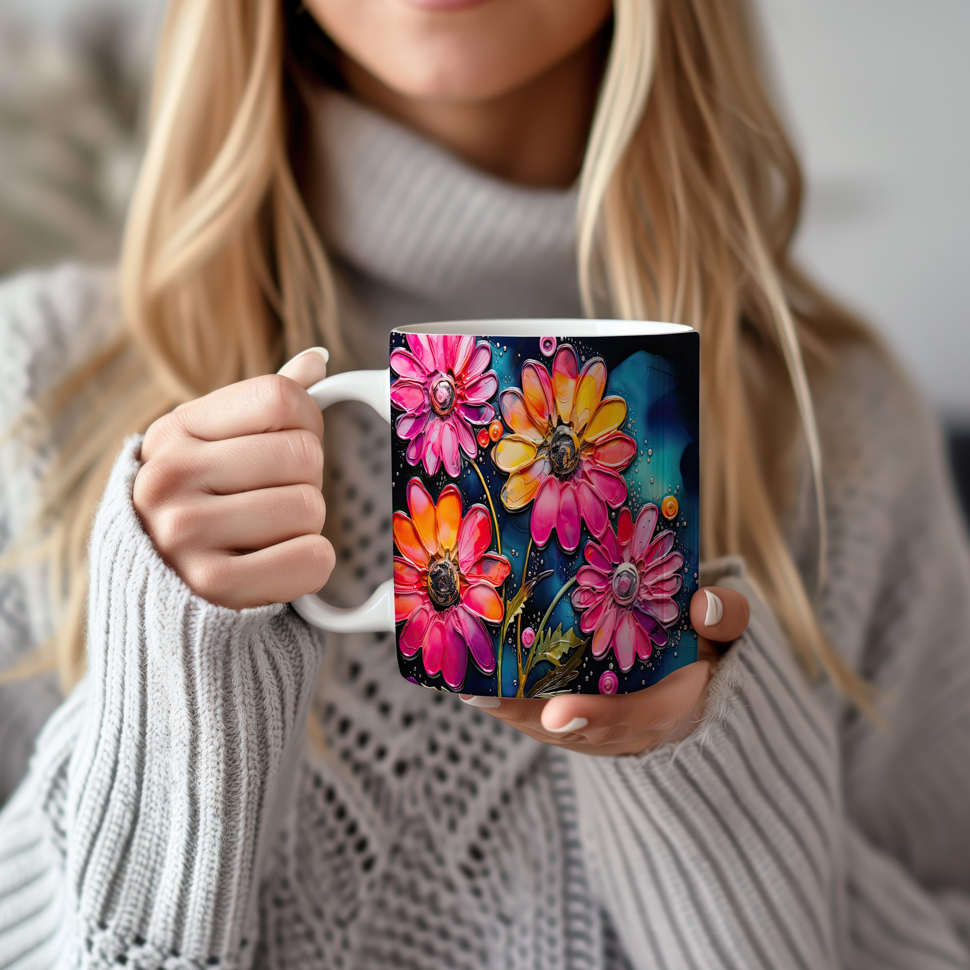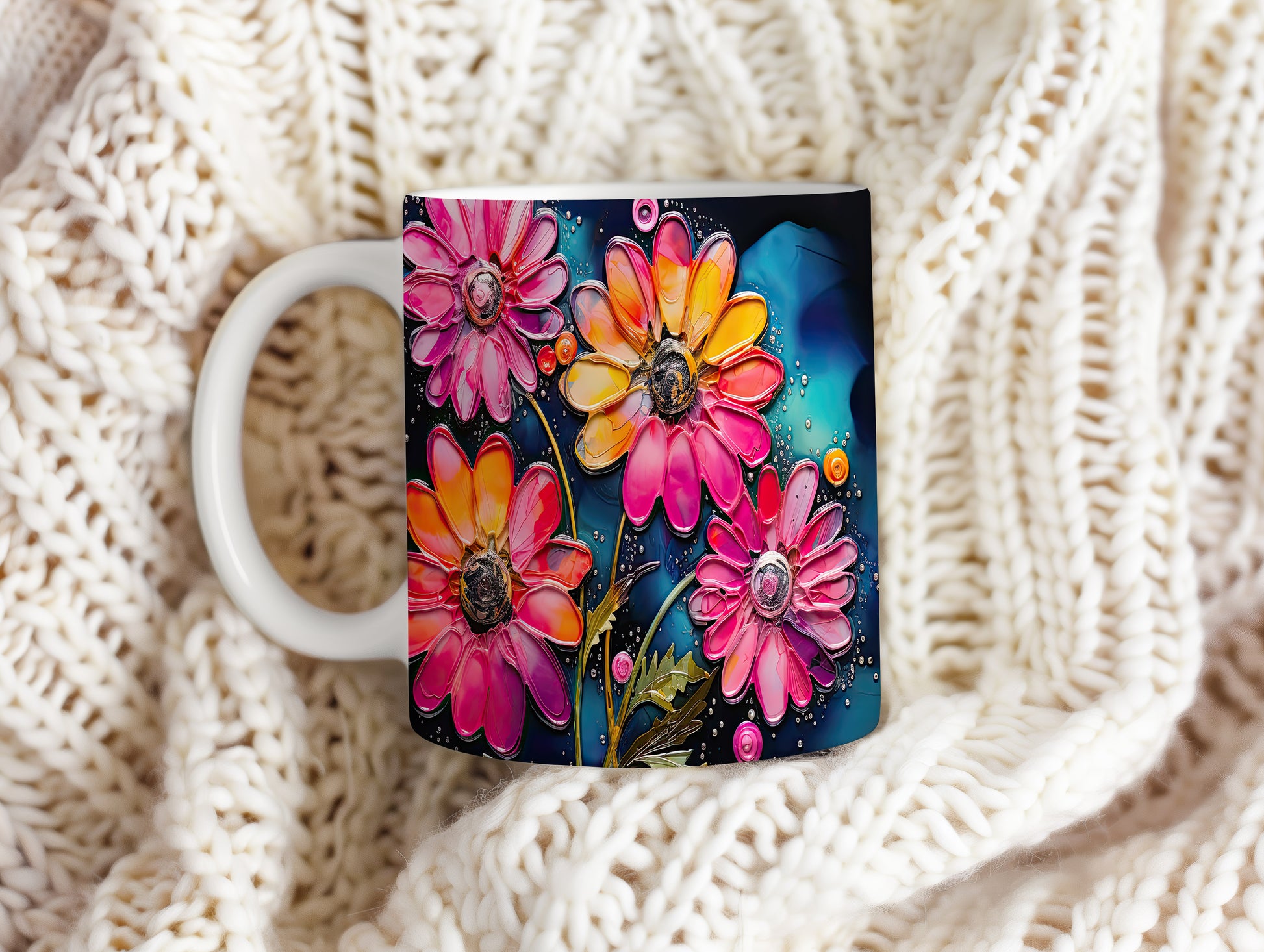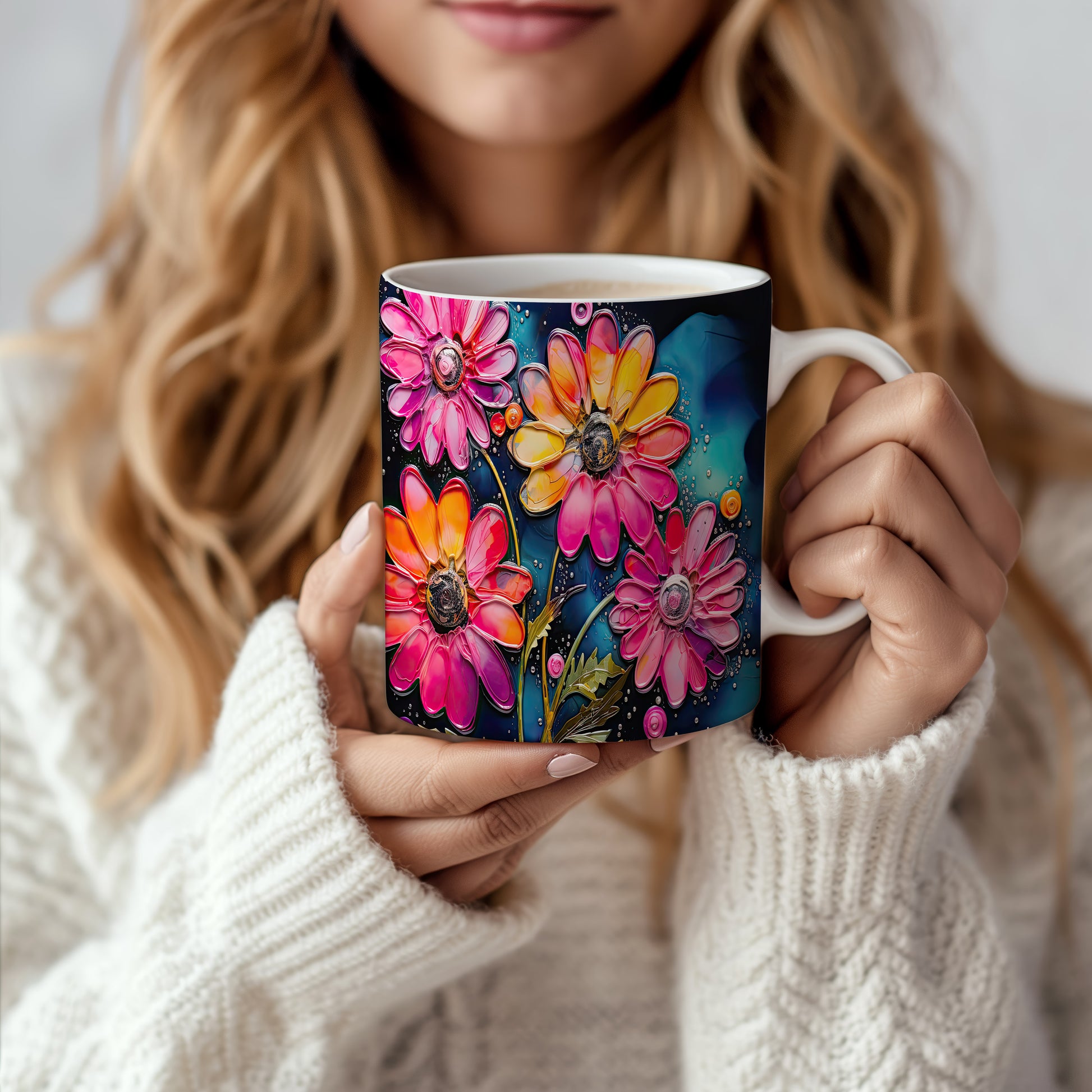 Hrnek s květinami v barevném designu – digitální ilustrace