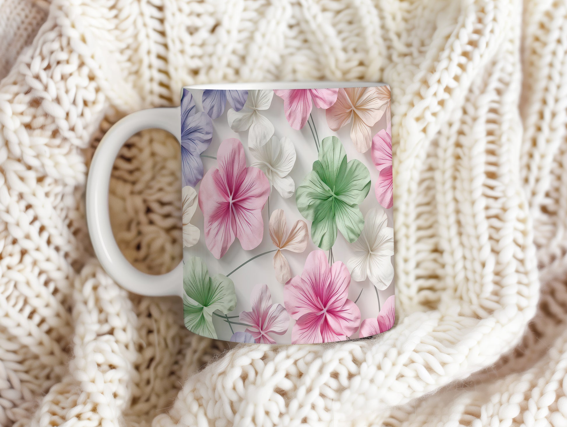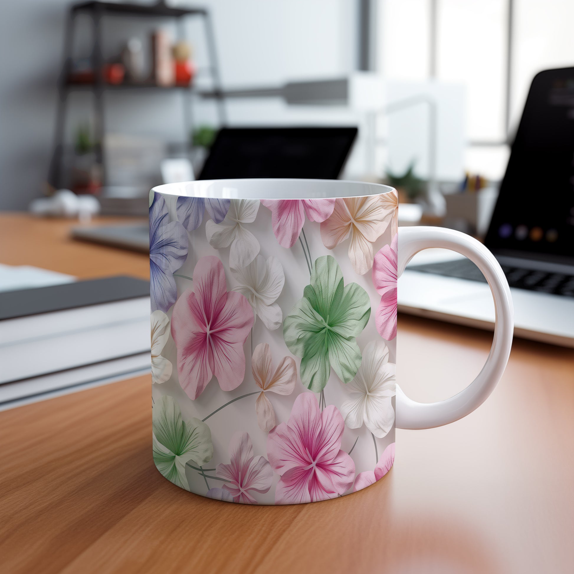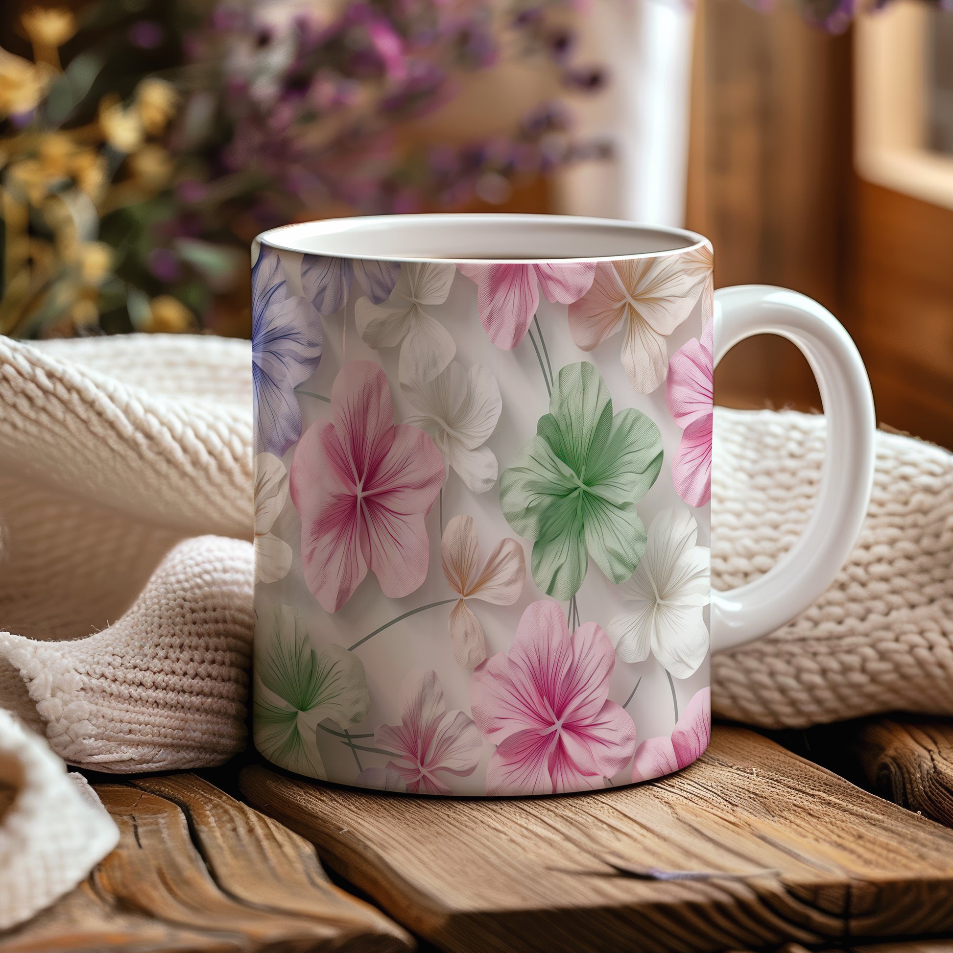 Hrnek s květinami v jemných tónech a roztomilým stylem