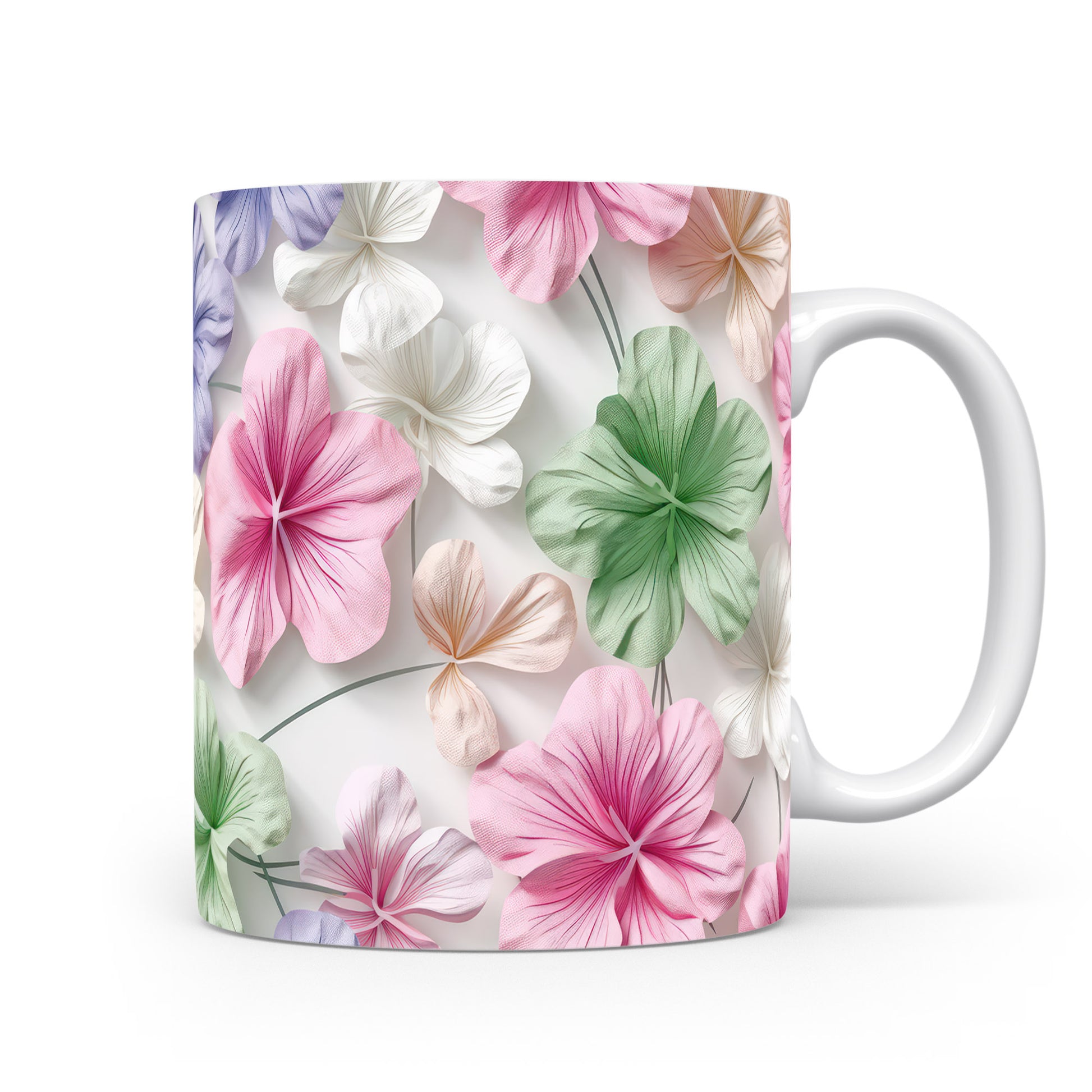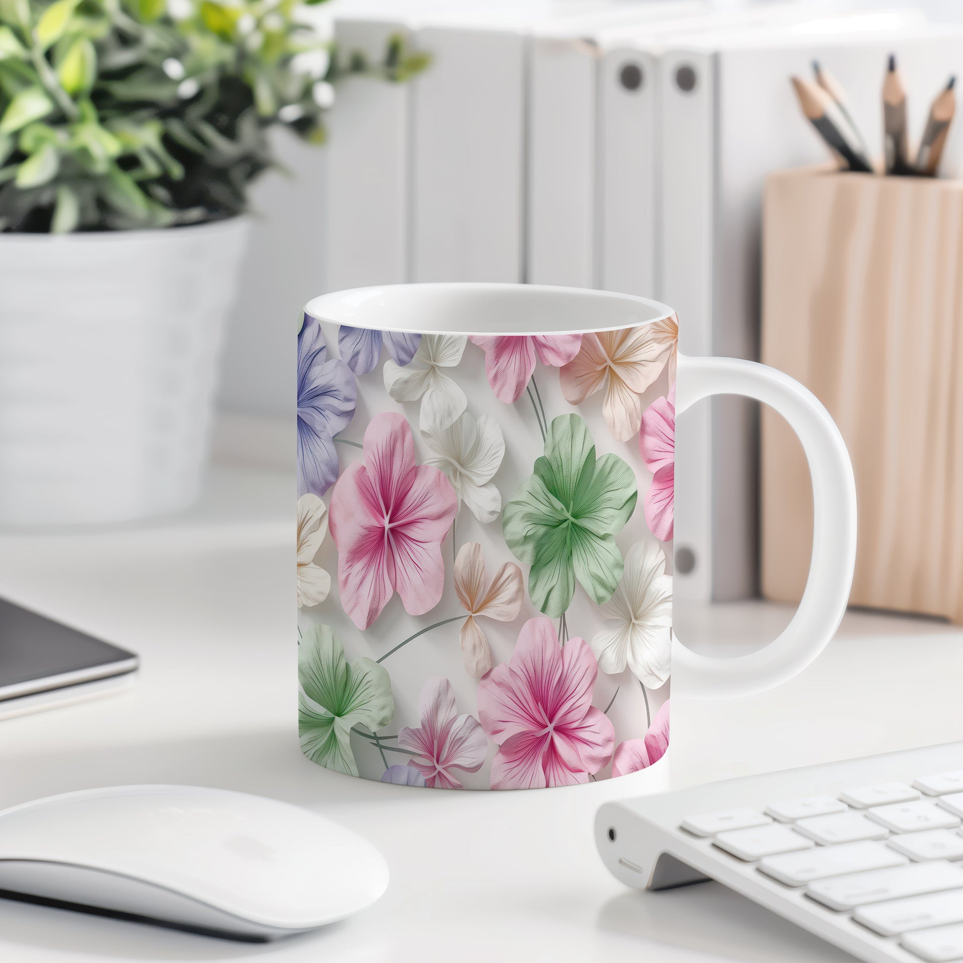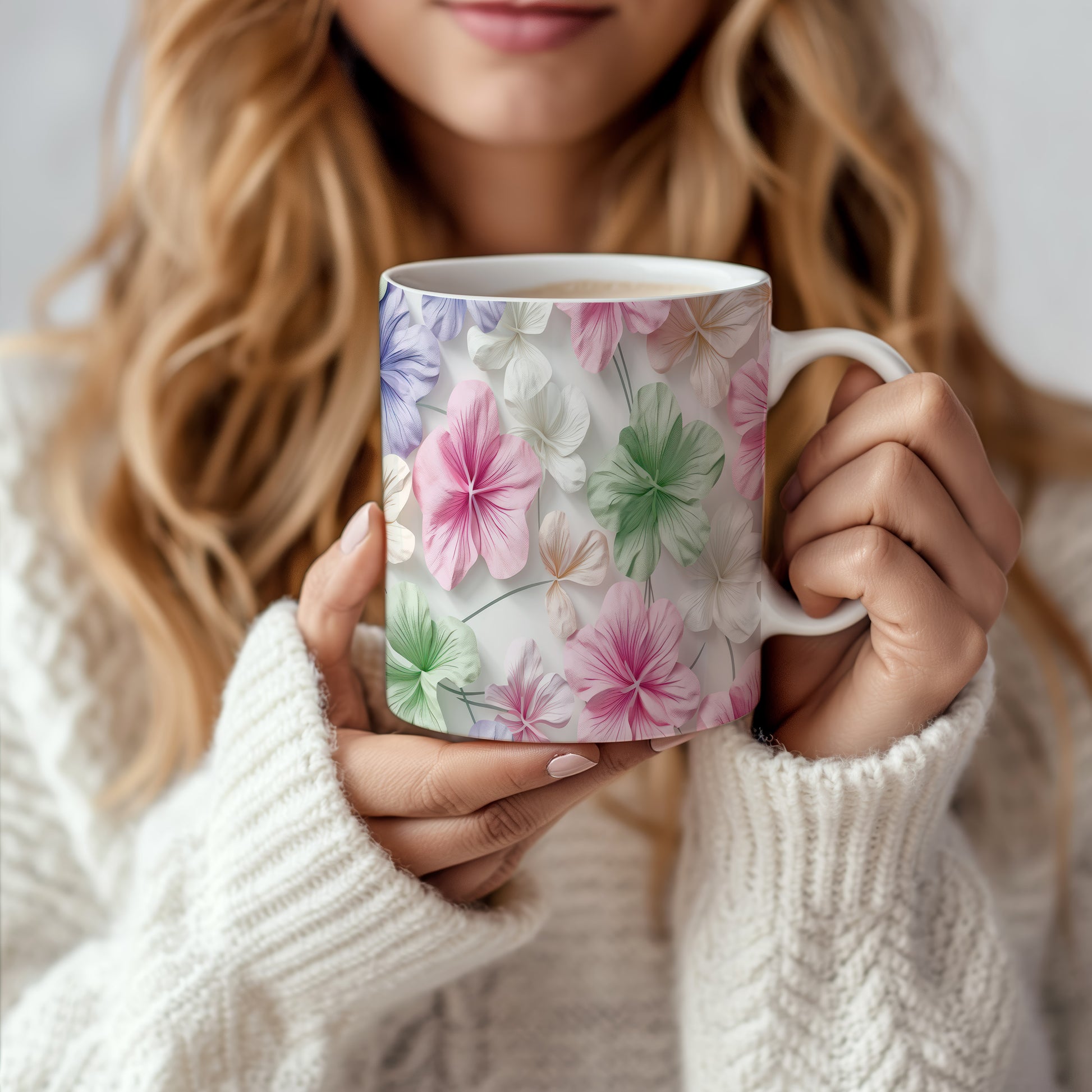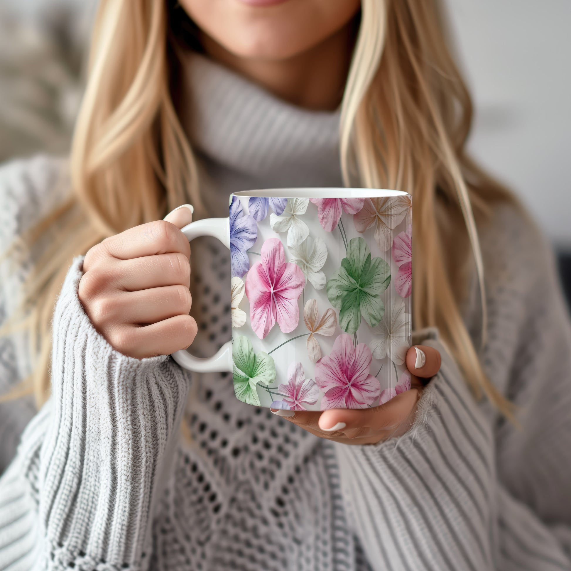 Hrnek s květinami v jemných tónech a roztomilým stylem