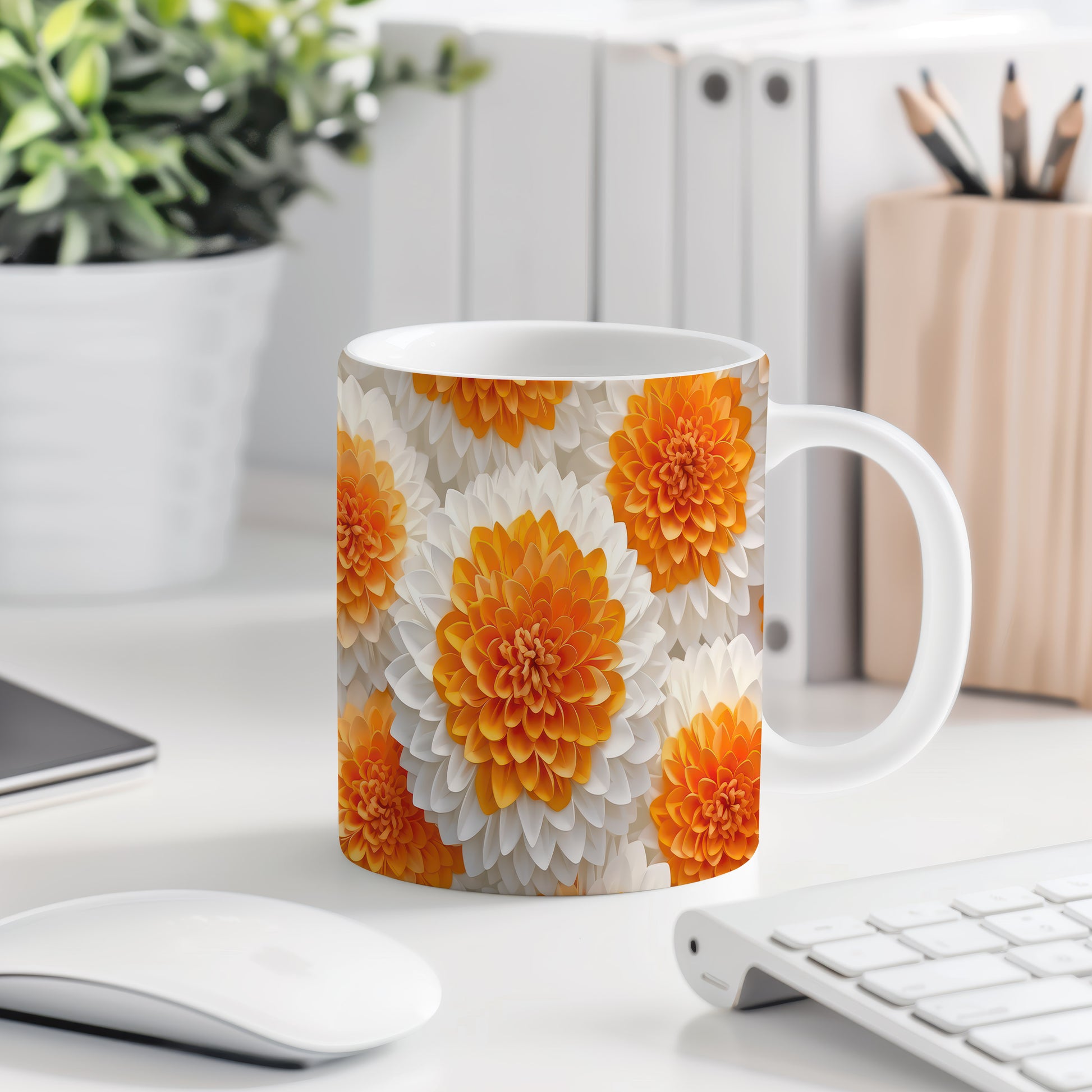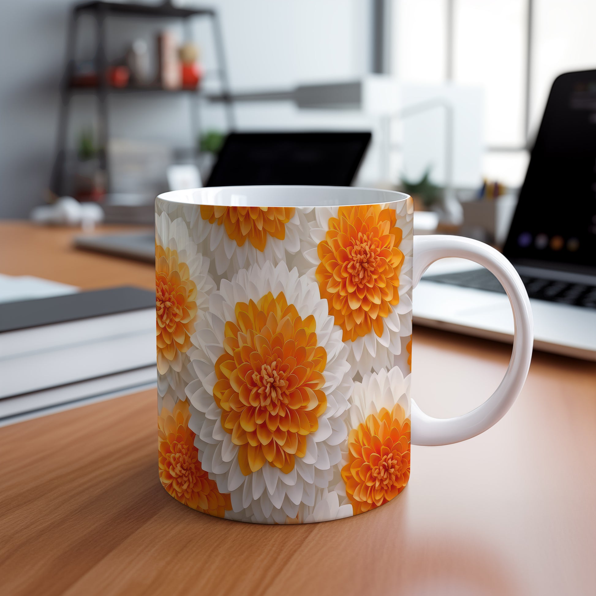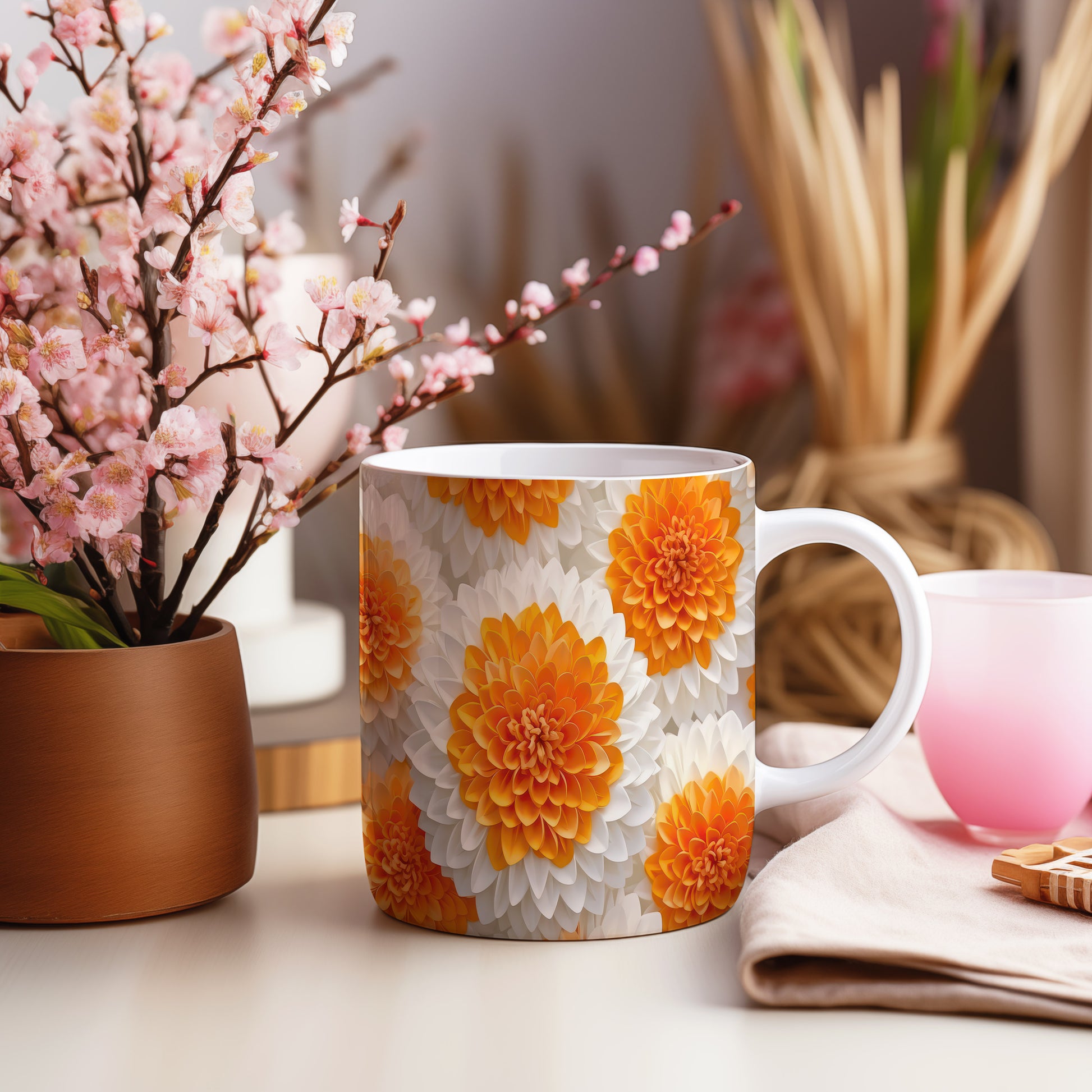 Tento hrnek je ozdobený krásnými květinami v oranžových a bílých tónech. Je ideální pro milovníky přírody a skvělým dárkem pro přátele či rodinu. Materiál: keramika. Objem: 330 ml. Vhodné do myčky i mikrovlnky. Díky svému designu přináší do každodenního pití radost a barevnost.