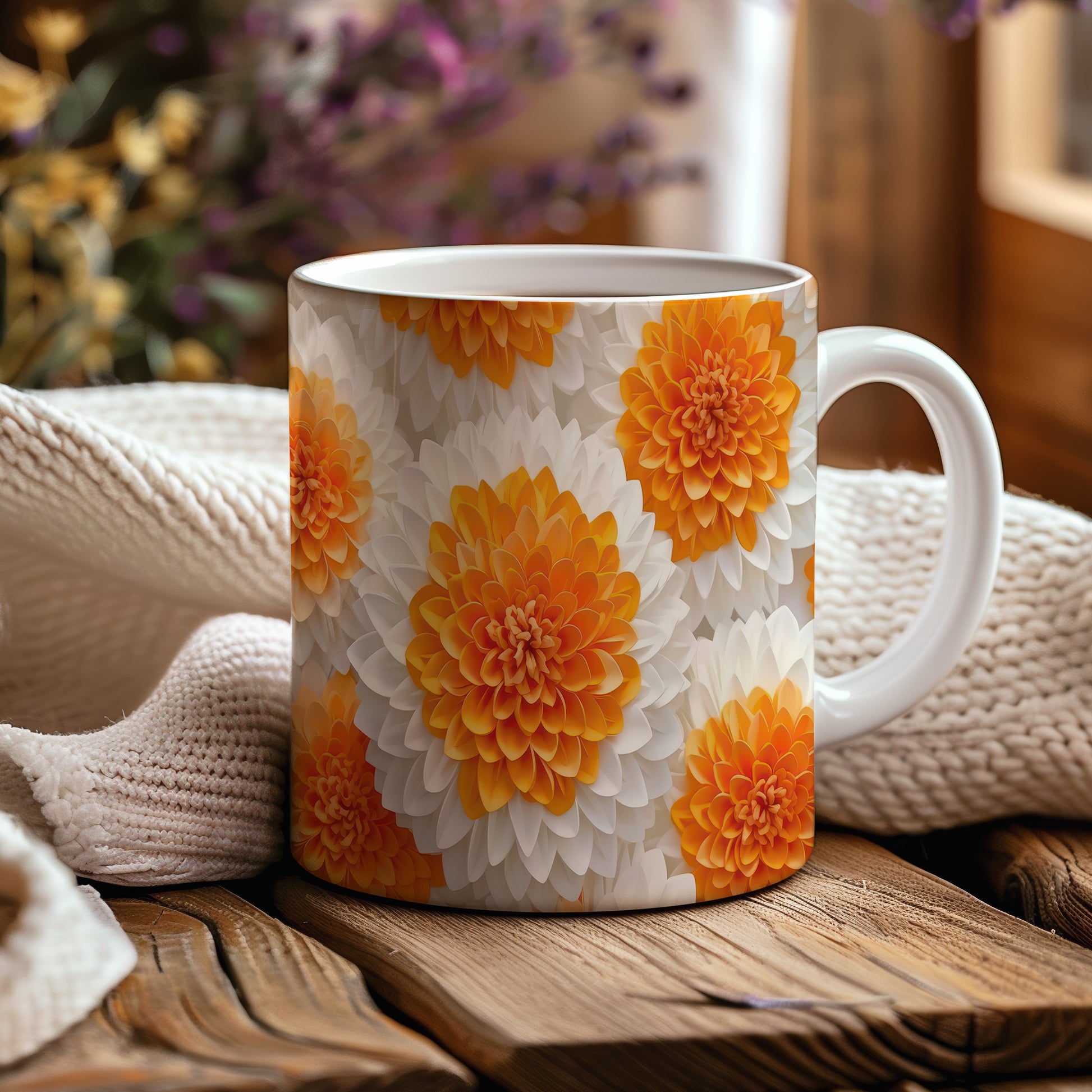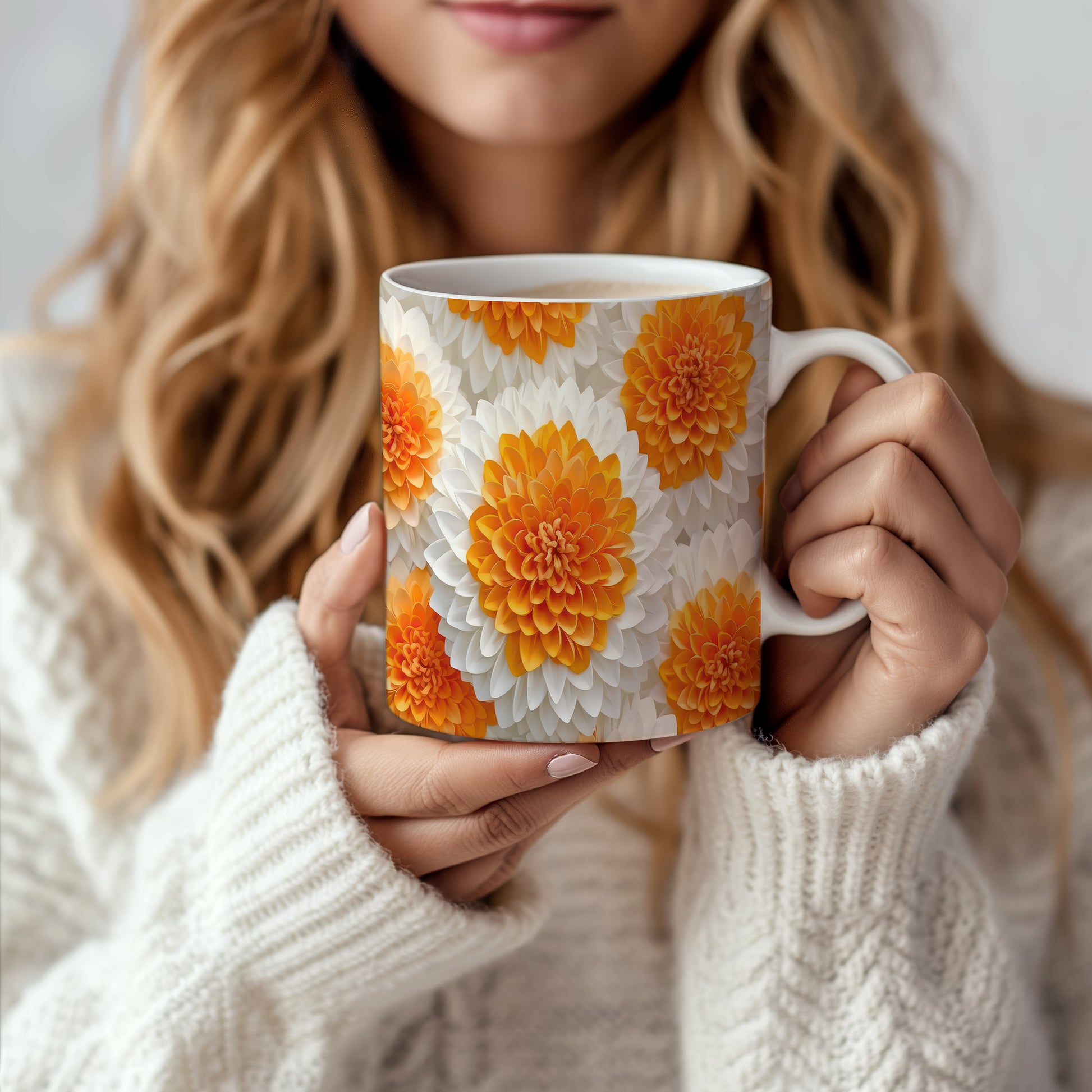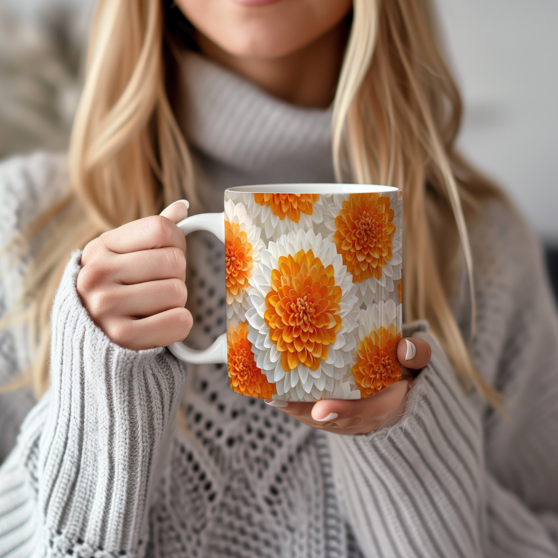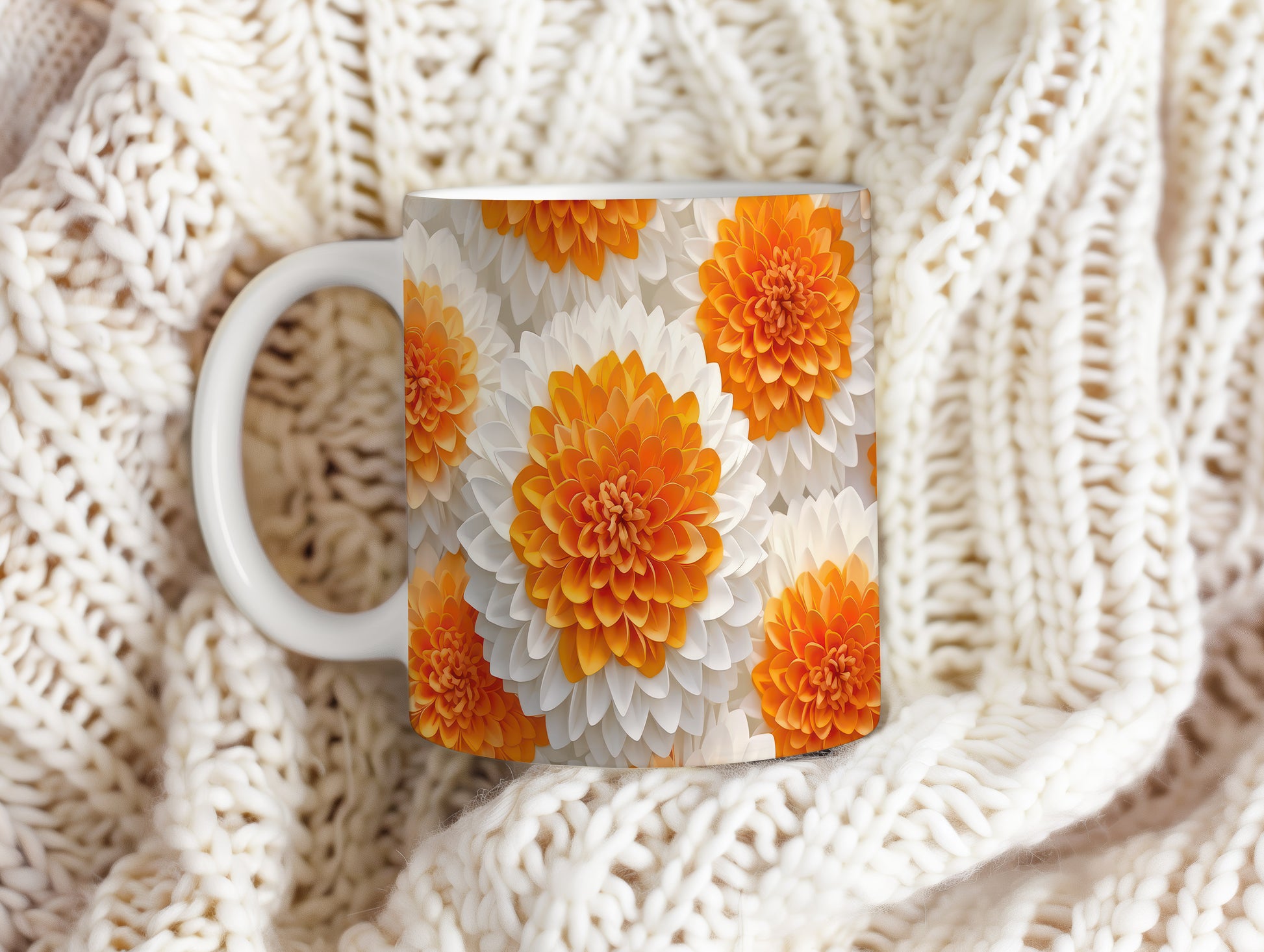 Tento hrnek je ozdobený krásnými květinami v oranžových a bílých tónech. Je ideální pro milovníky přírody a skvělým dárkem pro přátele či rodinu. Materiál: keramika. Objem: 330 ml. Vhodné do myčky i mikrovlnky. Díky svému designu přináší do každodenního pití radost a barevnost.