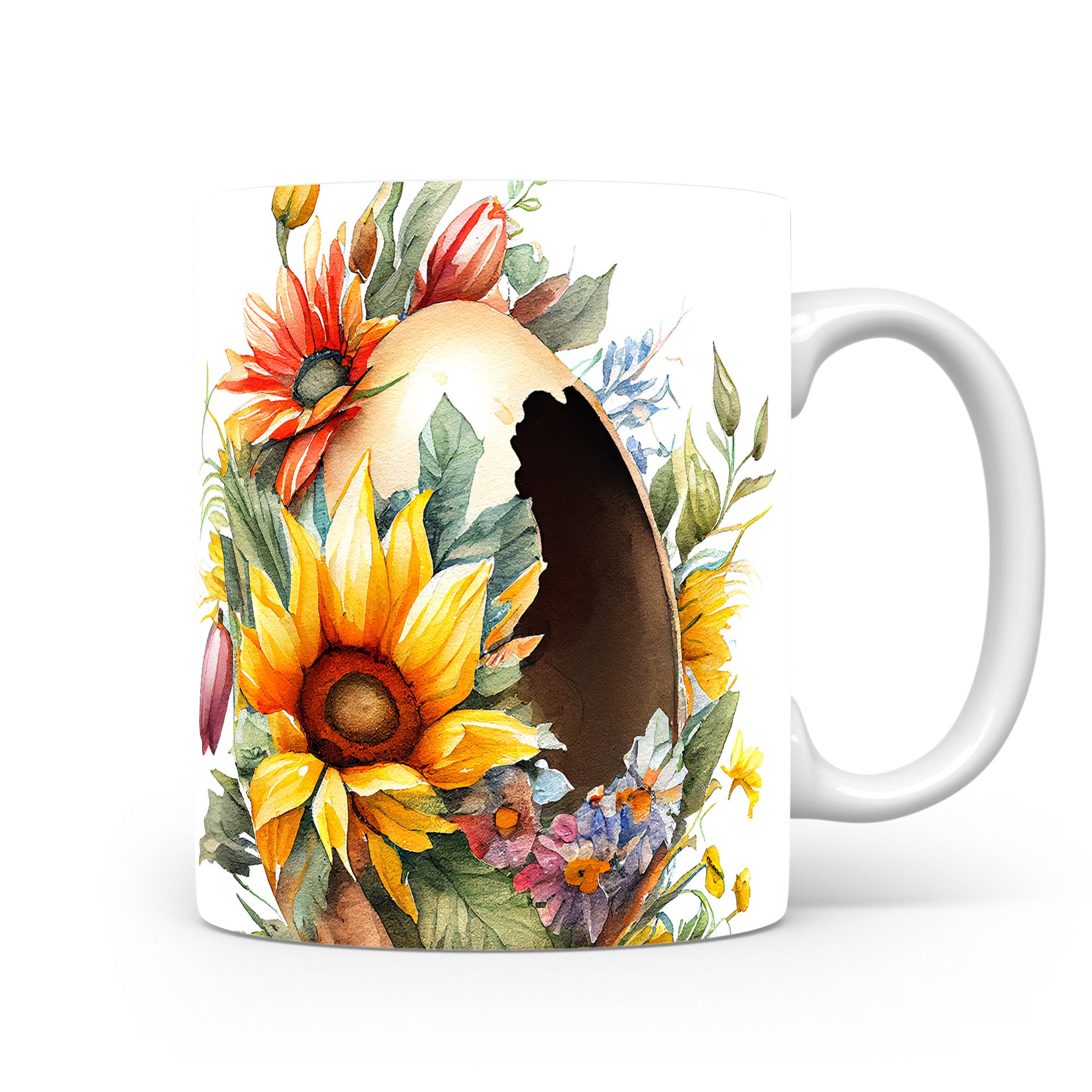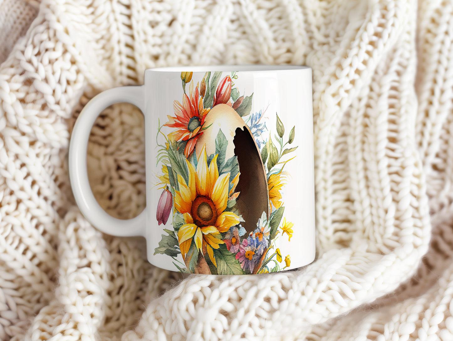Hrnek s květinami, velikonočním vajíčkem a retrívrem