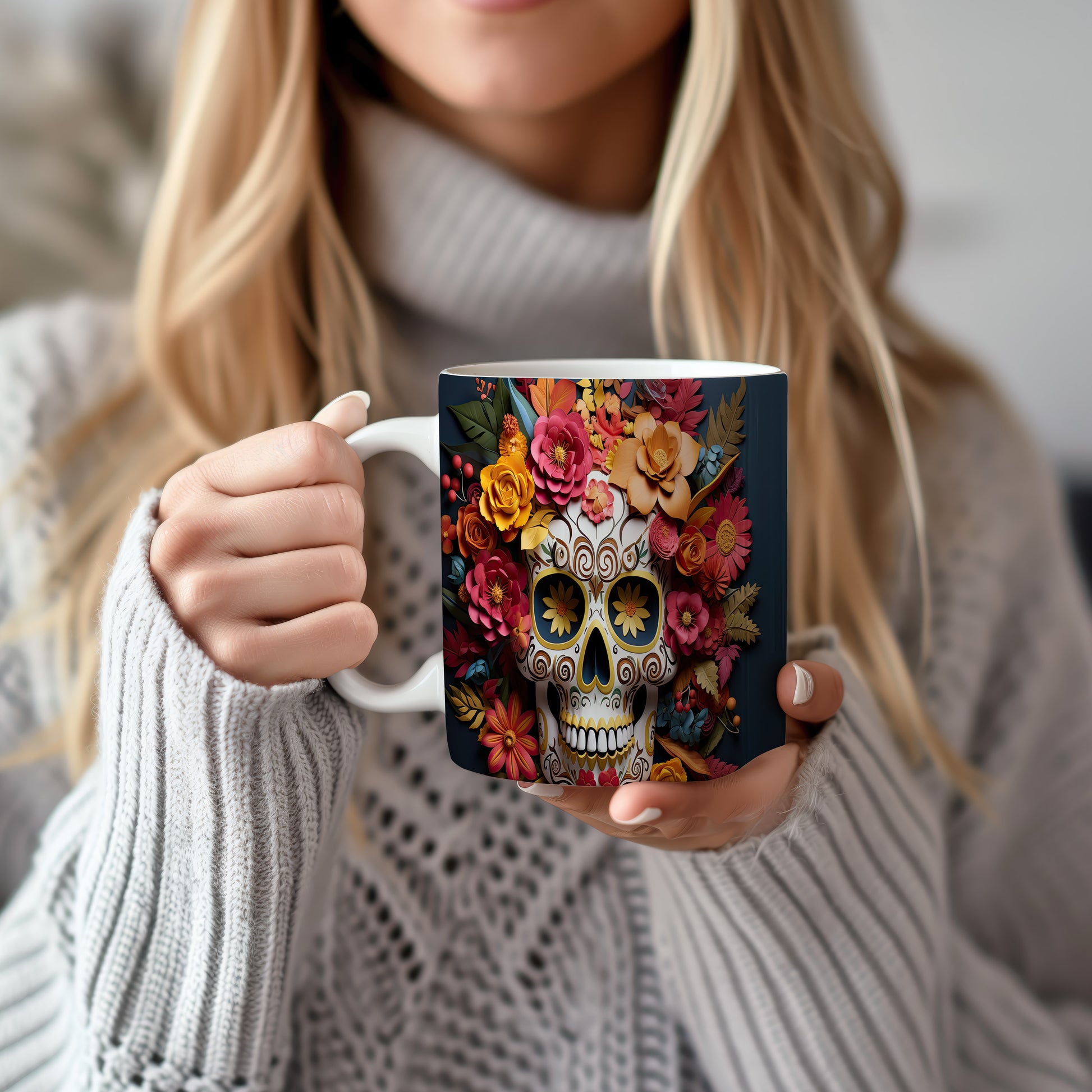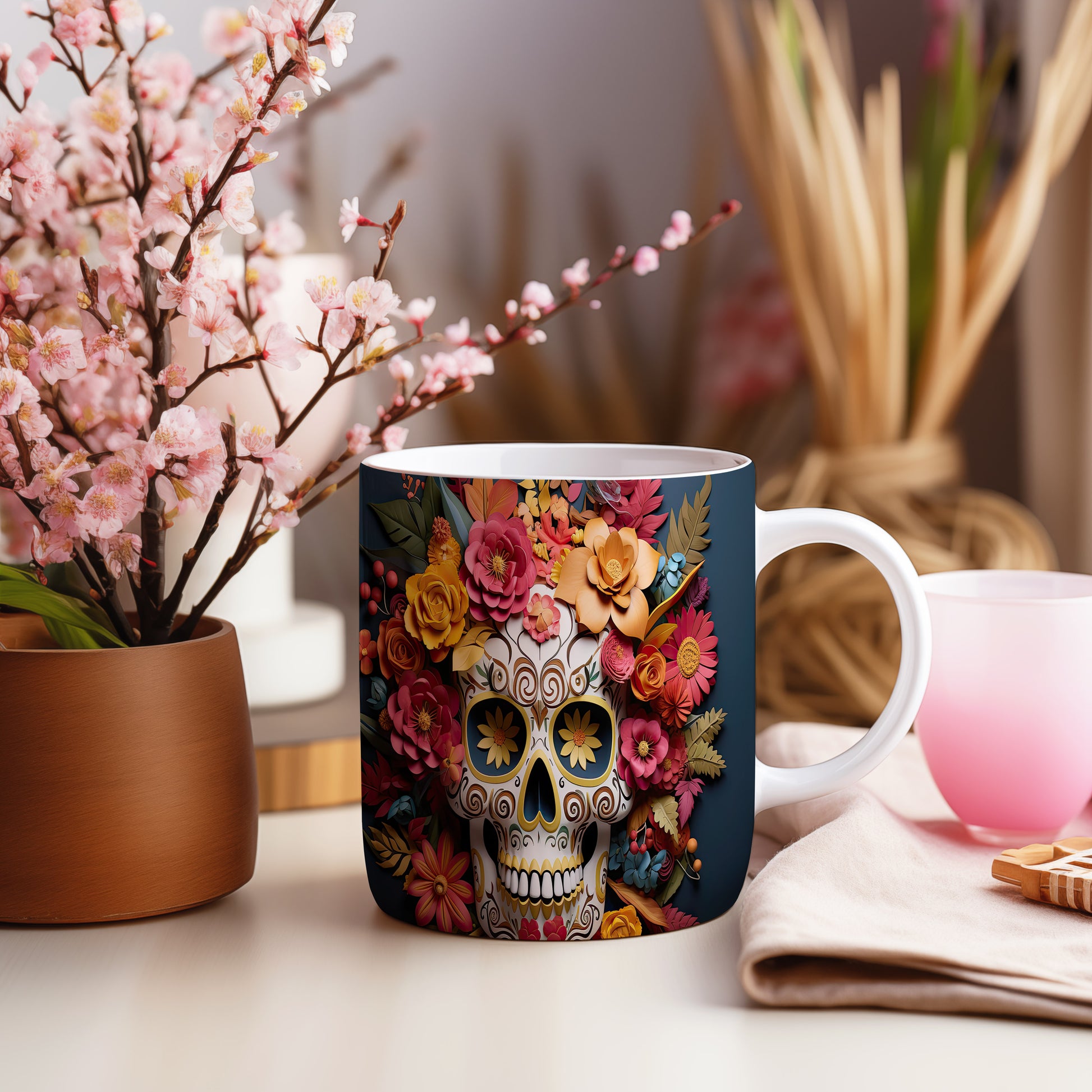 Keramický hrnek s motivem květinové lebky, který zaujme svým jedinečným designem. Je ideální pro milovníky originálních kousků a skvělým dárkem pro přátele nebo rodinu. Materiál: keramika. Objem: 330 ml. Vhodné do myčky i mikrovlnky. Tento hrnek přináší radost z každého doušku a oživí vaše každodenní pití.
