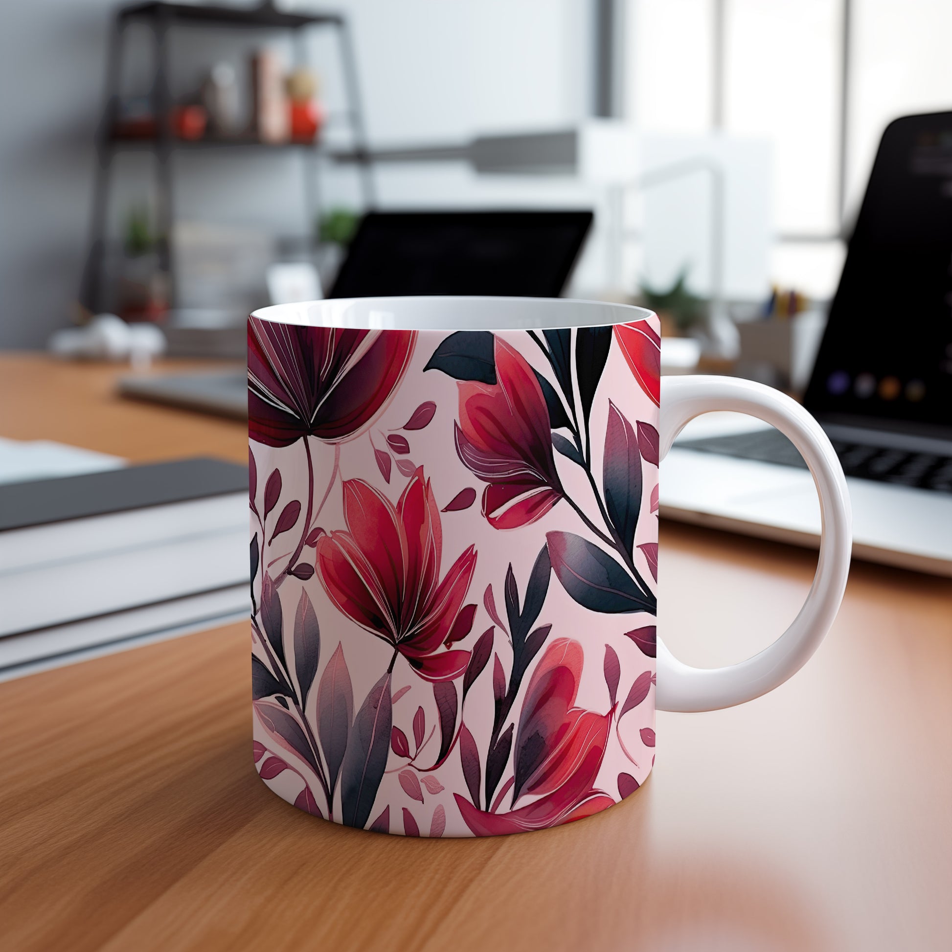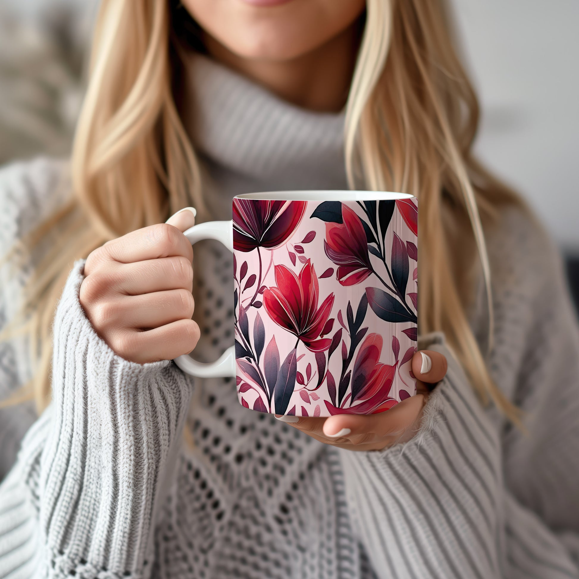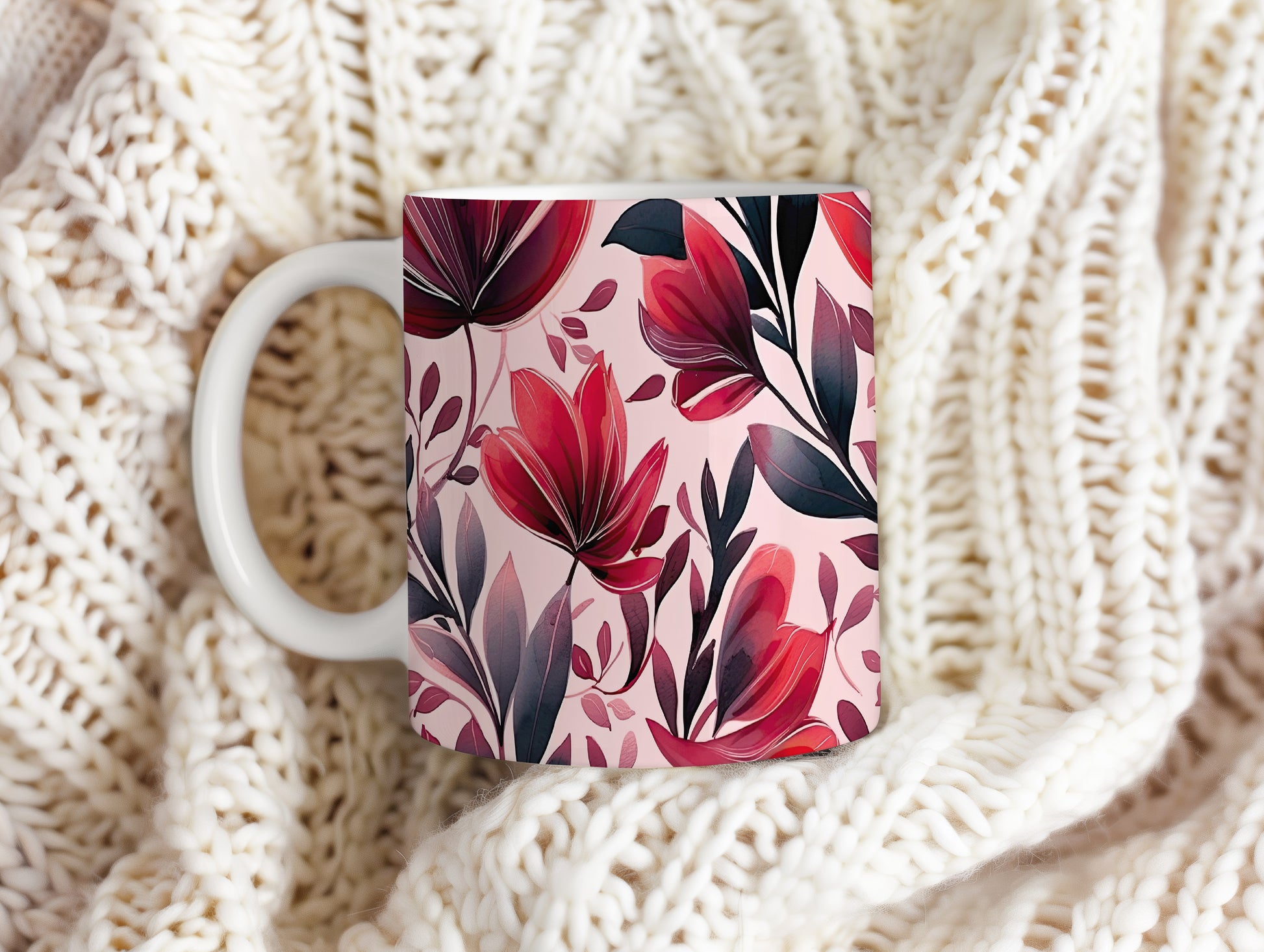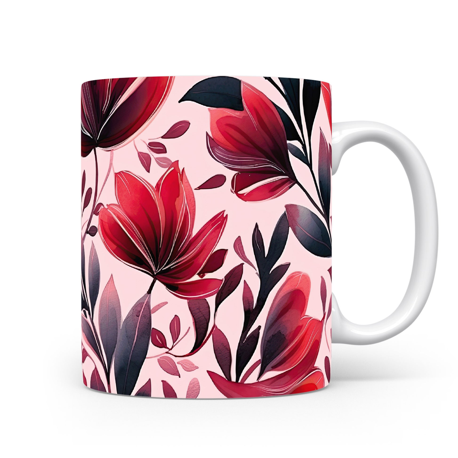 Elegantní hrnek s květinovým motivem v červených odstínech (květiny #2)