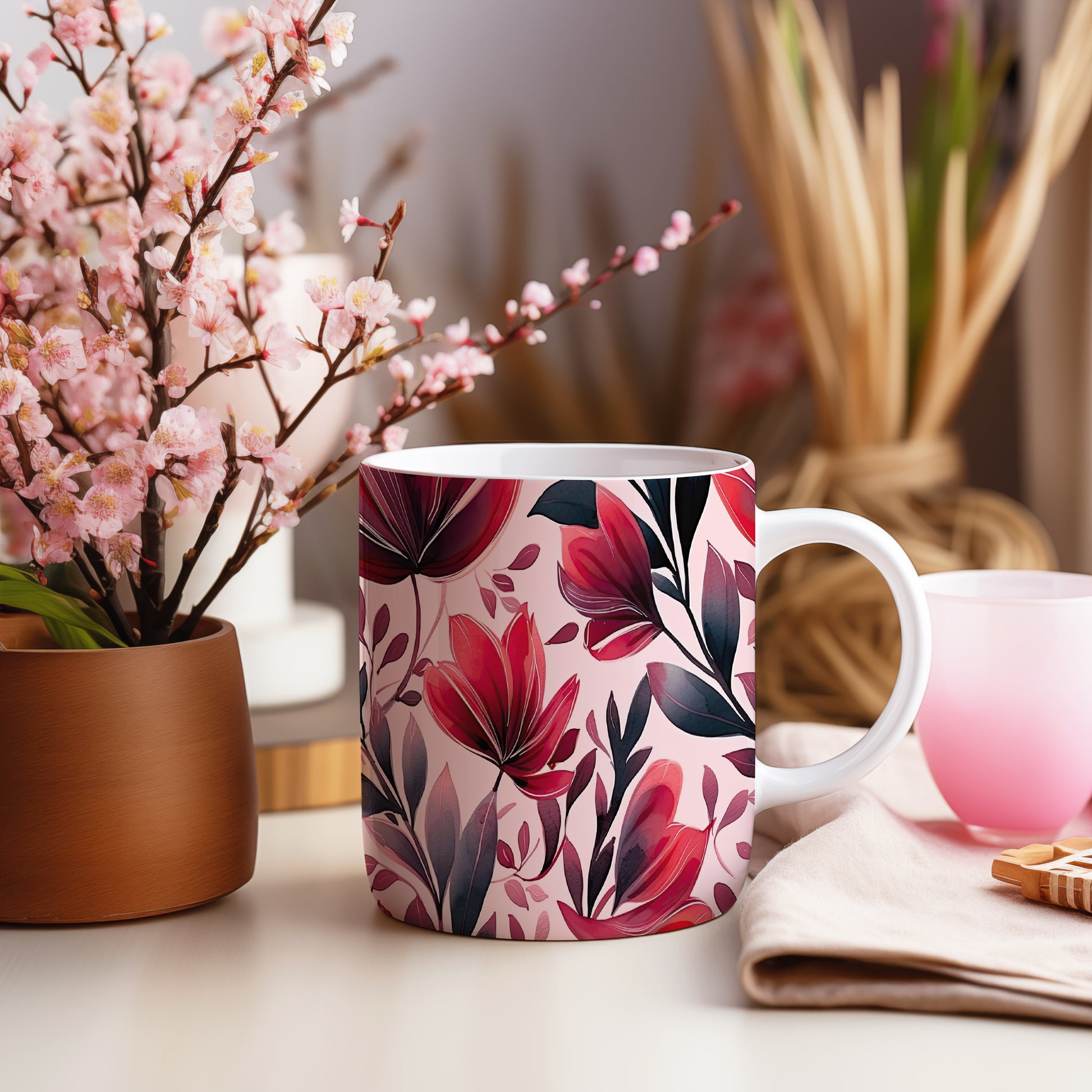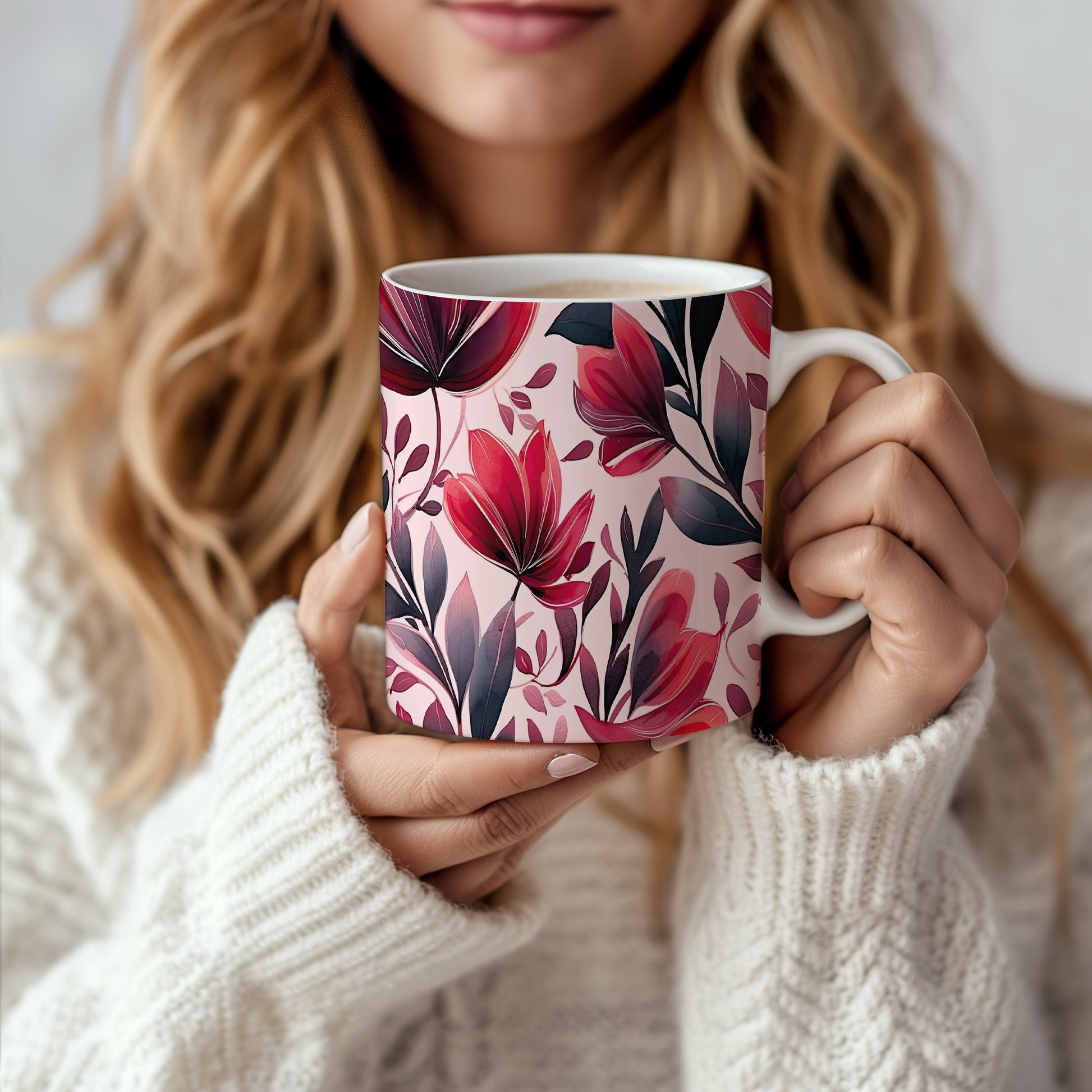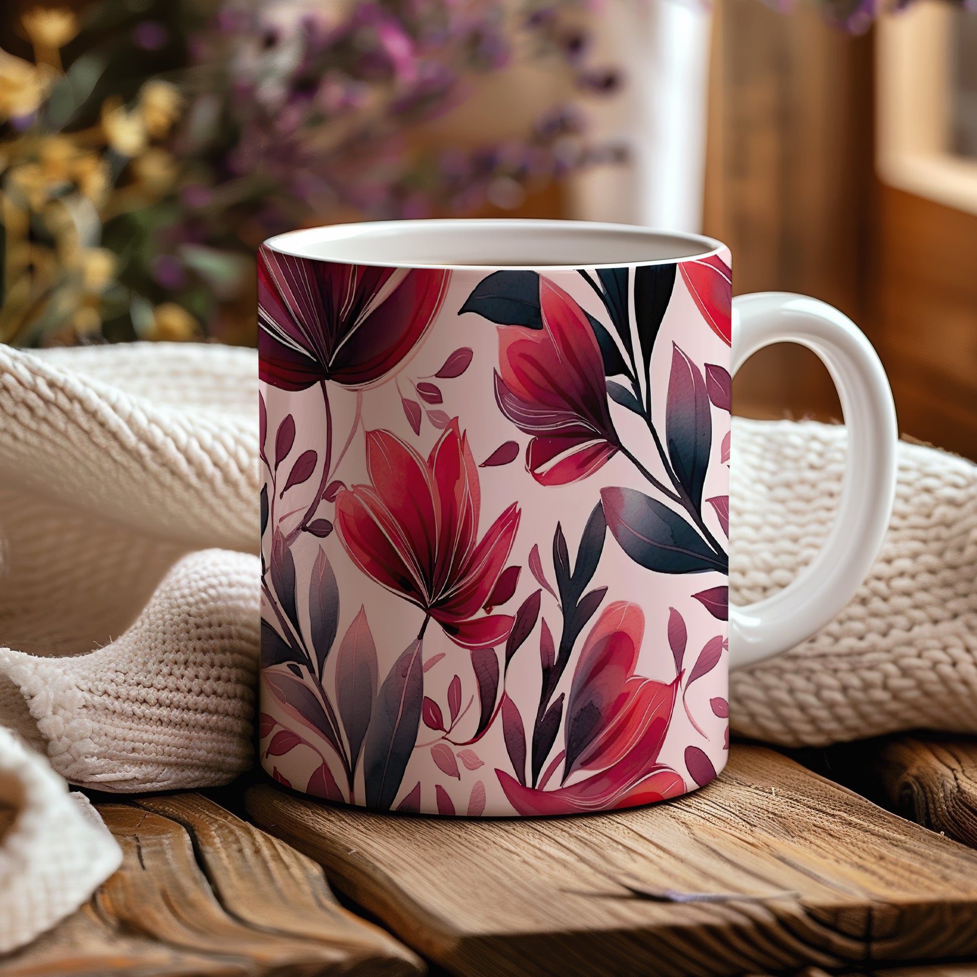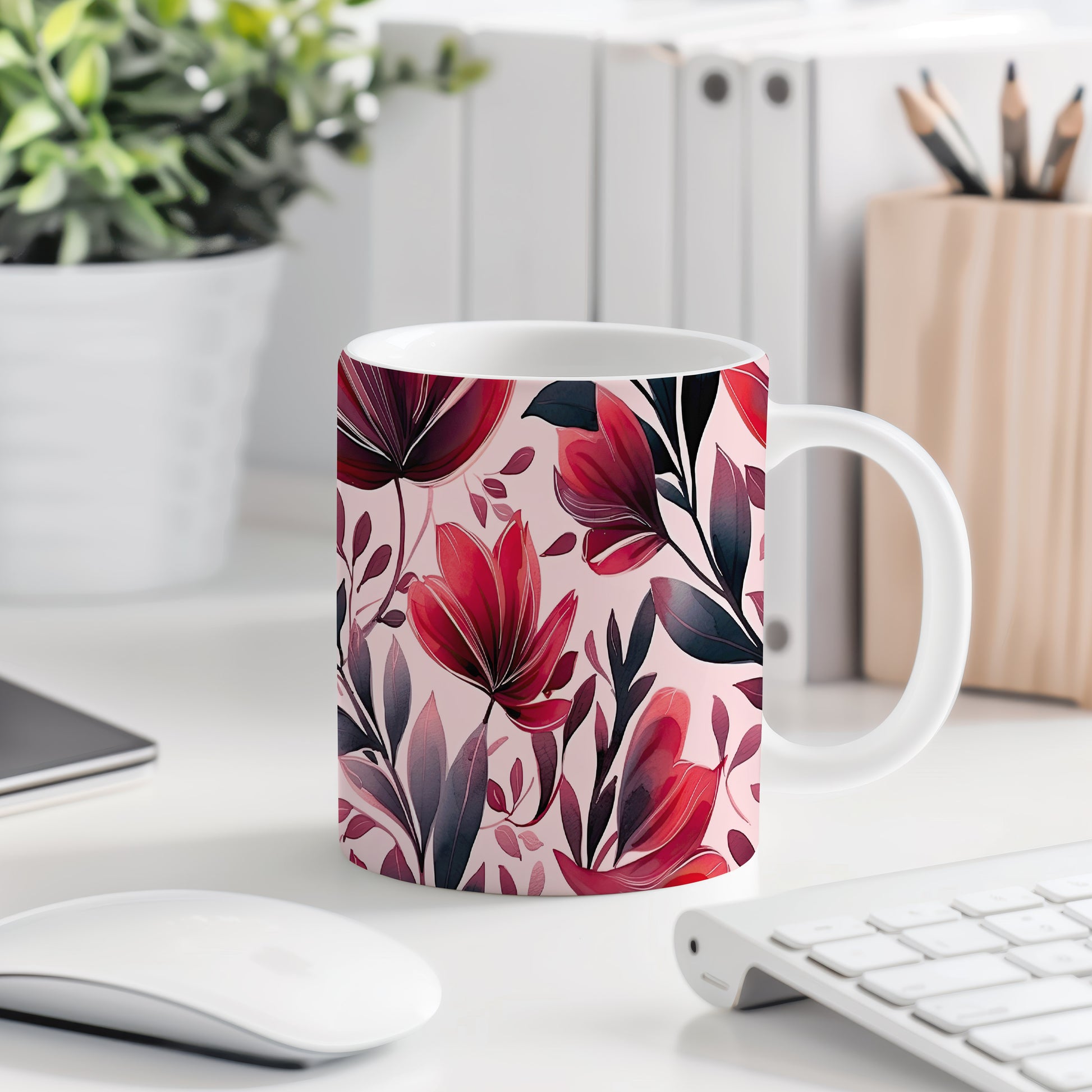 Elegantní hrnek s květinovým motivem v červených odstínech (květiny #2)