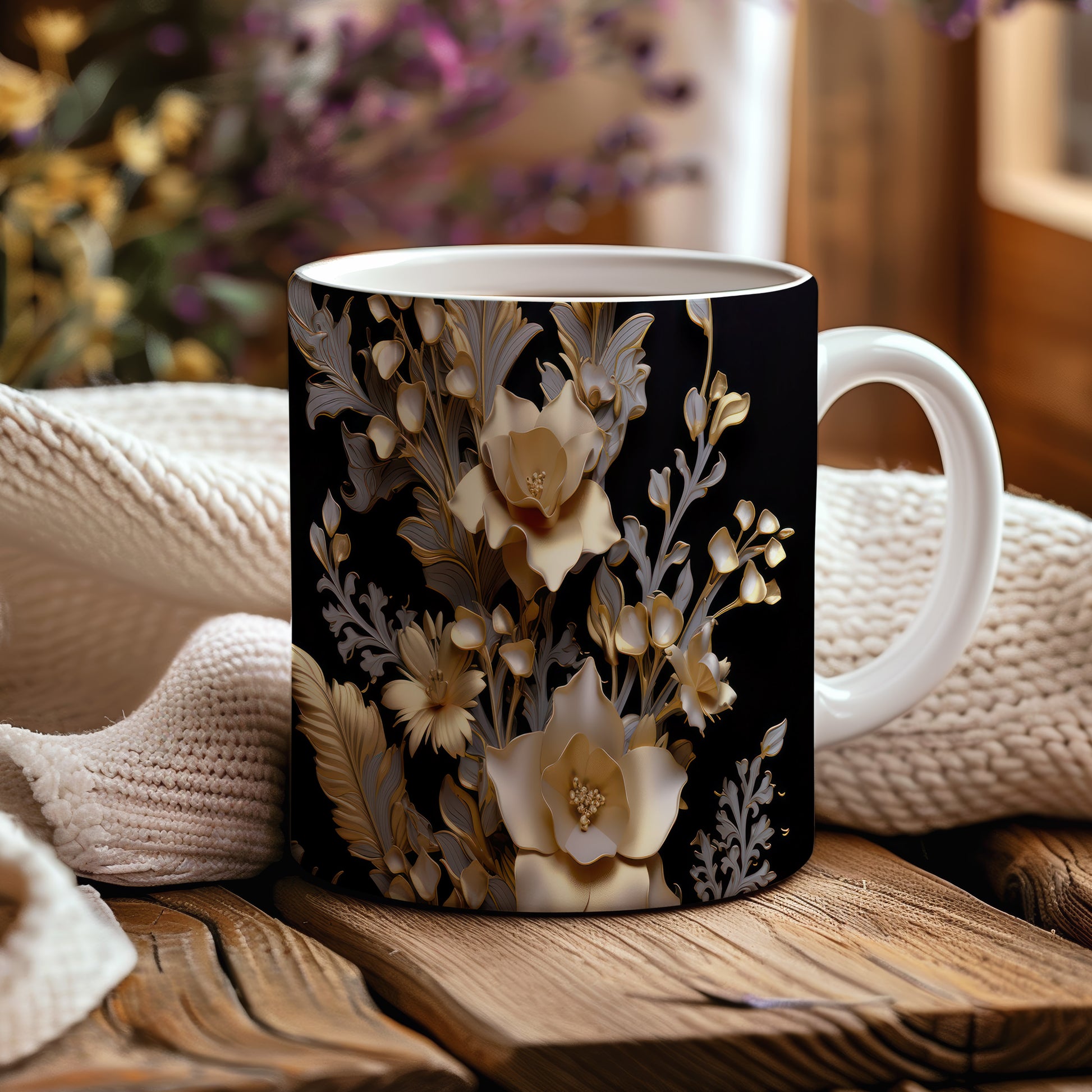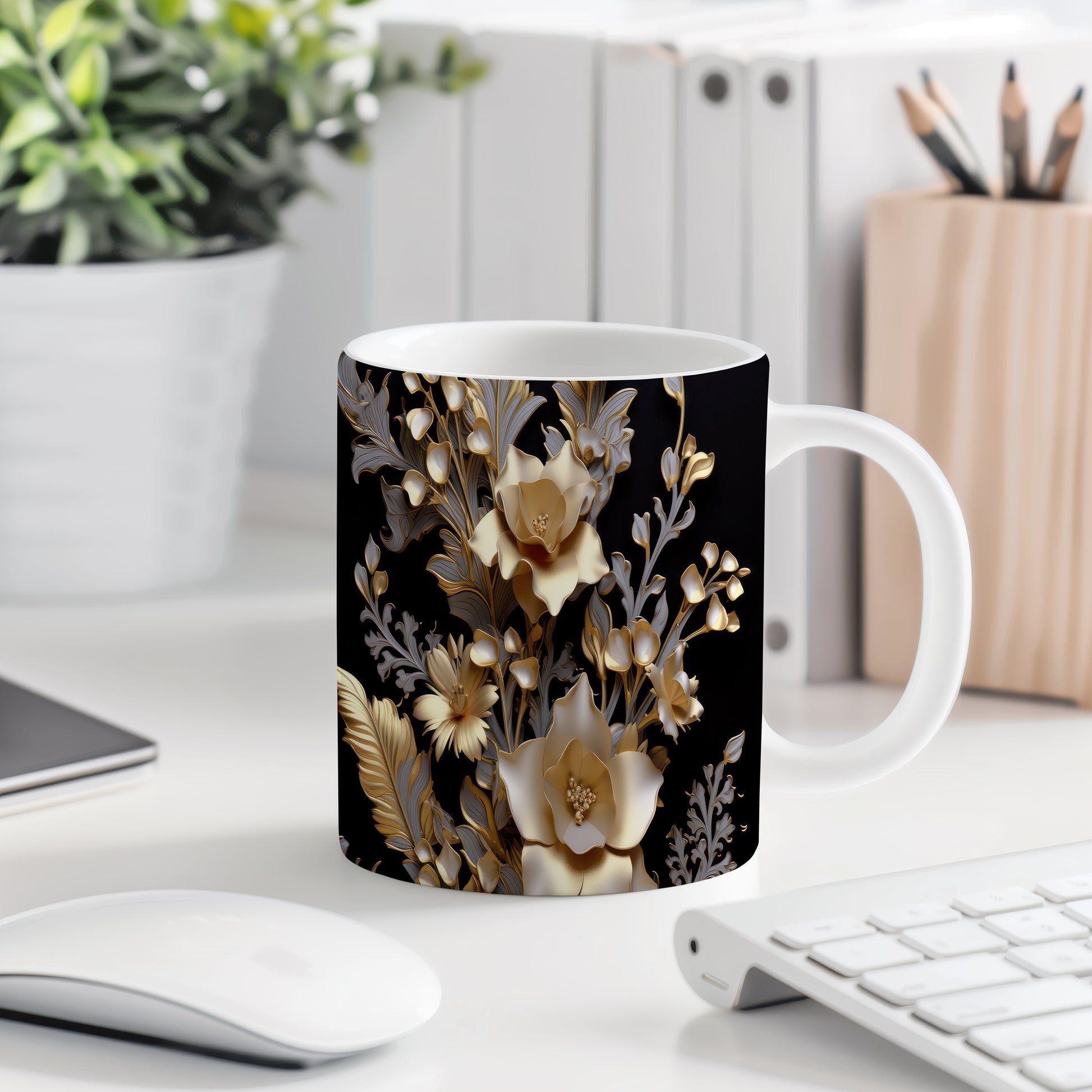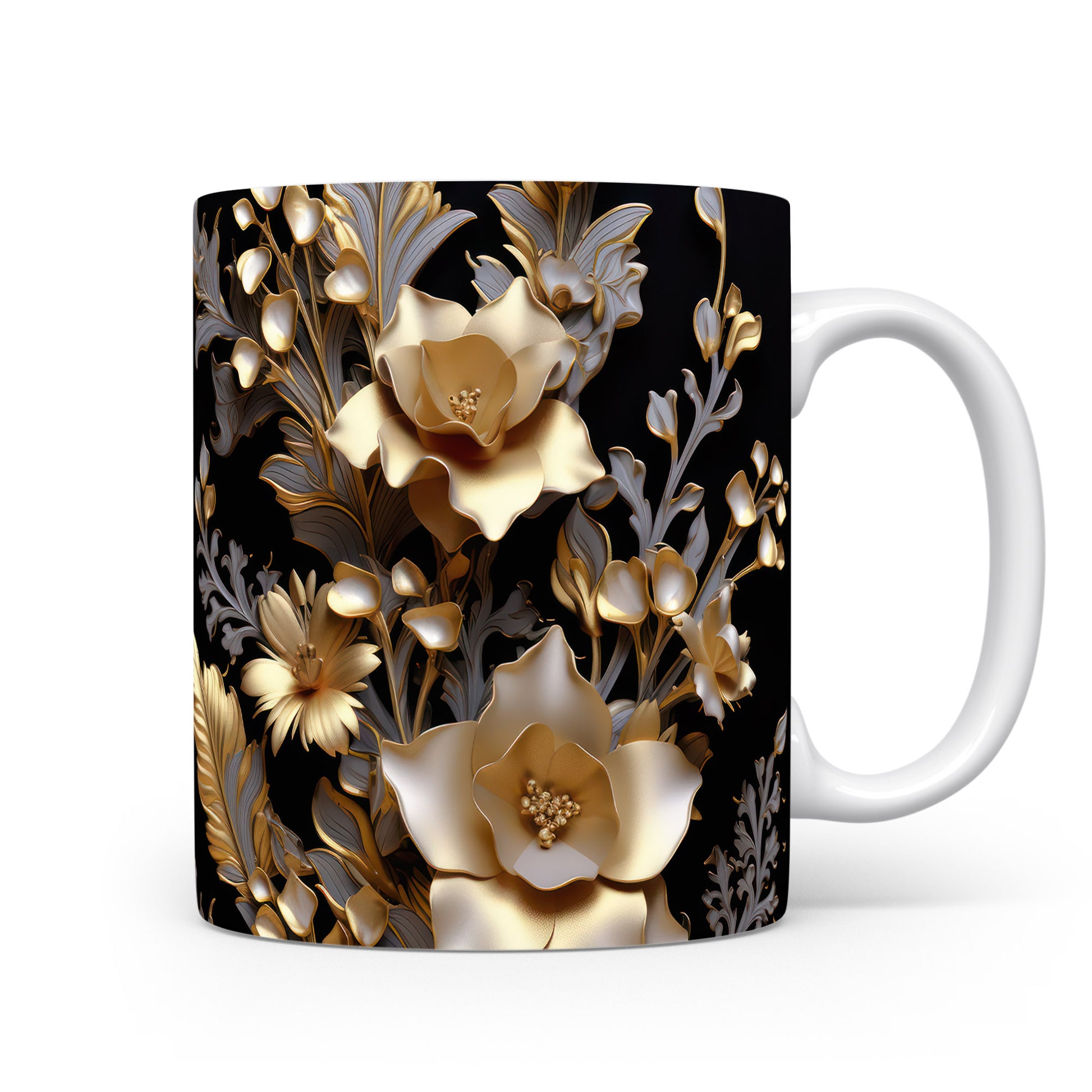Elegantní hrnek s krásným květinovým motivem v zlatých a bílých tónech. Tento stylový kousek je ideální pro milovníky květin a skvělým dárkem pro každou příležitost. Materiál: keramika. Objem: 330 ml. Vhodné do myčky i mikrovlnky. Díky svému designu přináší do každodenního pití špetku elegance.