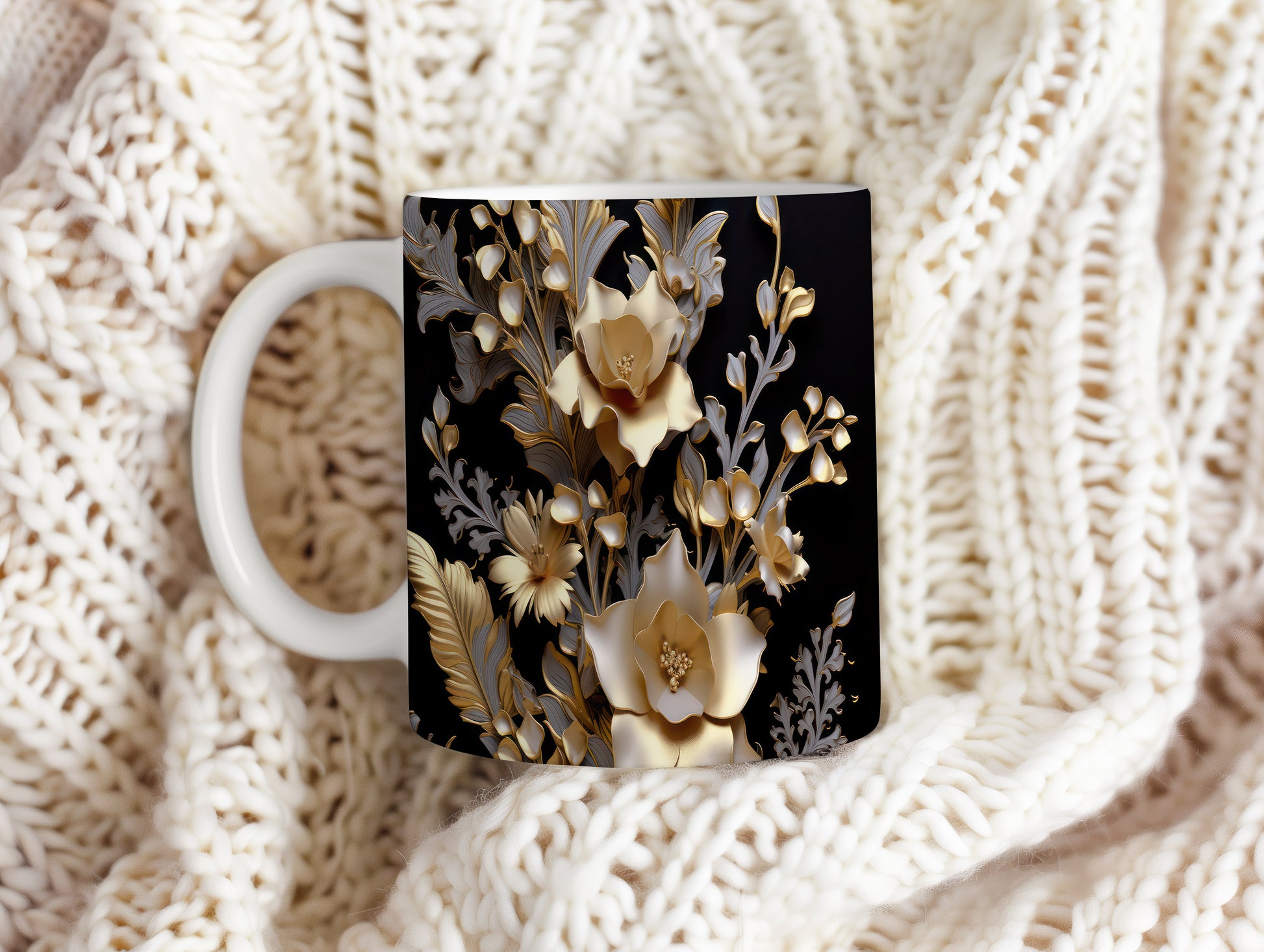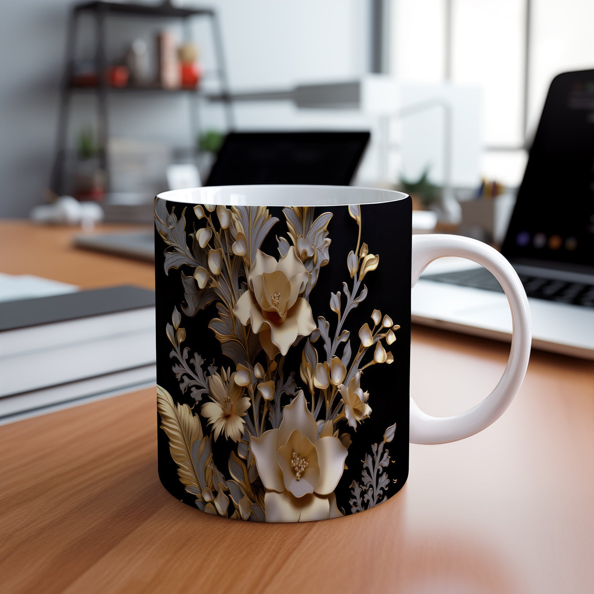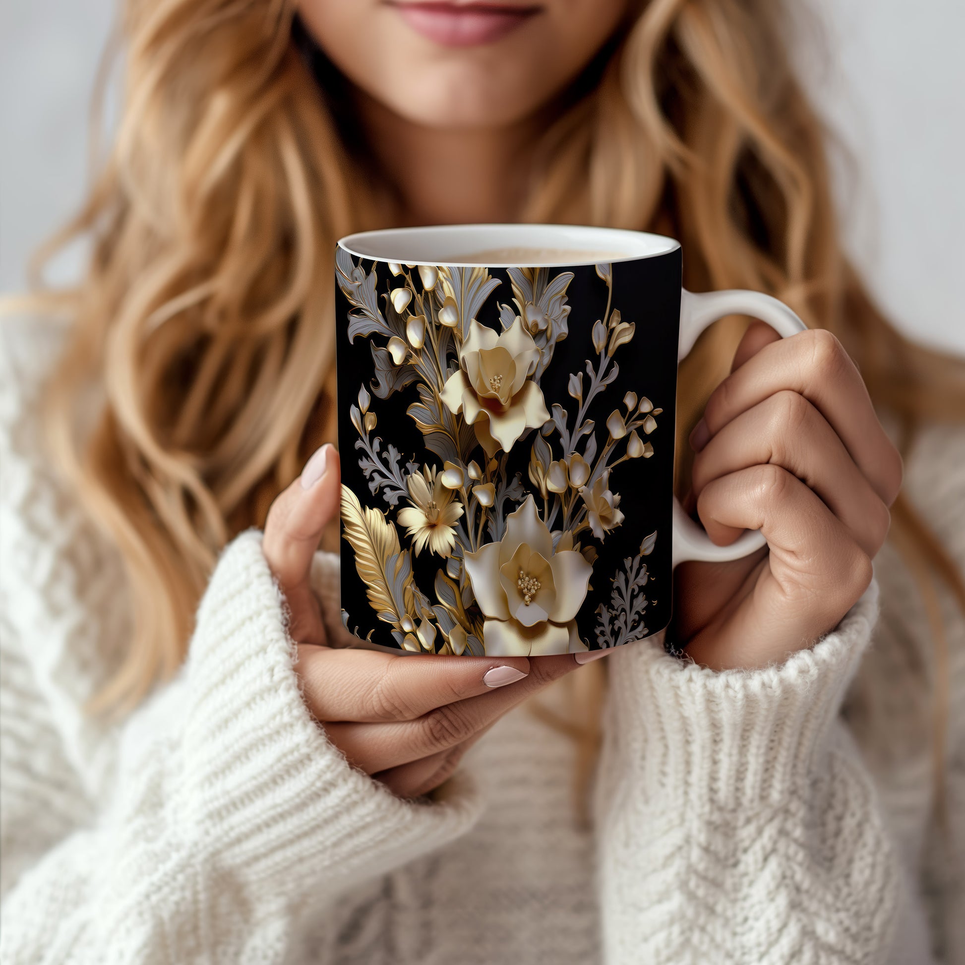 Elegantní hrnek s krásným květinovým motivem v zlatých a bílých tónech. Tento stylový kousek je ideální pro milovníky květin a skvělým dárkem pro každou příležitost. Materiál: keramika. Objem: 330 ml. Vhodné do myčky i mikrovlnky. Díky svému designu přináší do každodenního pití špetku elegance.