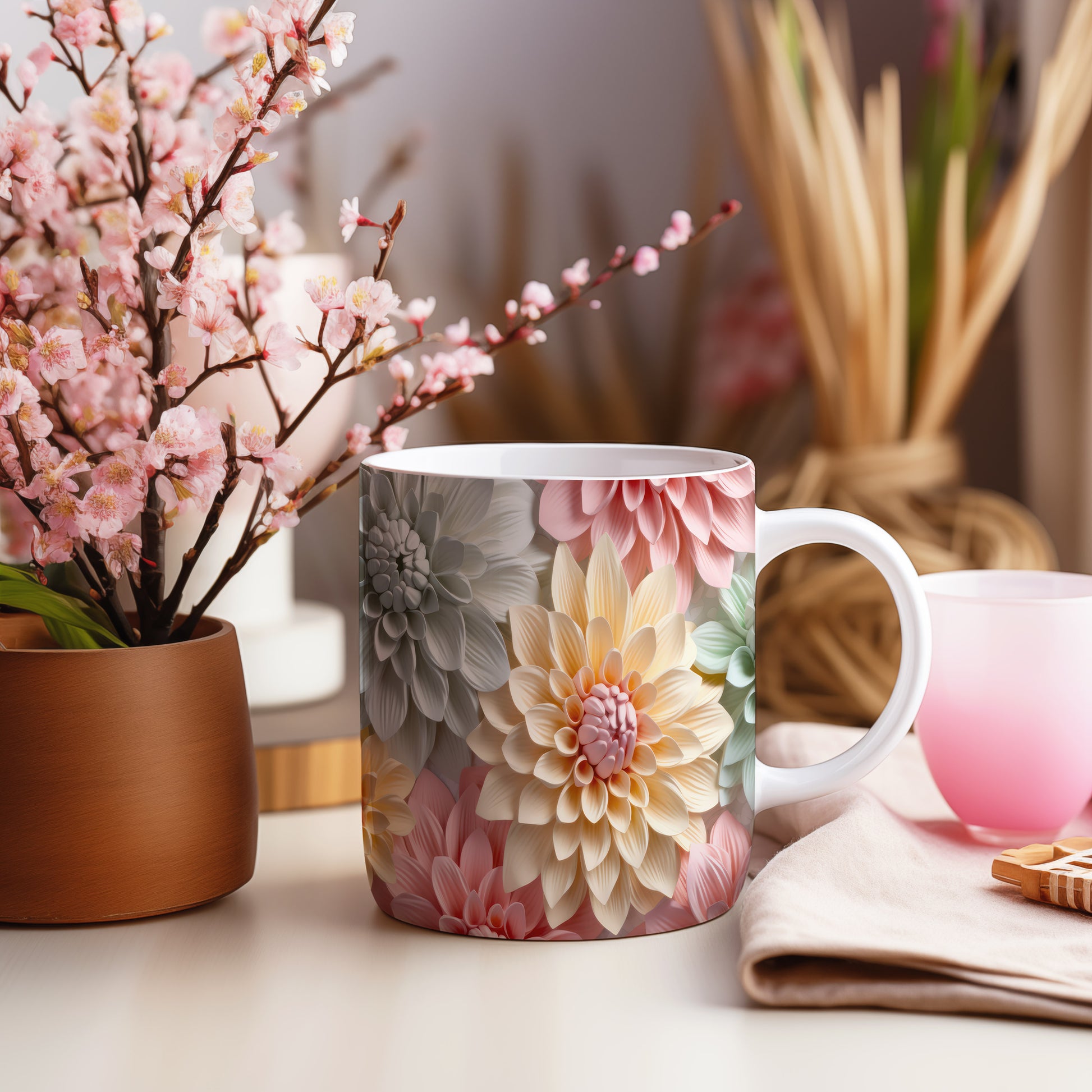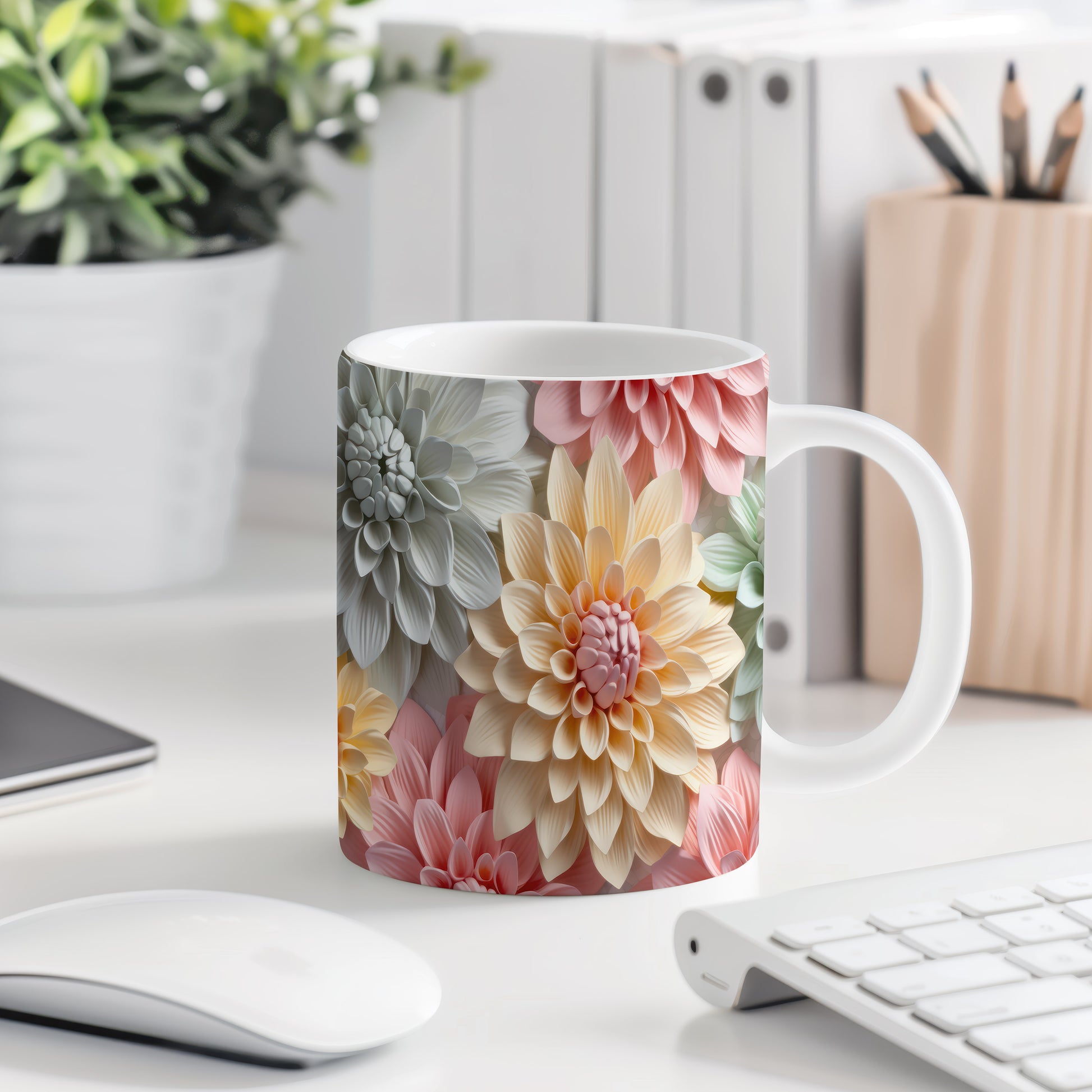 Tento hrnek s 3D květinovým designem zobrazuje jemné detaily velkých květin v různých odstínech růžové, bílé a žluté. Je ideální pro milovníky přírody a květin, skvělý tip na dárek pro přátele nebo rodinu. Materiál: keramika. Objem: 330 ml. Vhodné do myčky i mikrovlnky. Používání tohoto hrnku přináší radost z každého doušku oblíbeného nápoje.