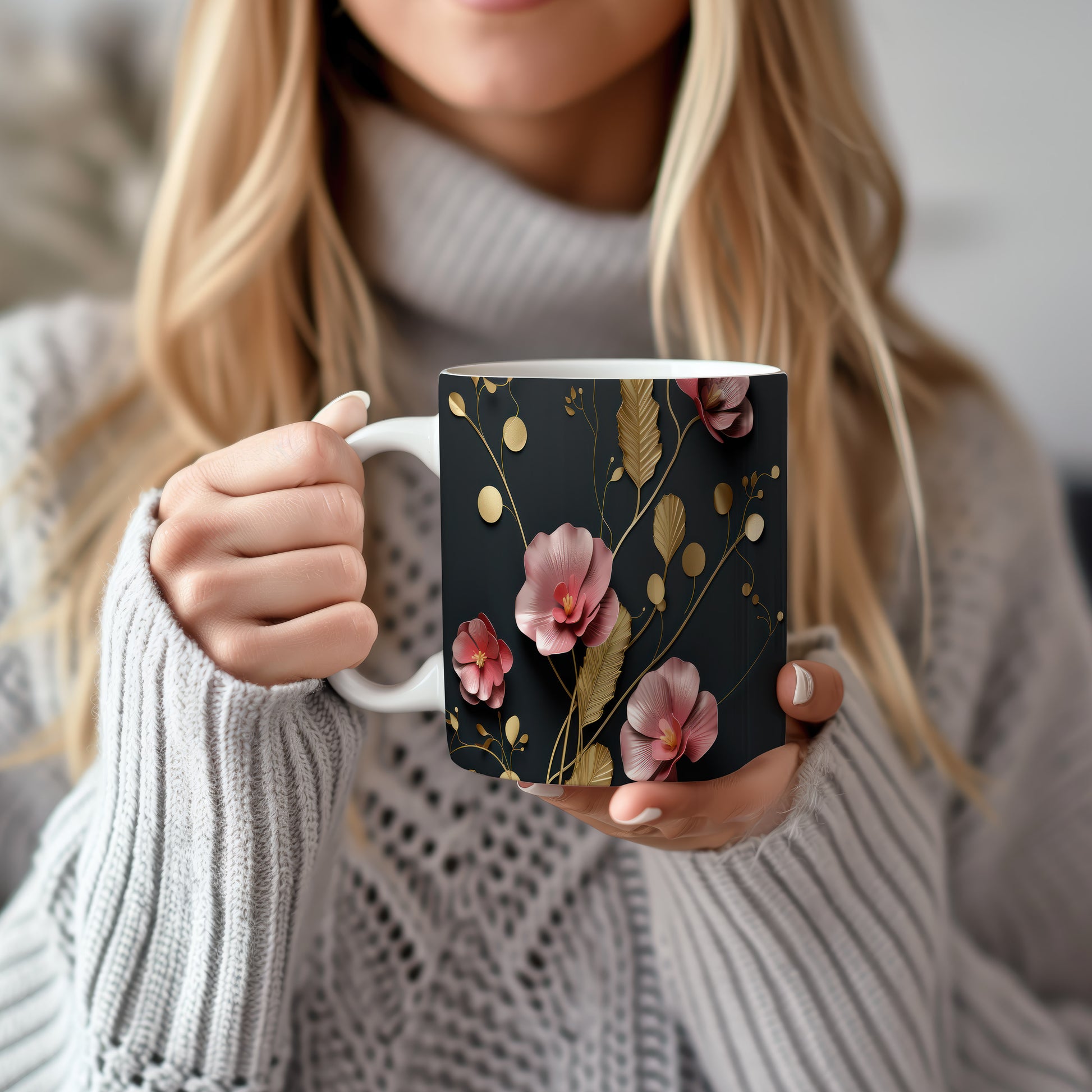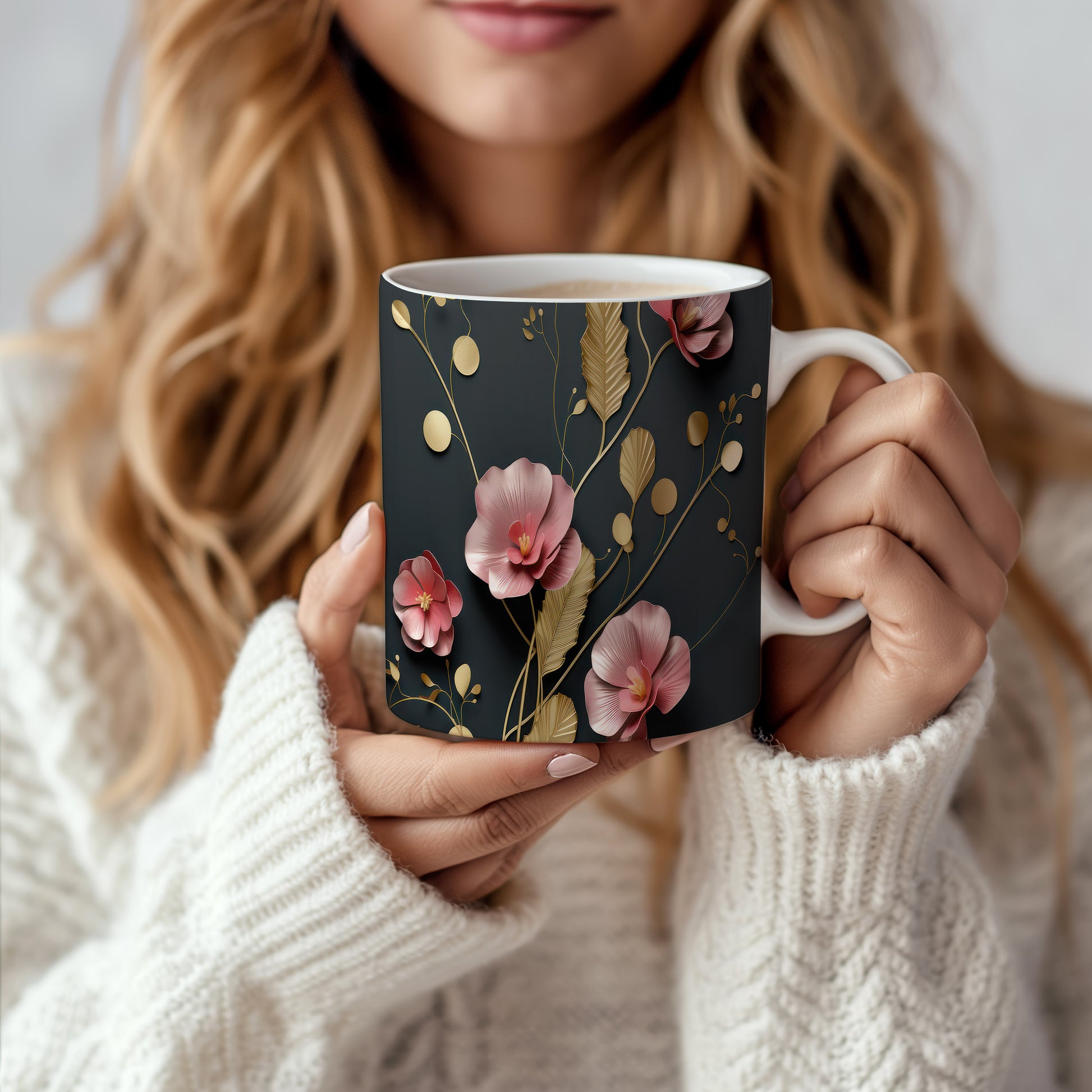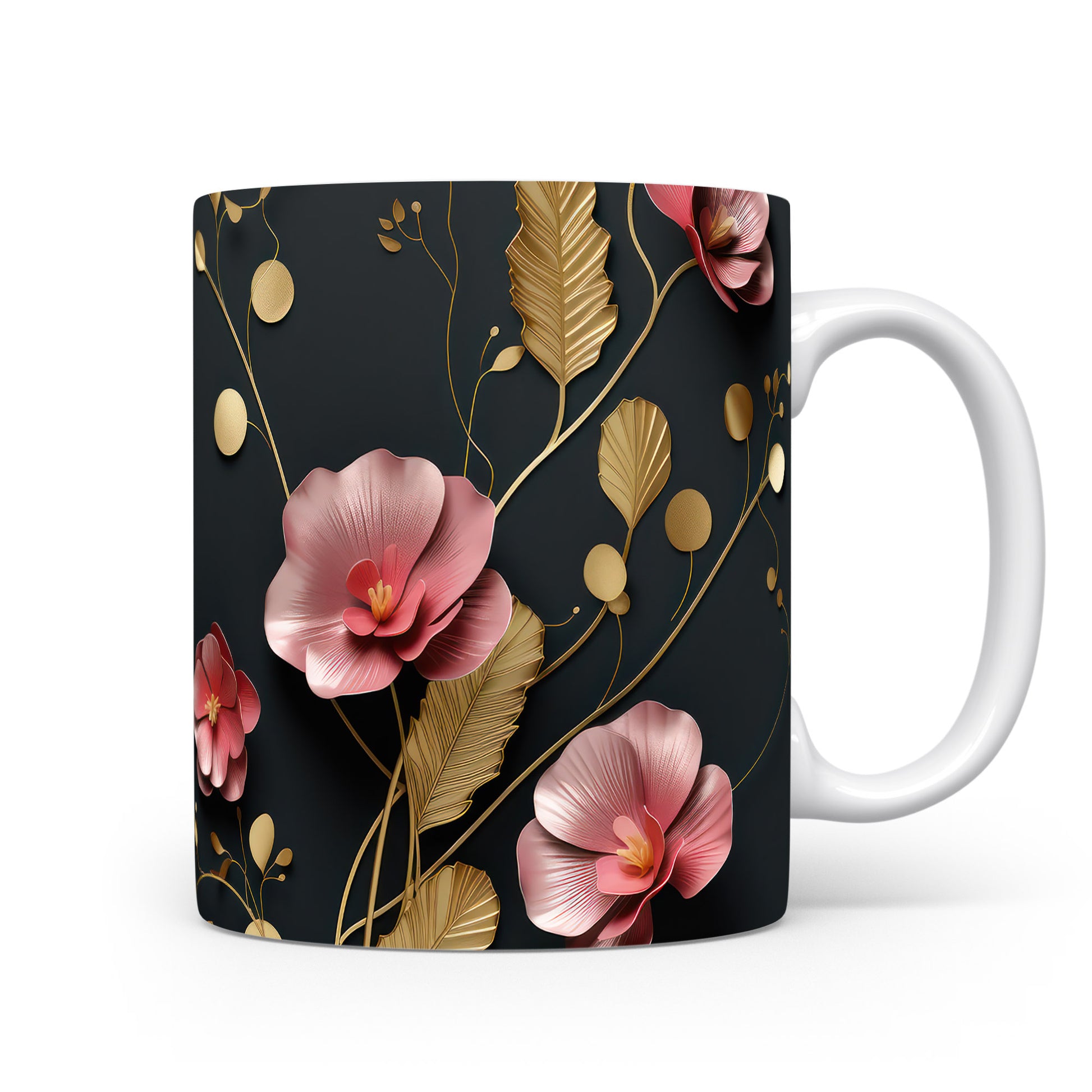 Elegantní hrnek s motivem růžových květin a zlatých detailů. Tento stylový kousek je ideální pro každého, kdo si rád vychutnává oblíbený nápoj. Skvělý tip na dárek pro milovníky květin a designu. Materiál: keramika. Objem: 330 ml. Vhodné do myčky i mikrovlnky. Užívejte si svůj nápoj s nádechem elegance.