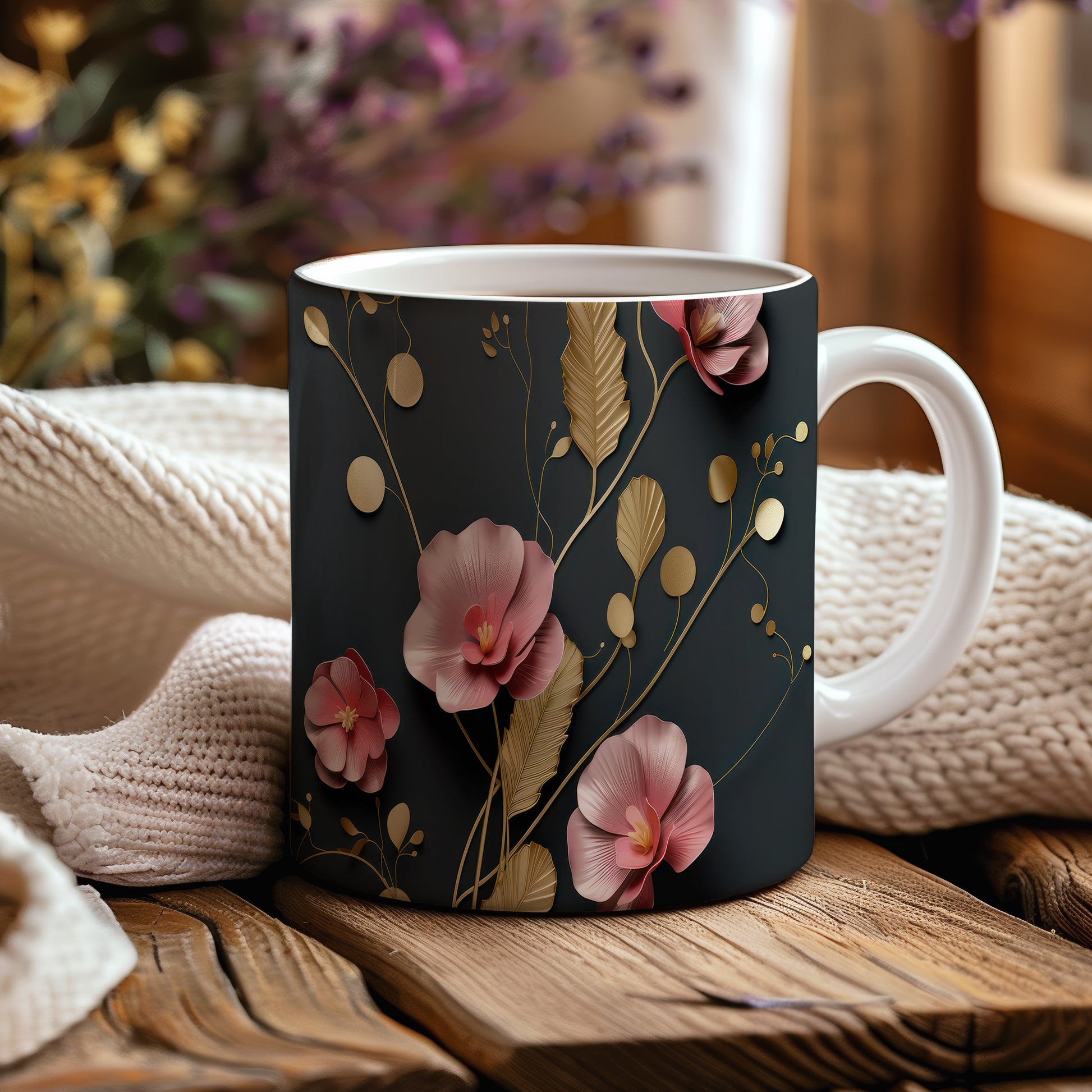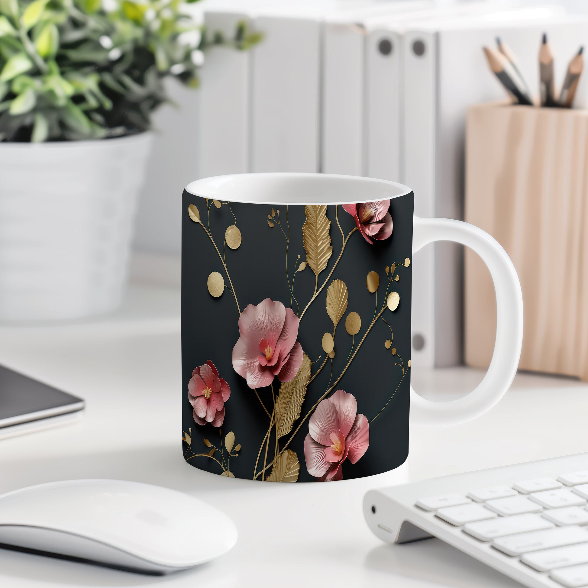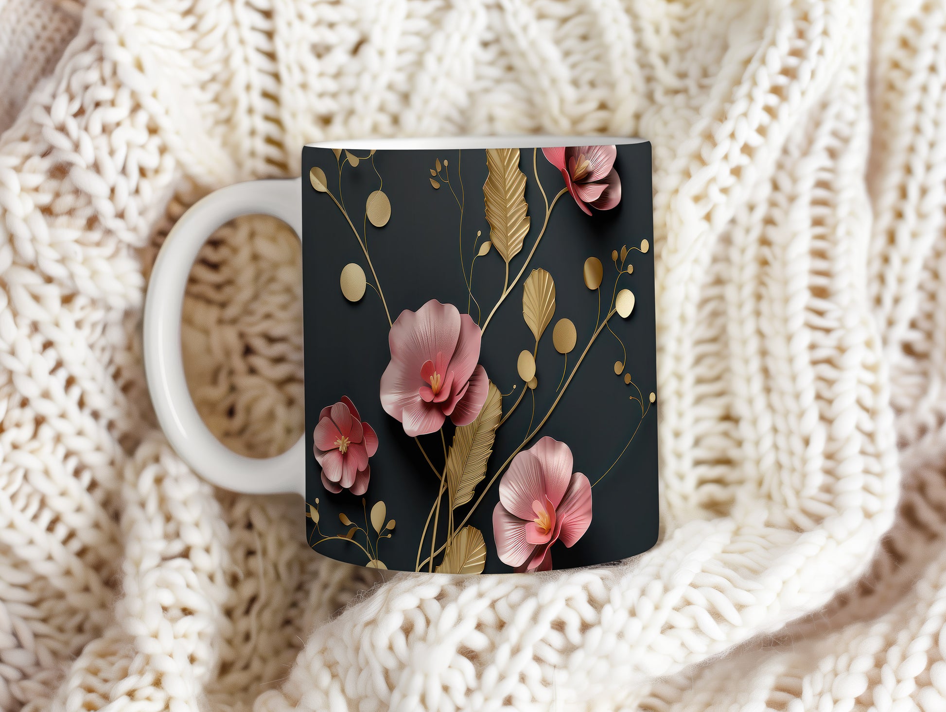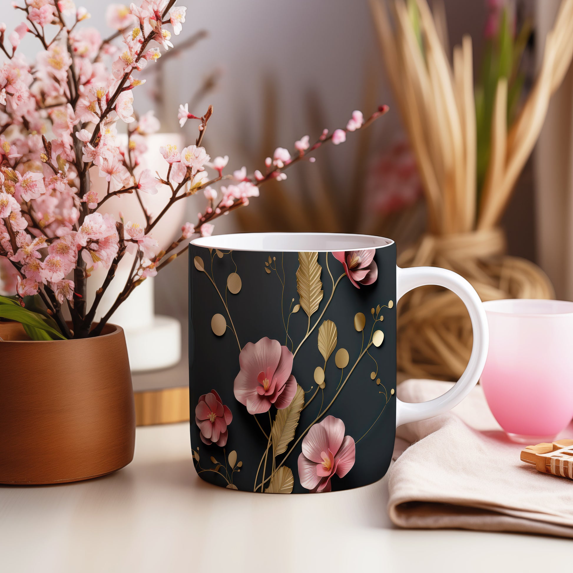 Elegantní hrnek s motivem růžových květin a zlatých detailů. Tento stylový kousek je ideální pro každého, kdo si rád vychutnává oblíbený nápoj. Skvělý tip na dárek pro milovníky květin a designu. Materiál: keramika. Objem: 330 ml. Vhodné do myčky i mikrovlnky. Užívejte si svůj nápoj s nádechem elegance.