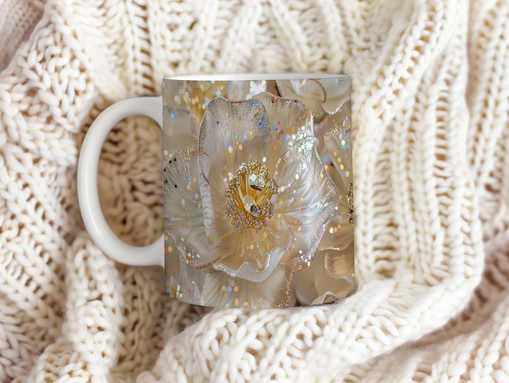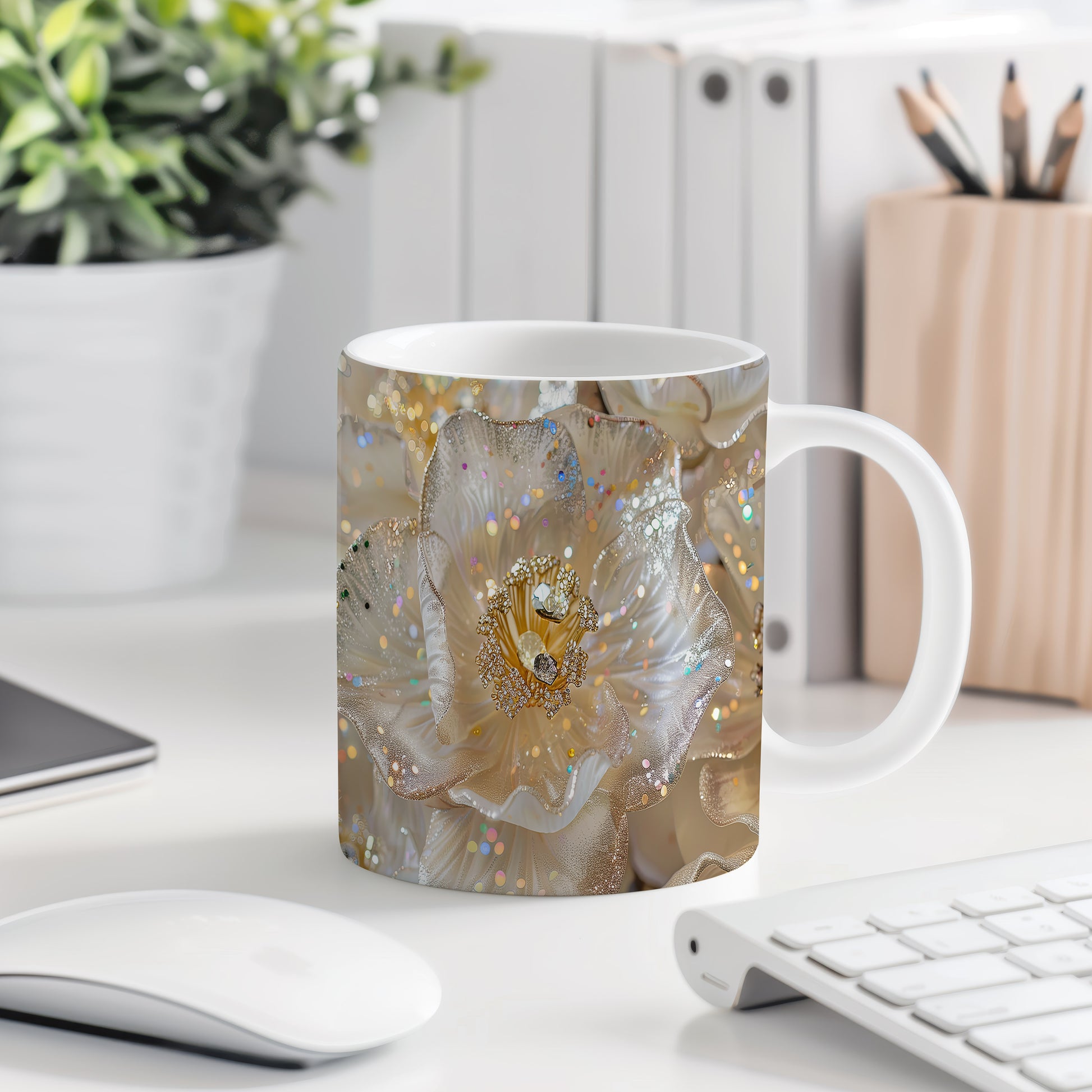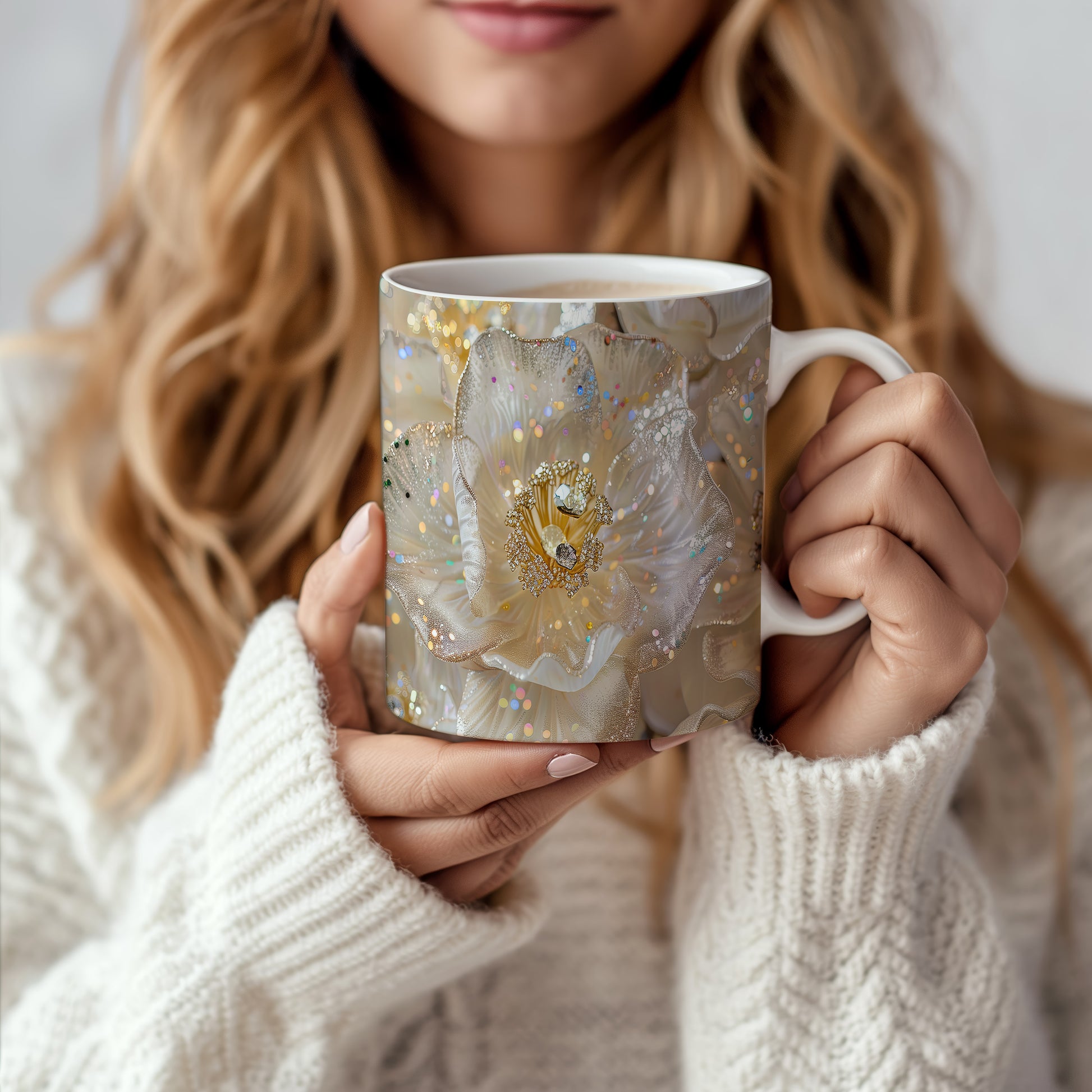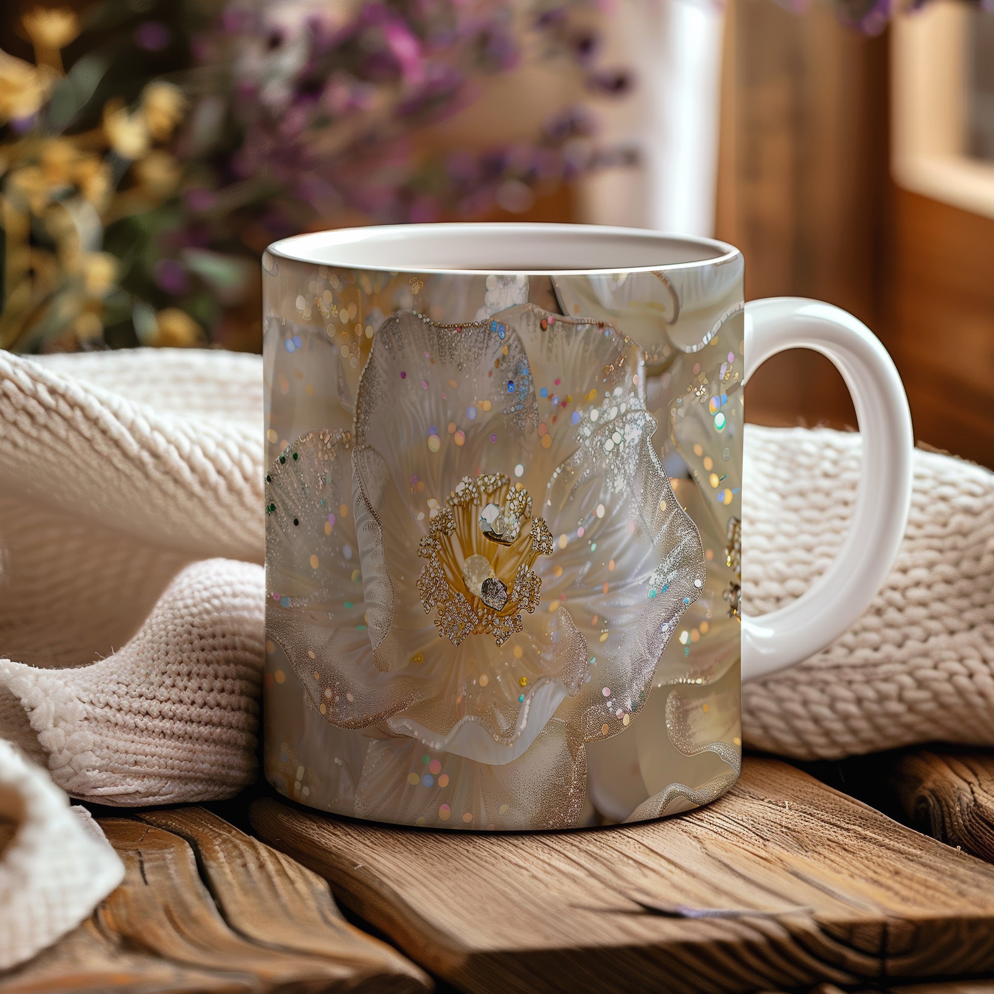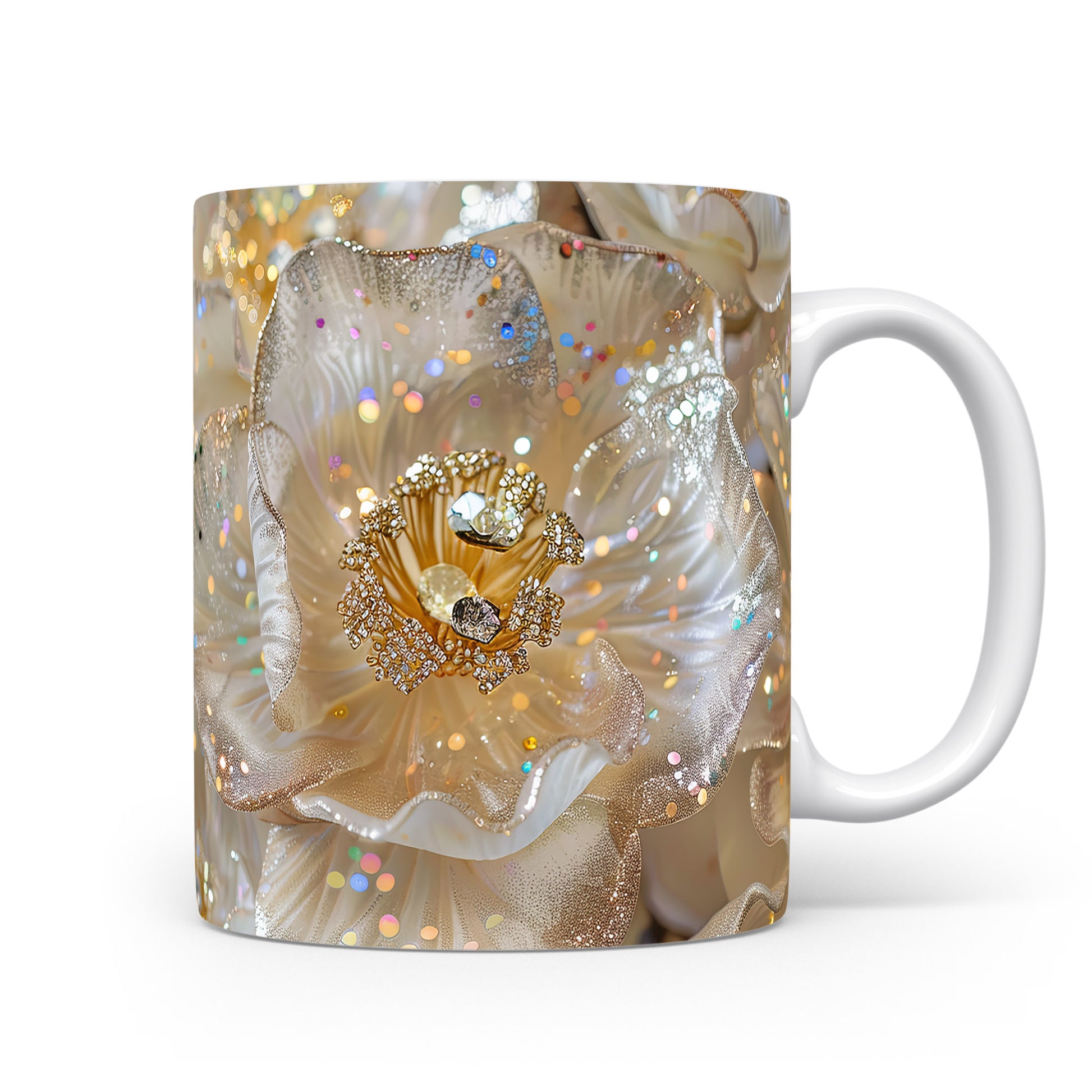 Tento keramický hrnek s překrásným květinovým motivem a třpytivými detaily je ideální pro každodenní použití nebo jako stylový dárek pro milovníky přírody. S objemem 330 ml je vhodný do myčky i mikrovlnky, což zajišťuje snadnou údržbu. Díky svému jedinečnému designu přináší radost do každého dne a oživí váš stůl. Užívejte si kávu nebo čaj v tomto elegantním kousku.