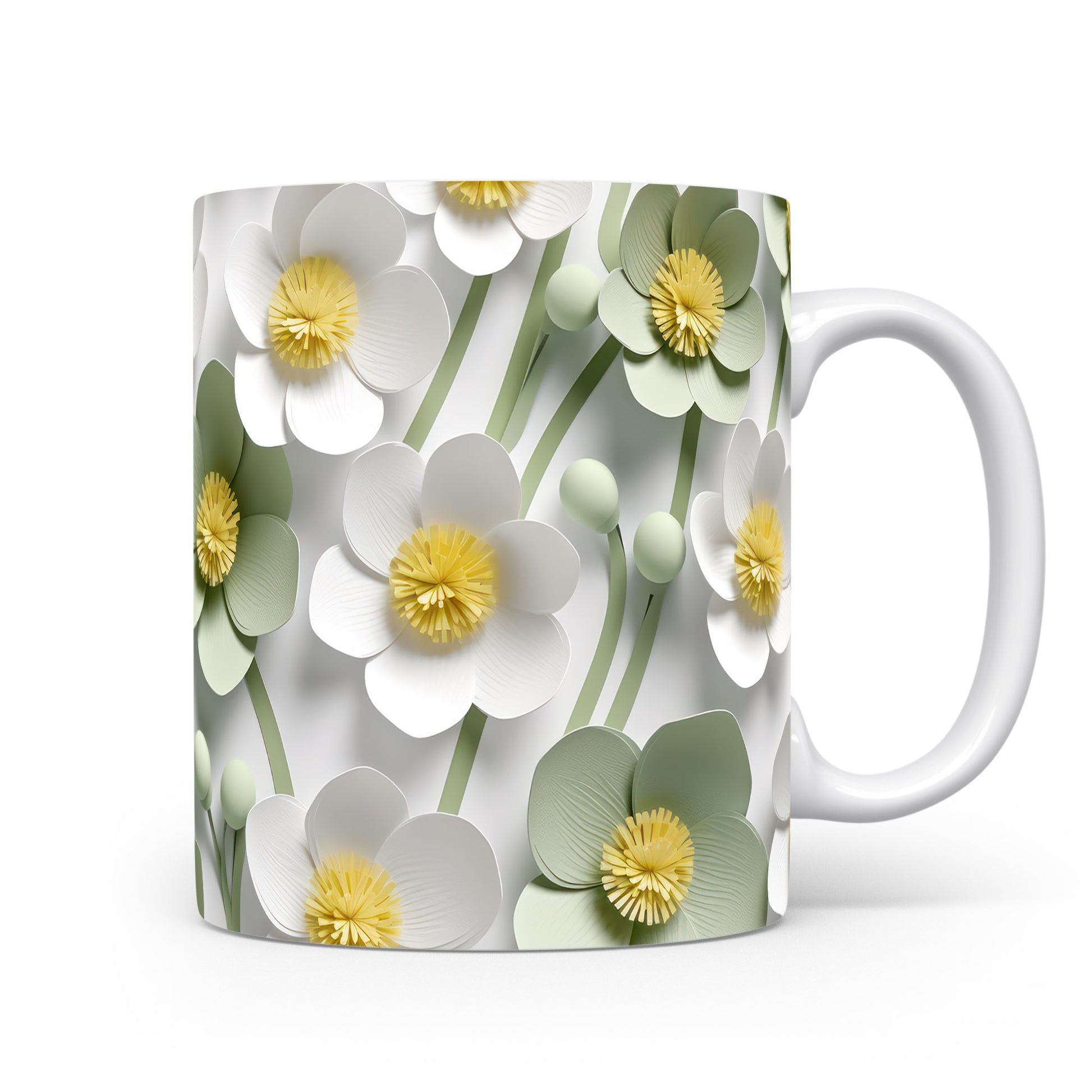 Hrnek s krásným květinovým designem v bílé, žluté a zelené barvě. Tento hrnek je ideální pro milovníky přírody a skvělým dárkem pro každého, kdo ocení přírodní prvky. Materiál: keramika. Objem: 330 ml. Vhodné do myčky i mikrovlnky. Používání tohoto hrnku přináší radost z každého doušku.