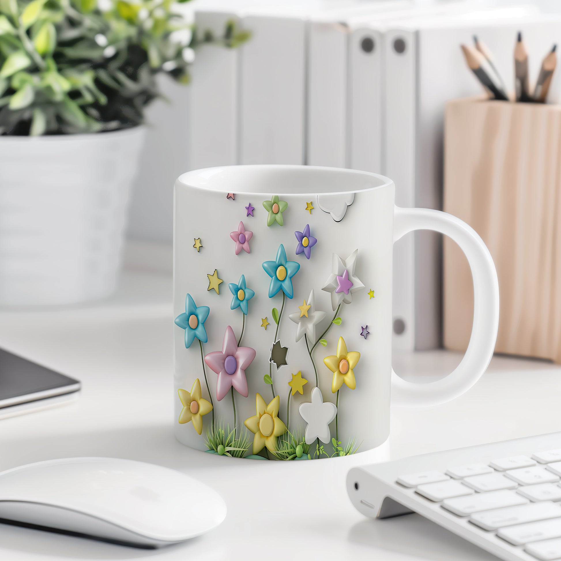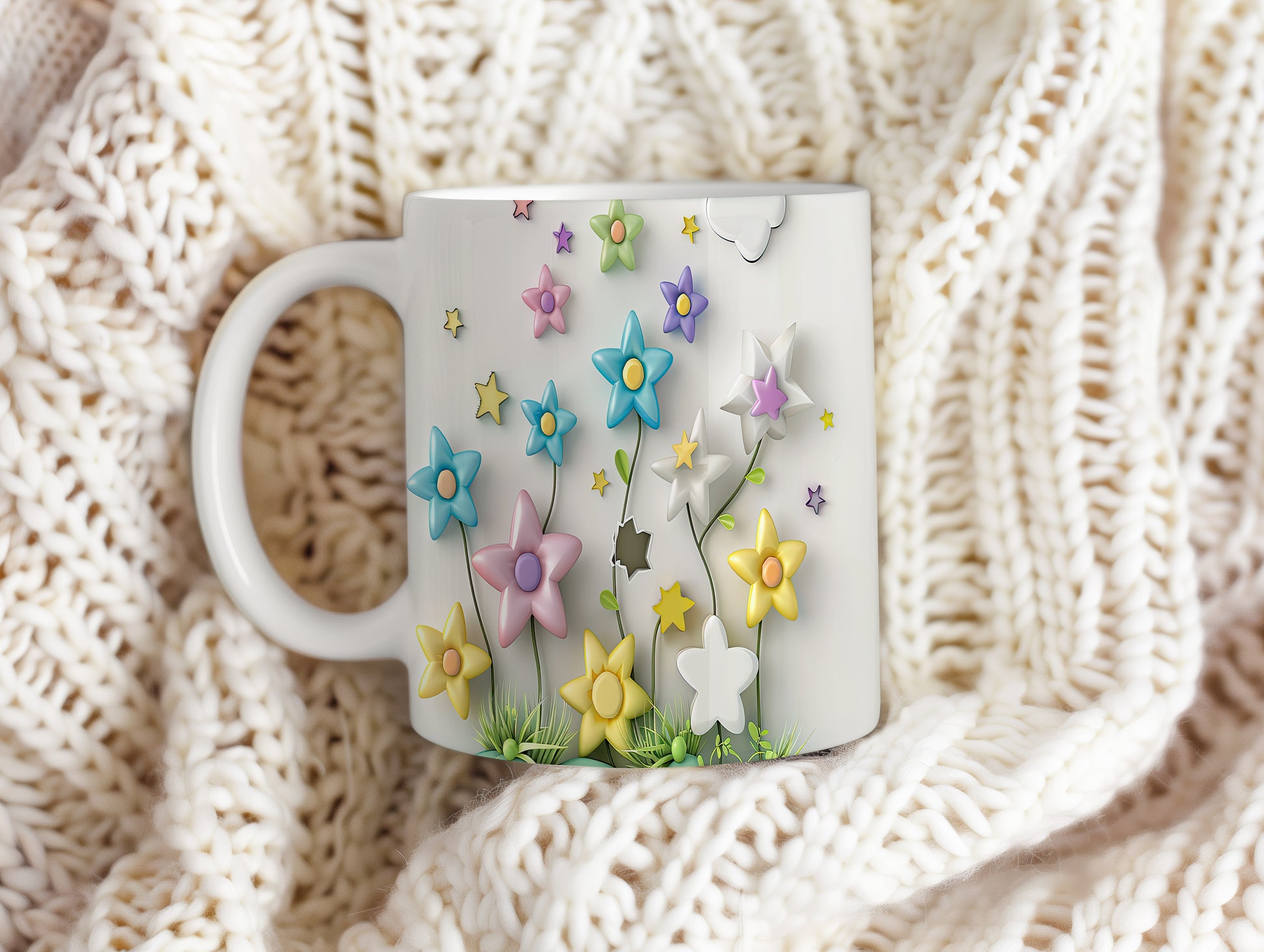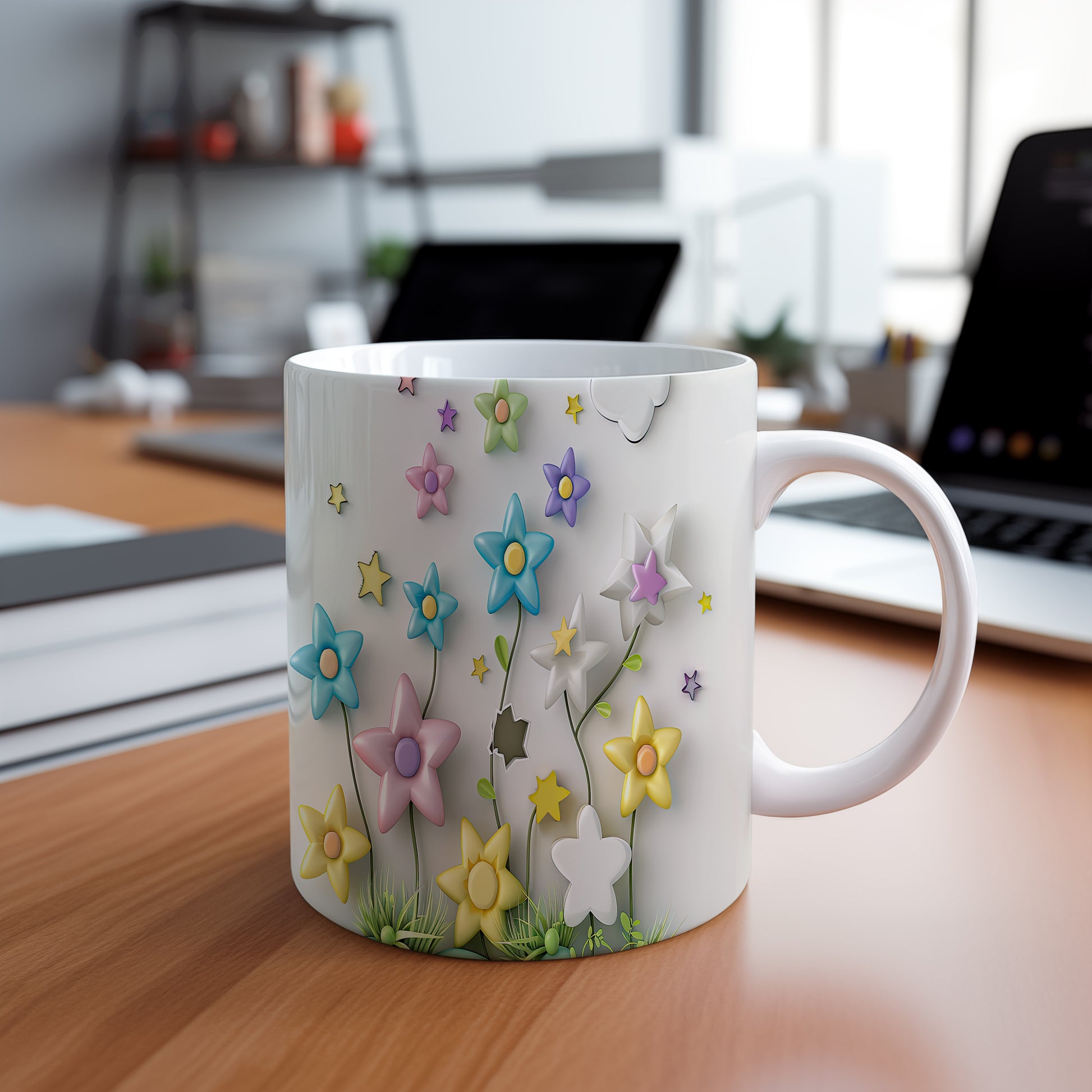 Hrnek s květinovým designem v bílých a růžových tónech – 3D efektem