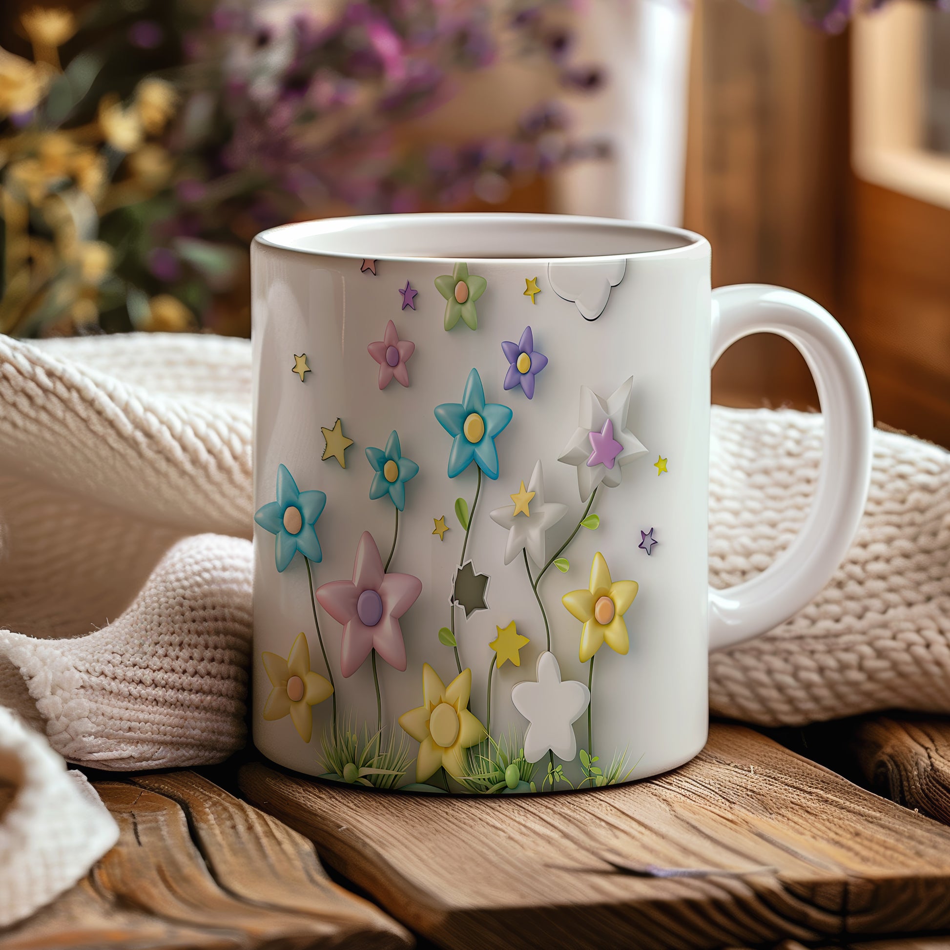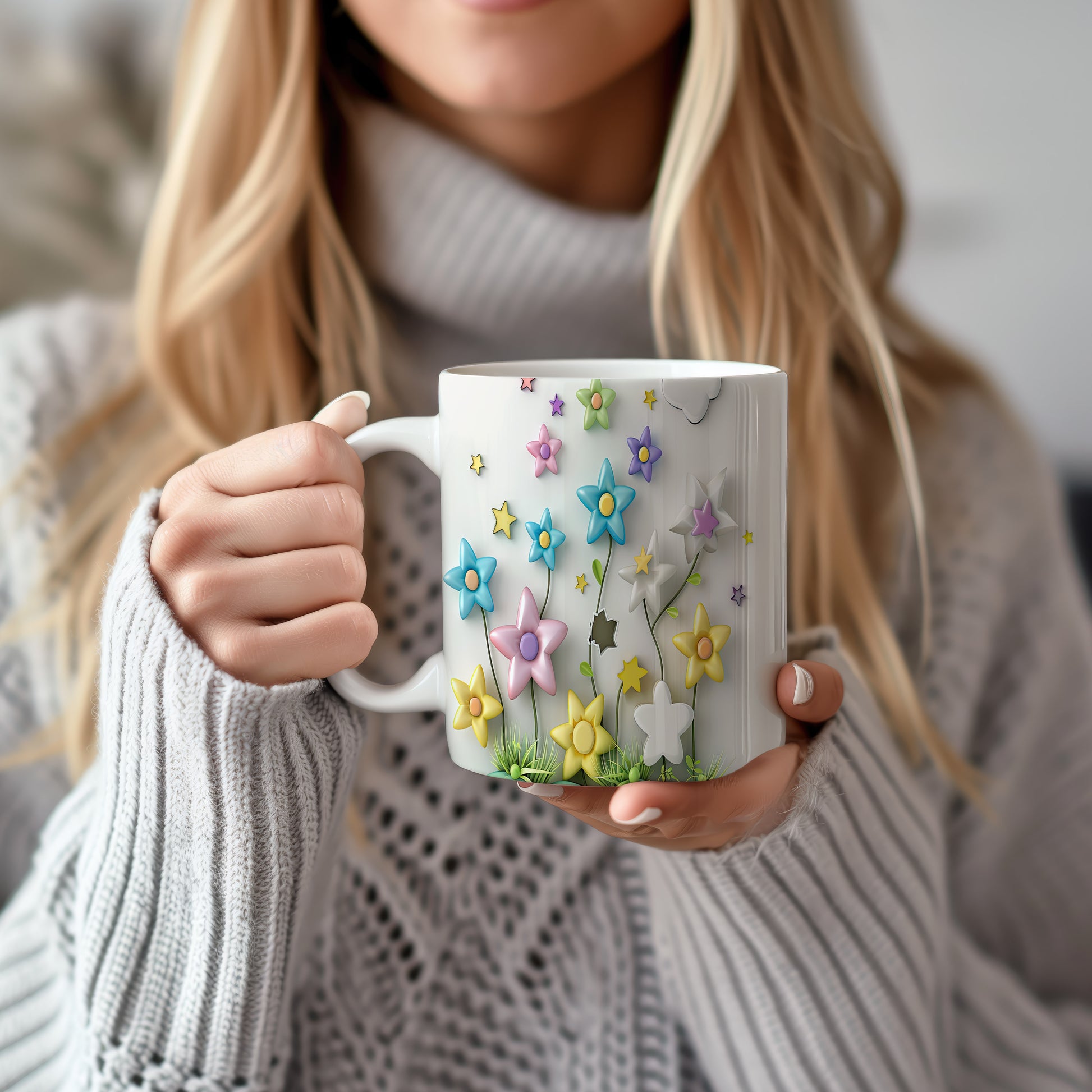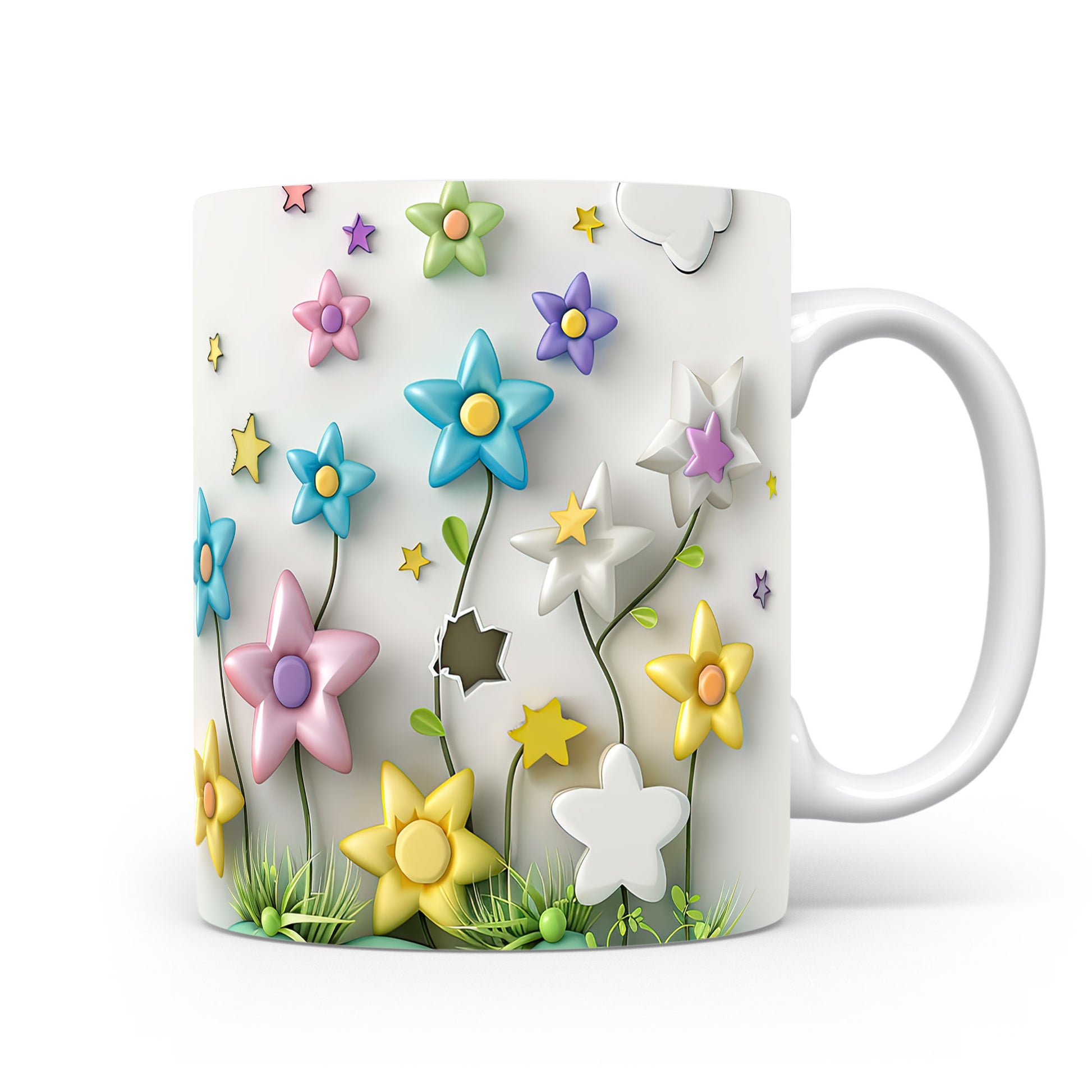 Hrnek s květinovým designem v bílých a růžových tónech – 3D efektem