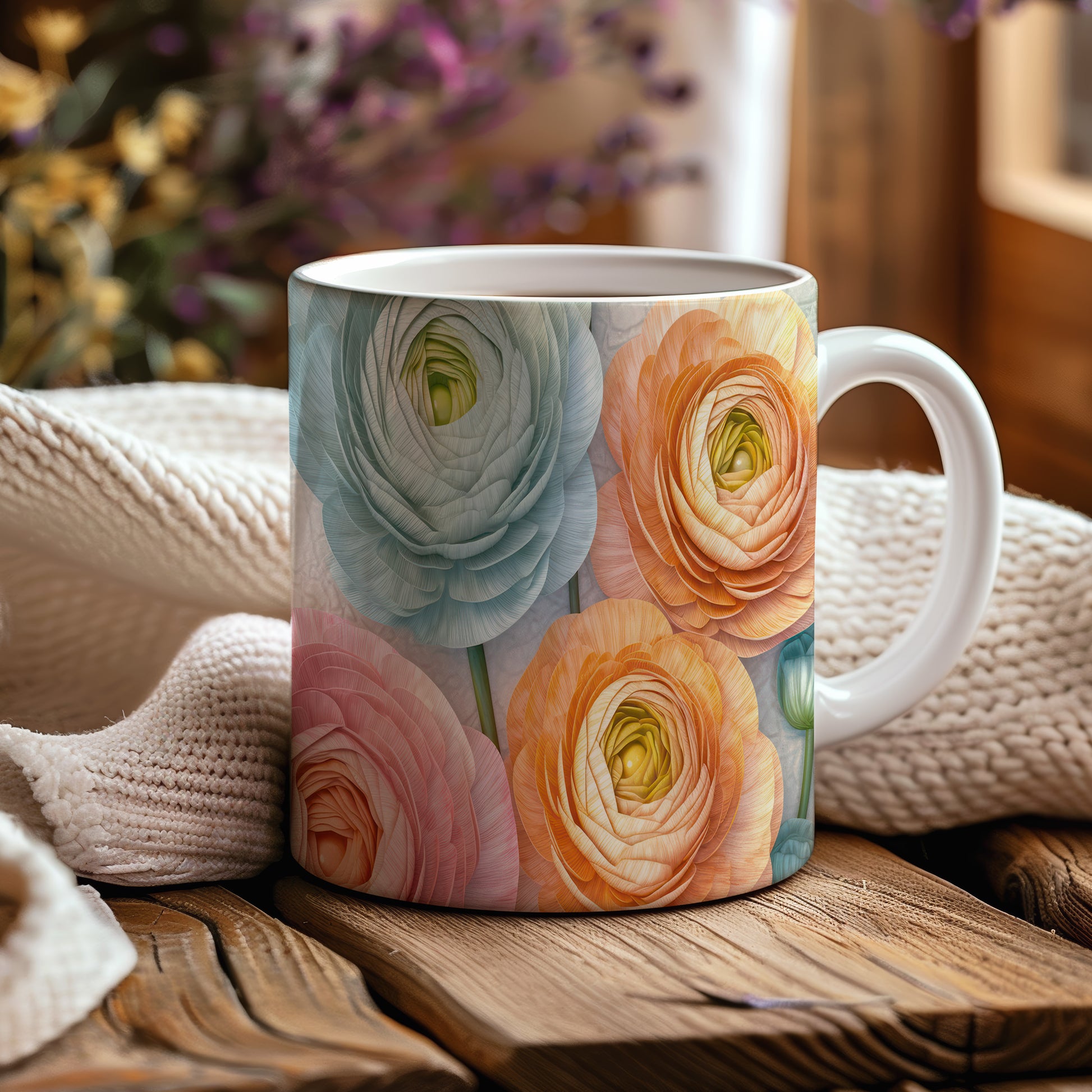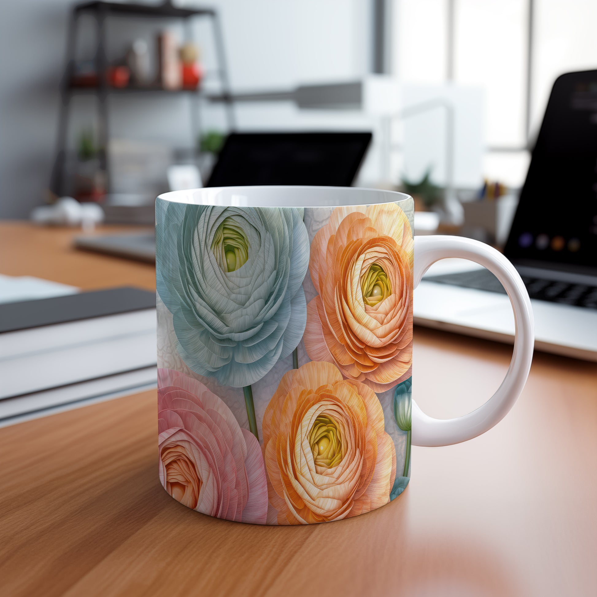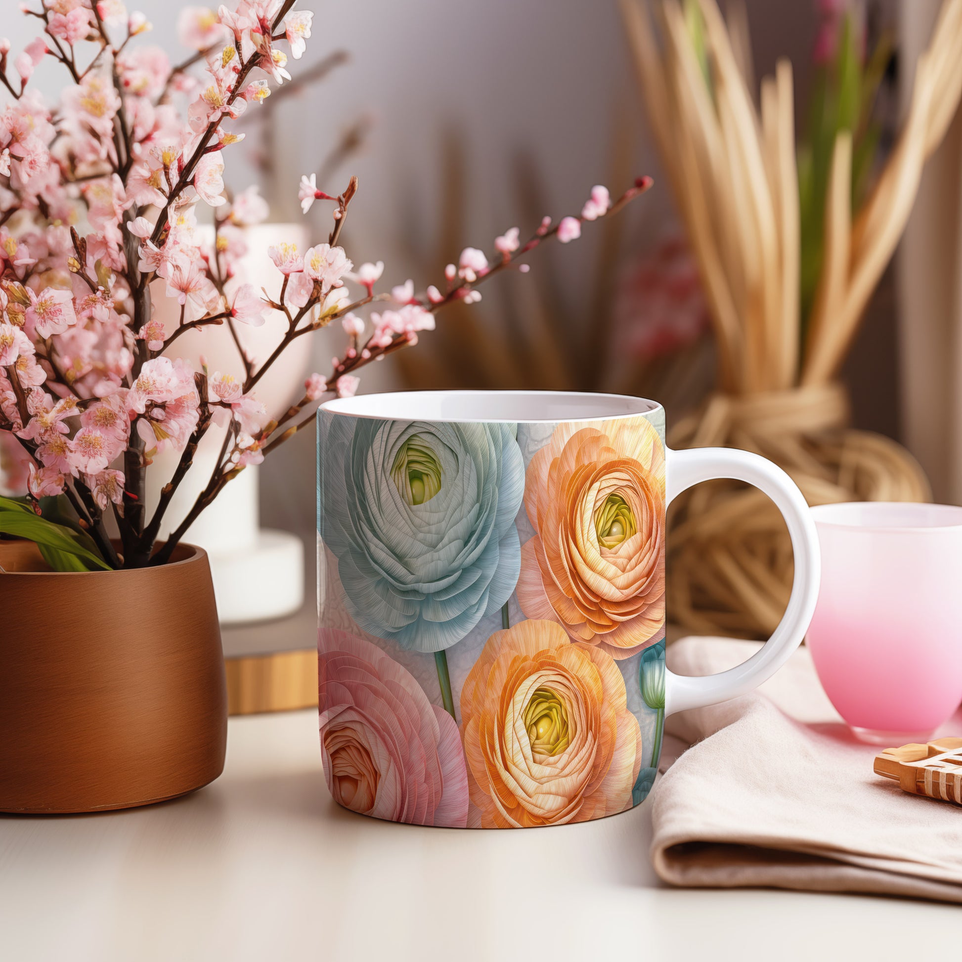 Tento krásný hrnek s ilustrací pestrobarevných ranunculus přináší osvěžení a eleganci. Je ideální pro všechny milovníky přírody a skvělým tipem na dárek pro blízké. Materiál: keramika. Objem: 330 ml. Vhodné do myčky i mikrovlnky. Používání tohoto hrnku vám zpříjemní každé ráno a dodá vašemu pití osobitý styl.