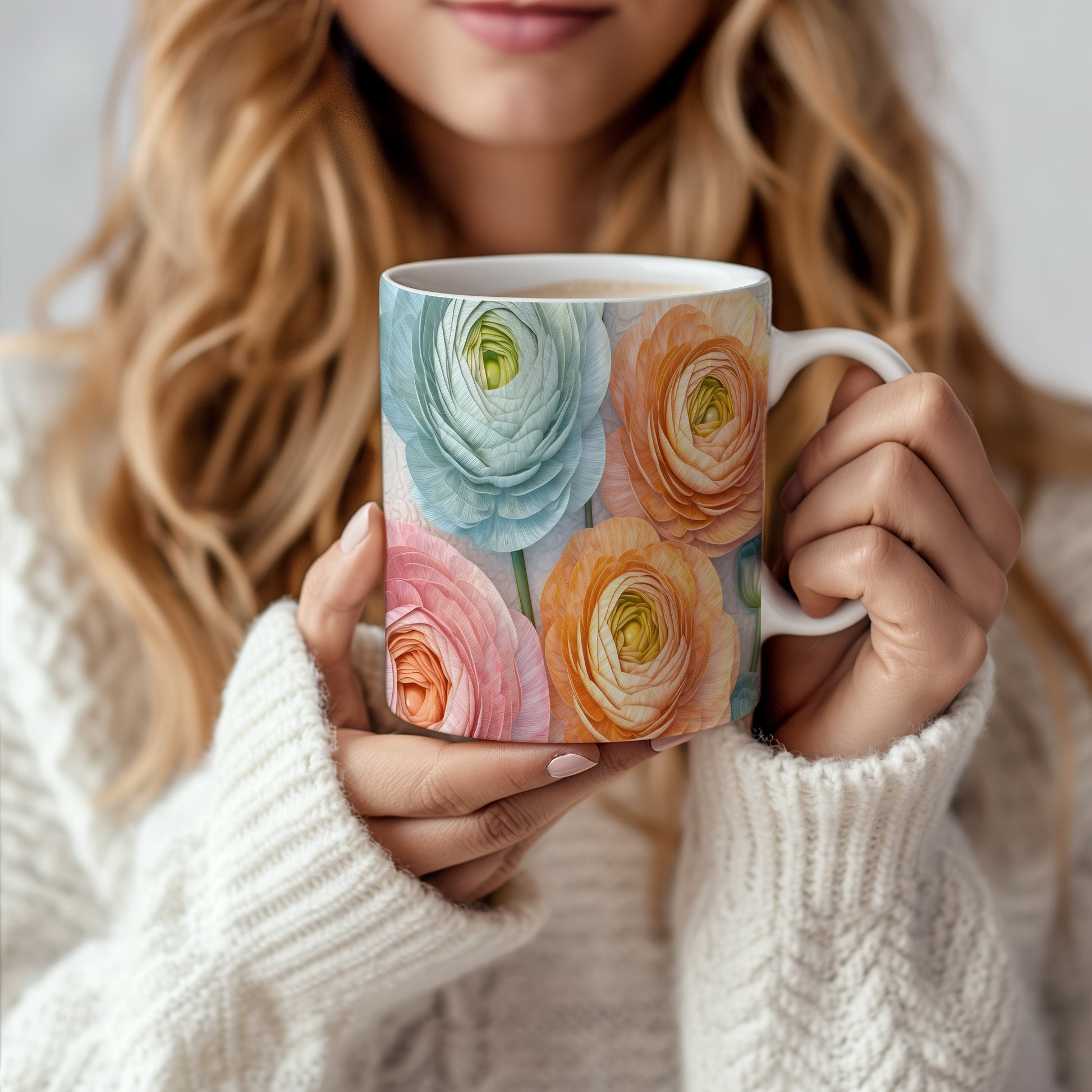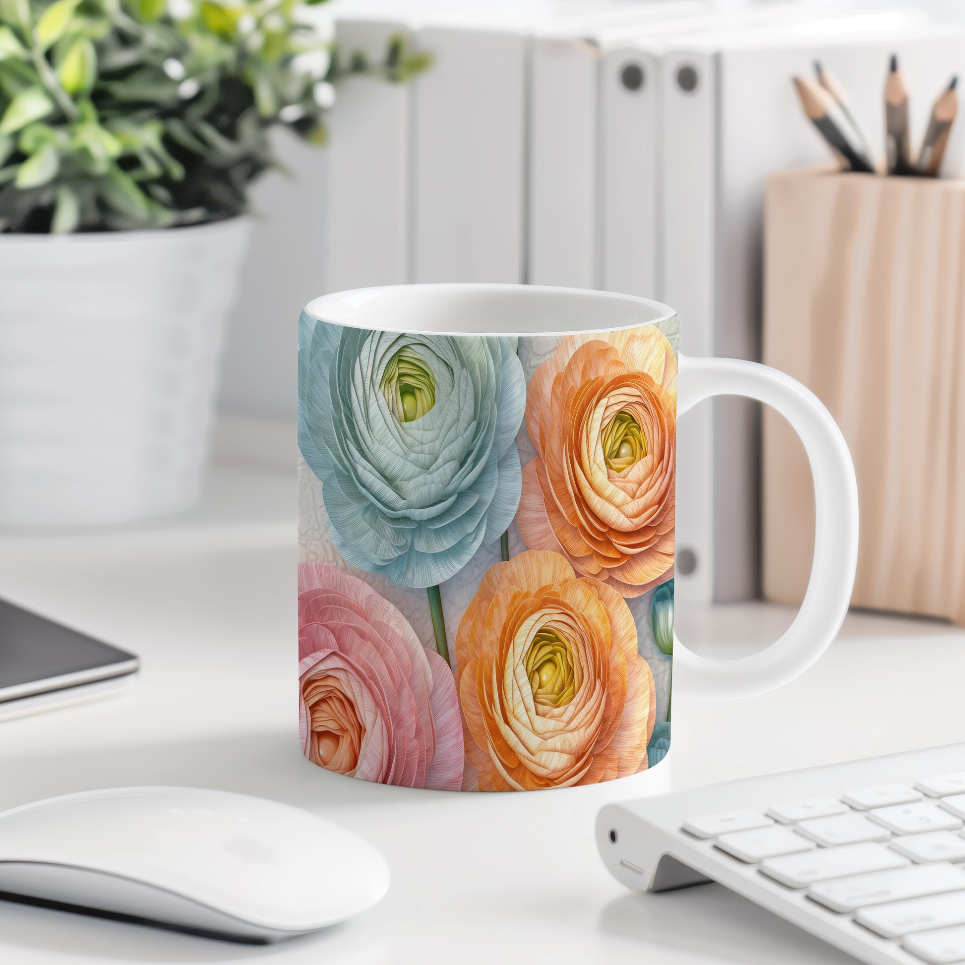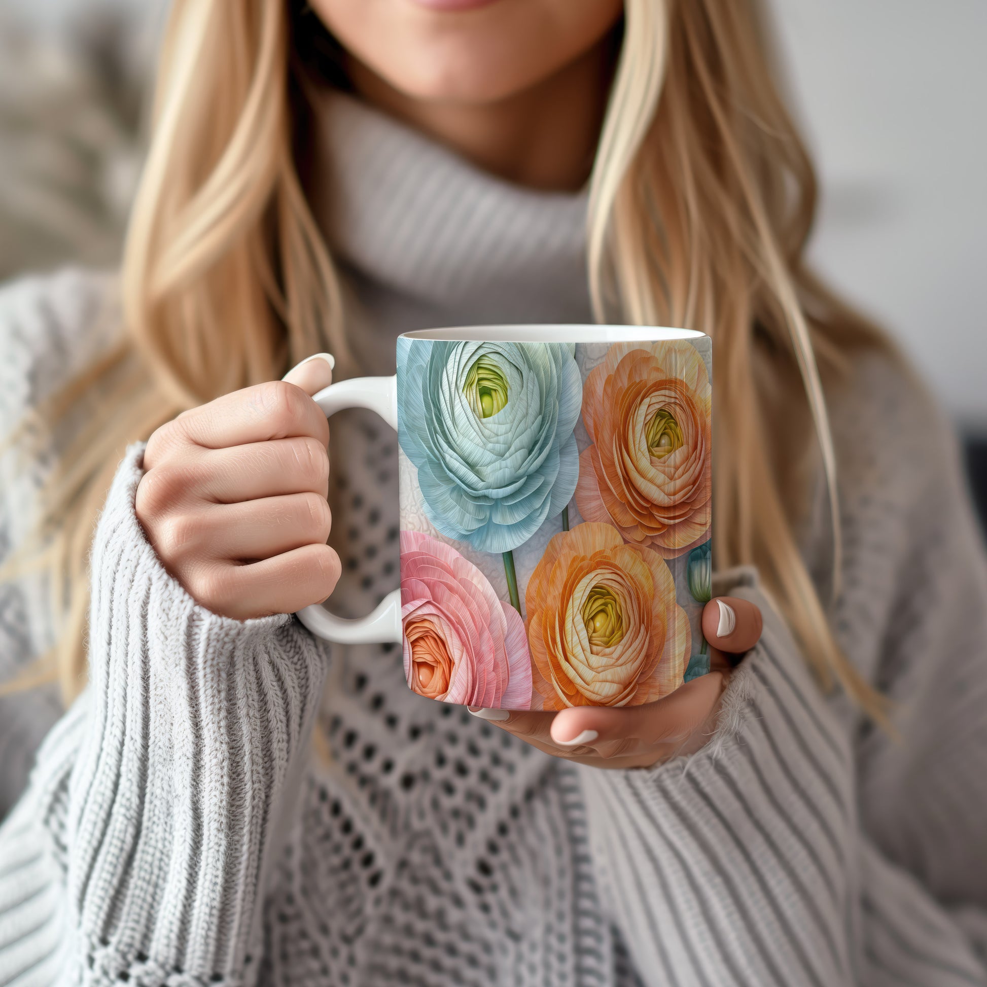 Tento krásný hrnek s ilustrací pestrobarevných ranunculus přináší osvěžení a eleganci. Je ideální pro všechny milovníky přírody a skvělým tipem na dárek pro blízké. Materiál: keramika. Objem: 330 ml. Vhodné do myčky i mikrovlnky. Používání tohoto hrnku vám zpříjemní každé ráno a dodá vašemu pití osobitý styl.