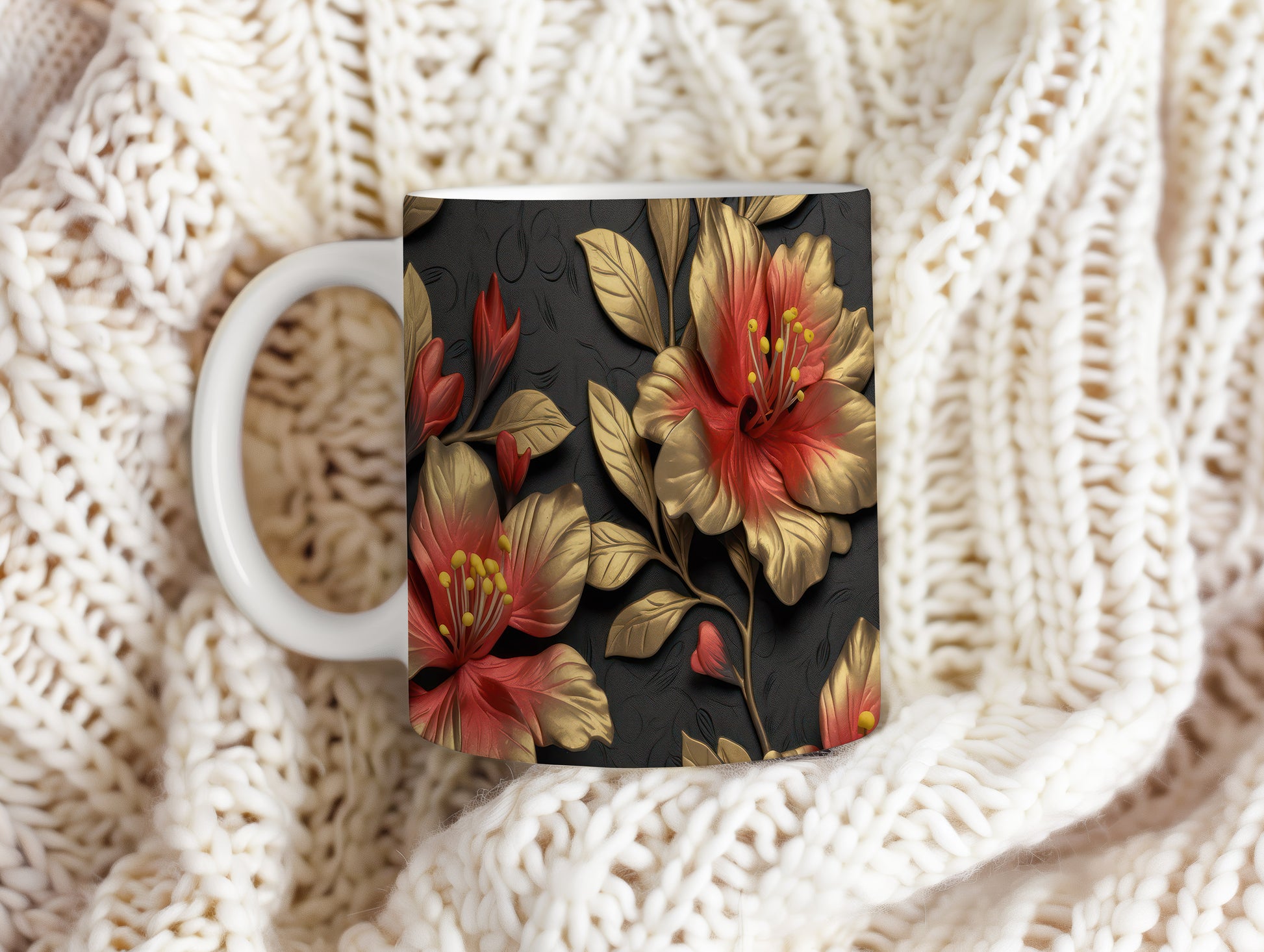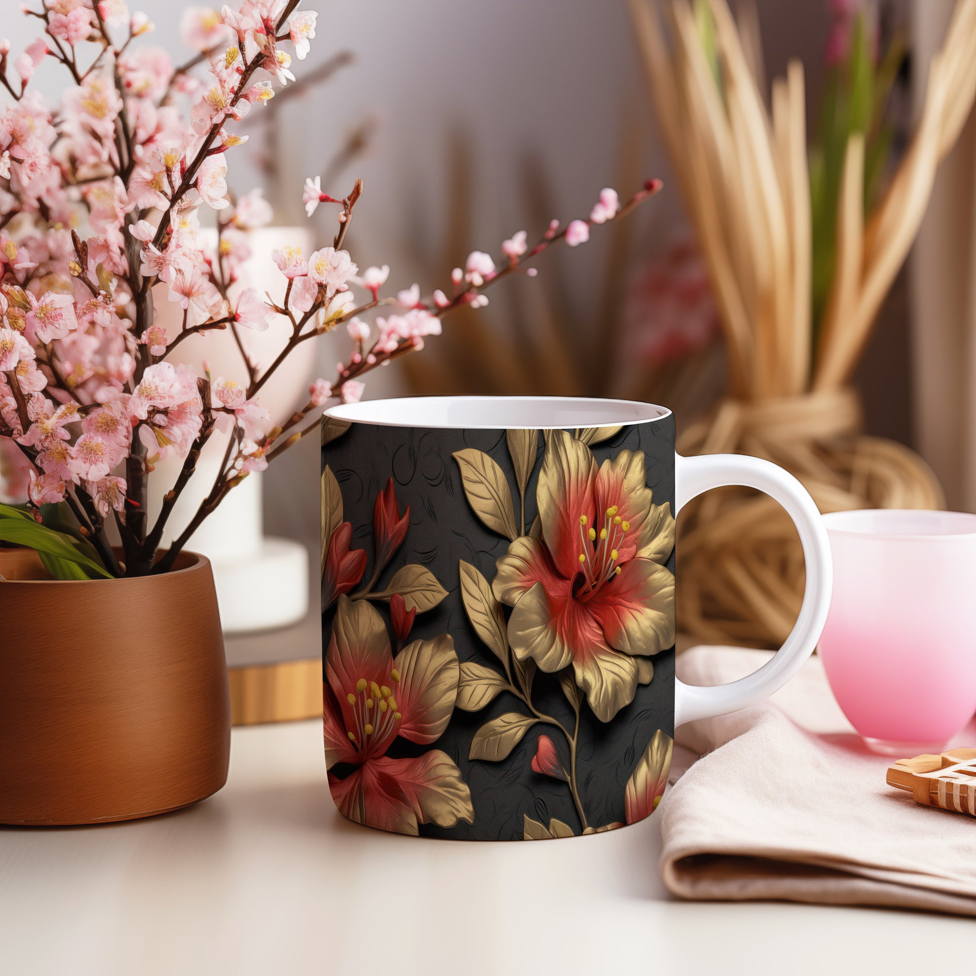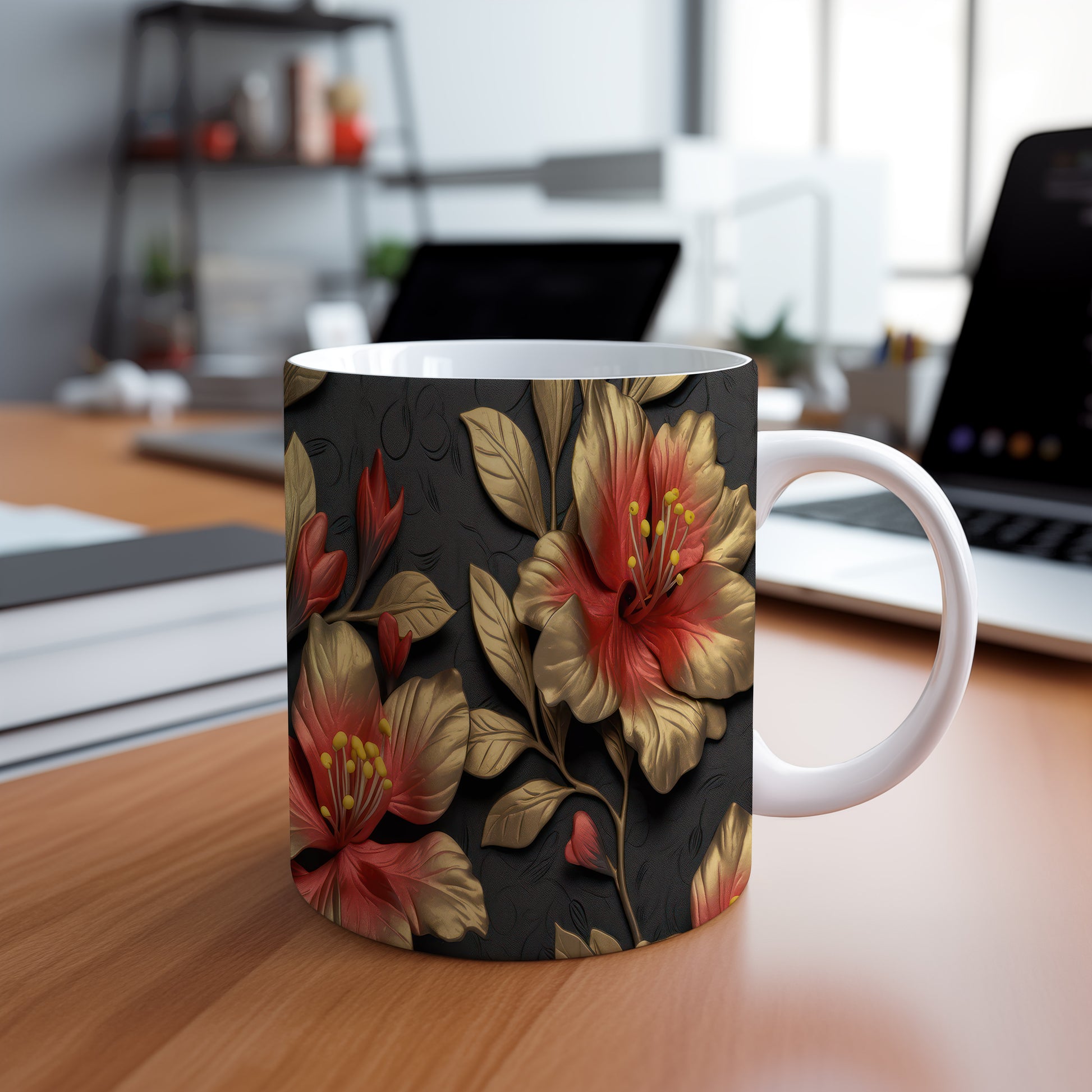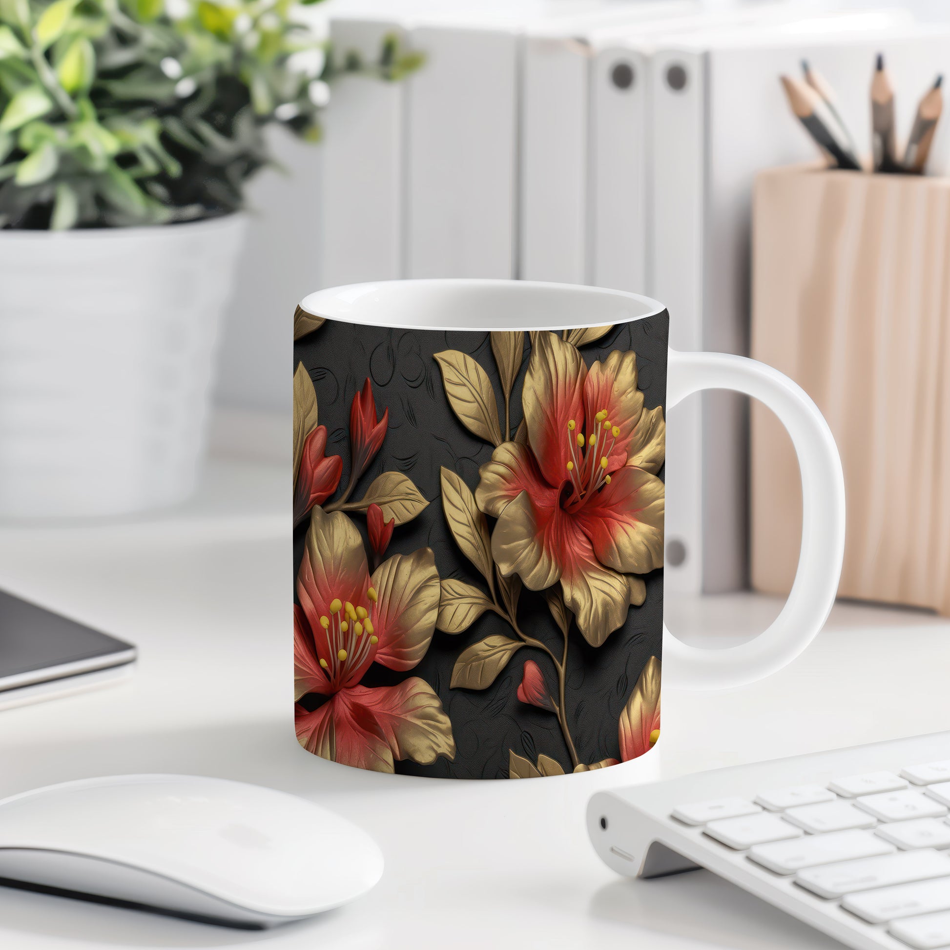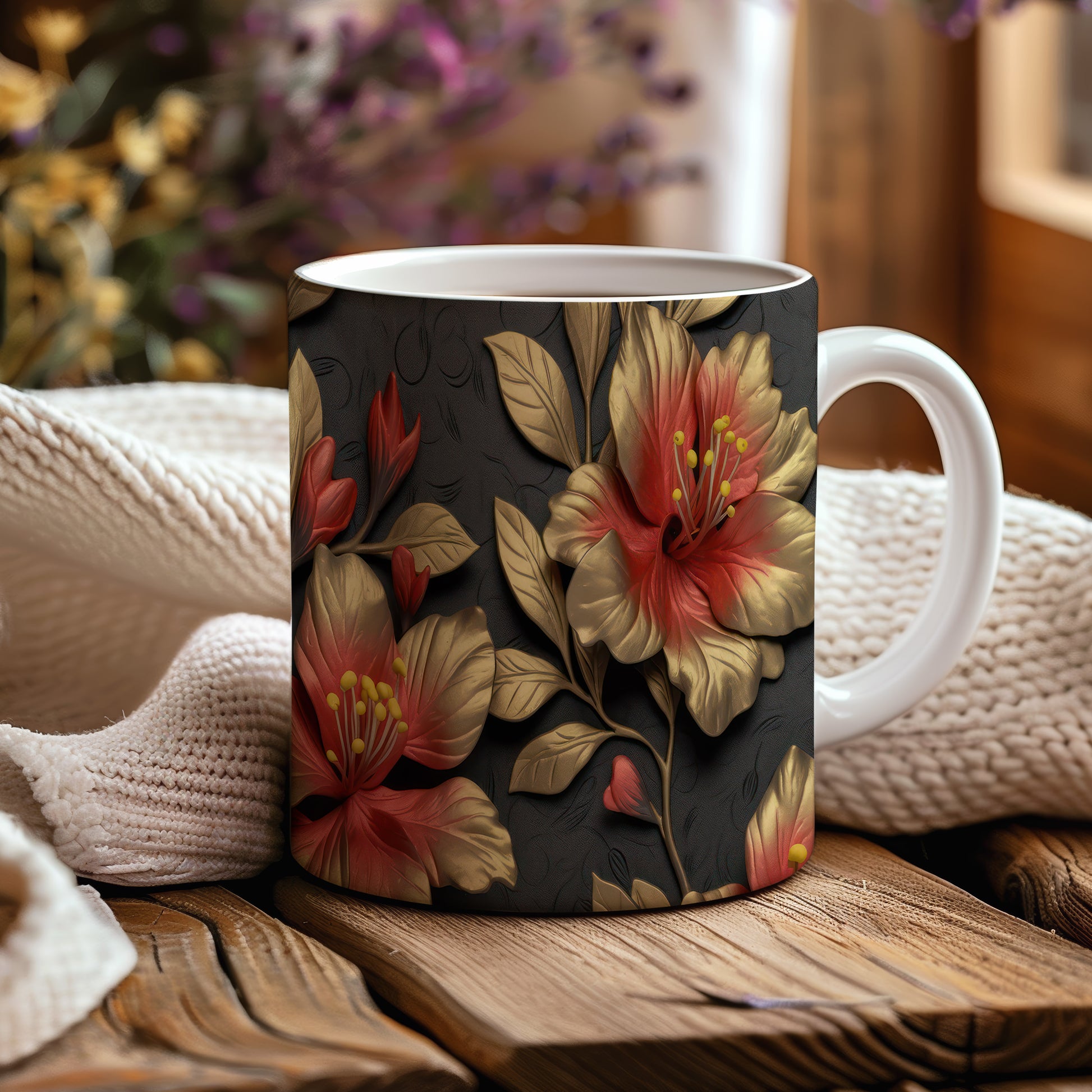 Tento hrnek s květinovým motivem v červené a zlaté barvě je ideálním doplňkem pro milovníky přírody. Skvěle se hodí jako dárek pro přátele nebo rodinu, kteří ocení krásu přírody. Materiál: keramika. Objem: 330 ml. Vhodné do myčky i mikrovlnky. Používání tohoto hrnku přináší radost z každého doušku.