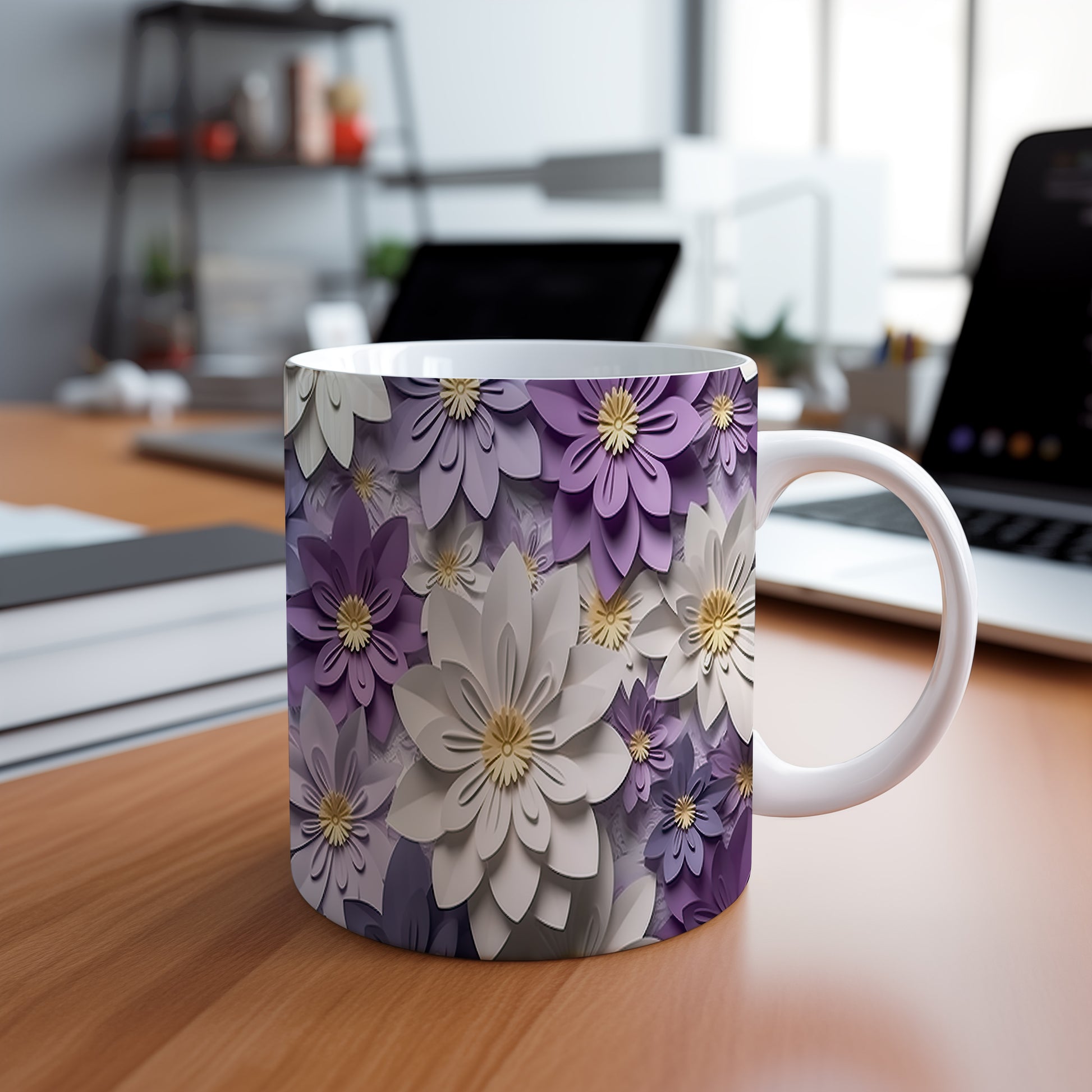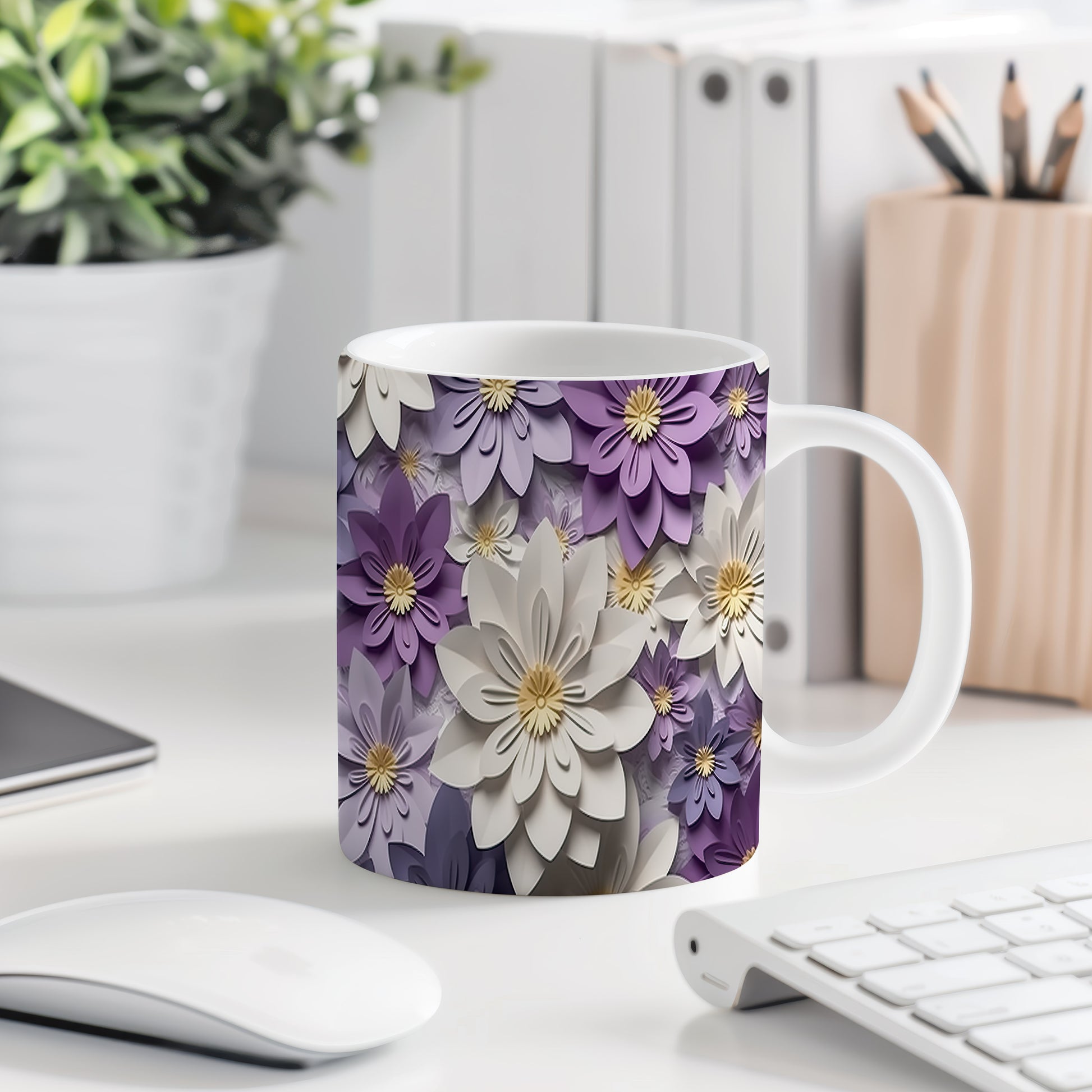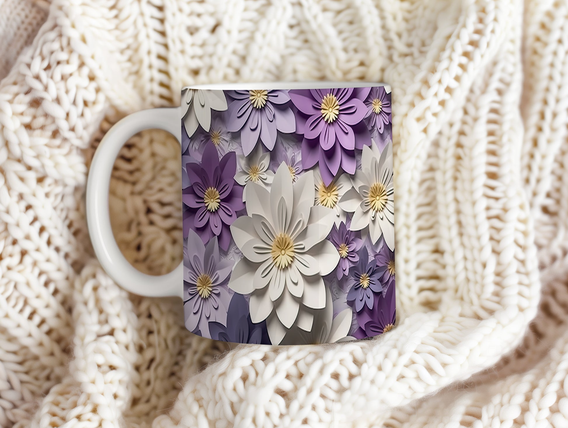 Hrnek s květinovým motivem 3D efektem – bílým provedením