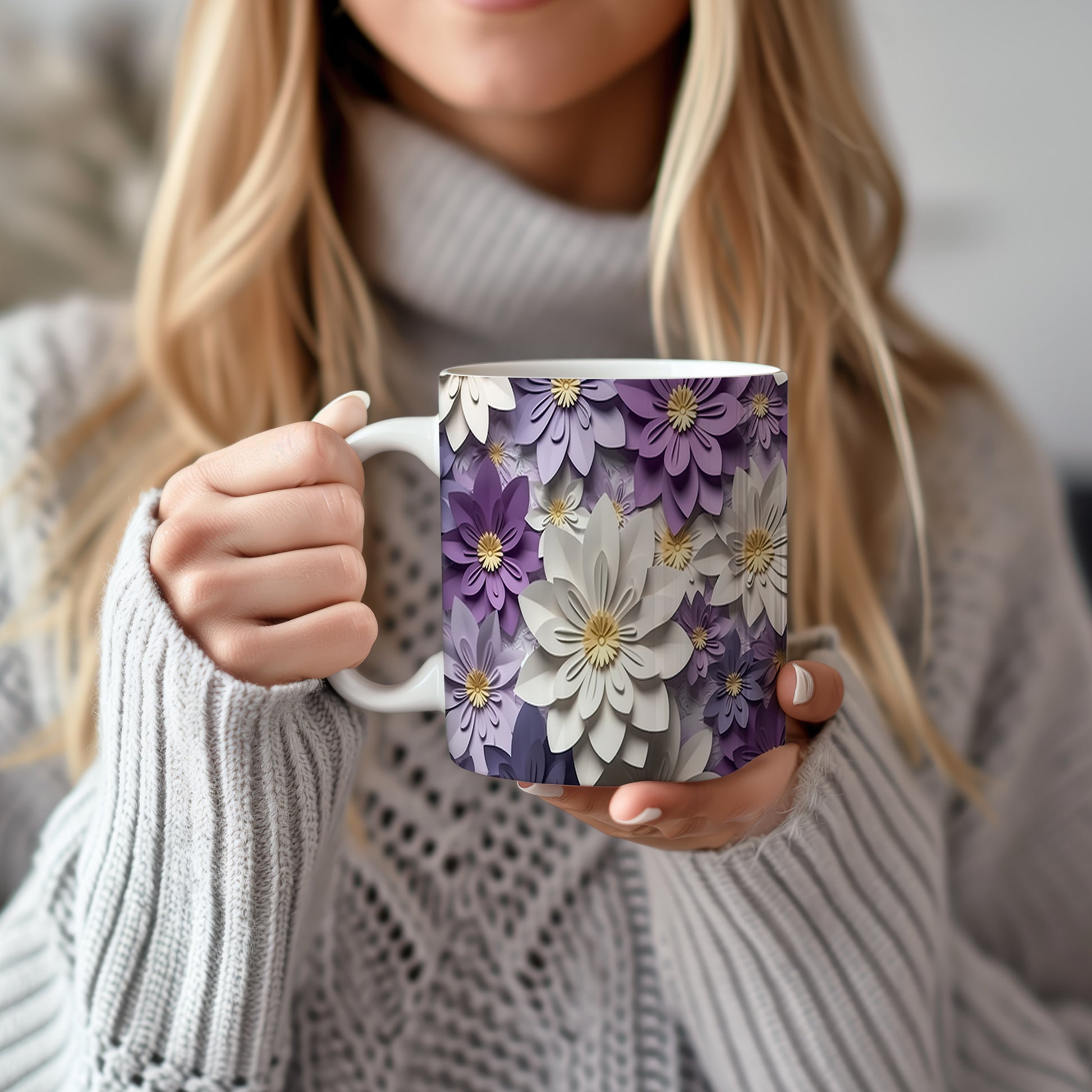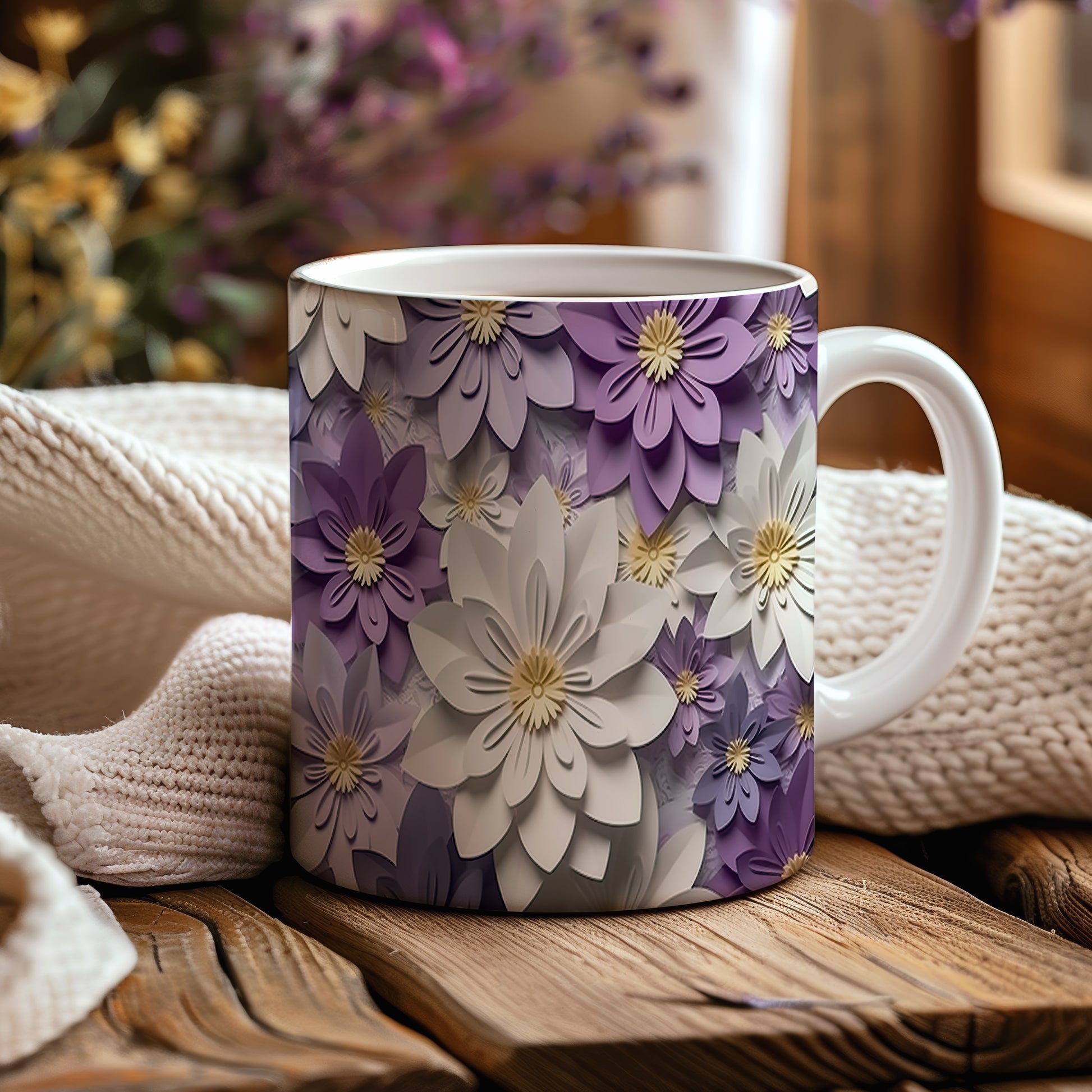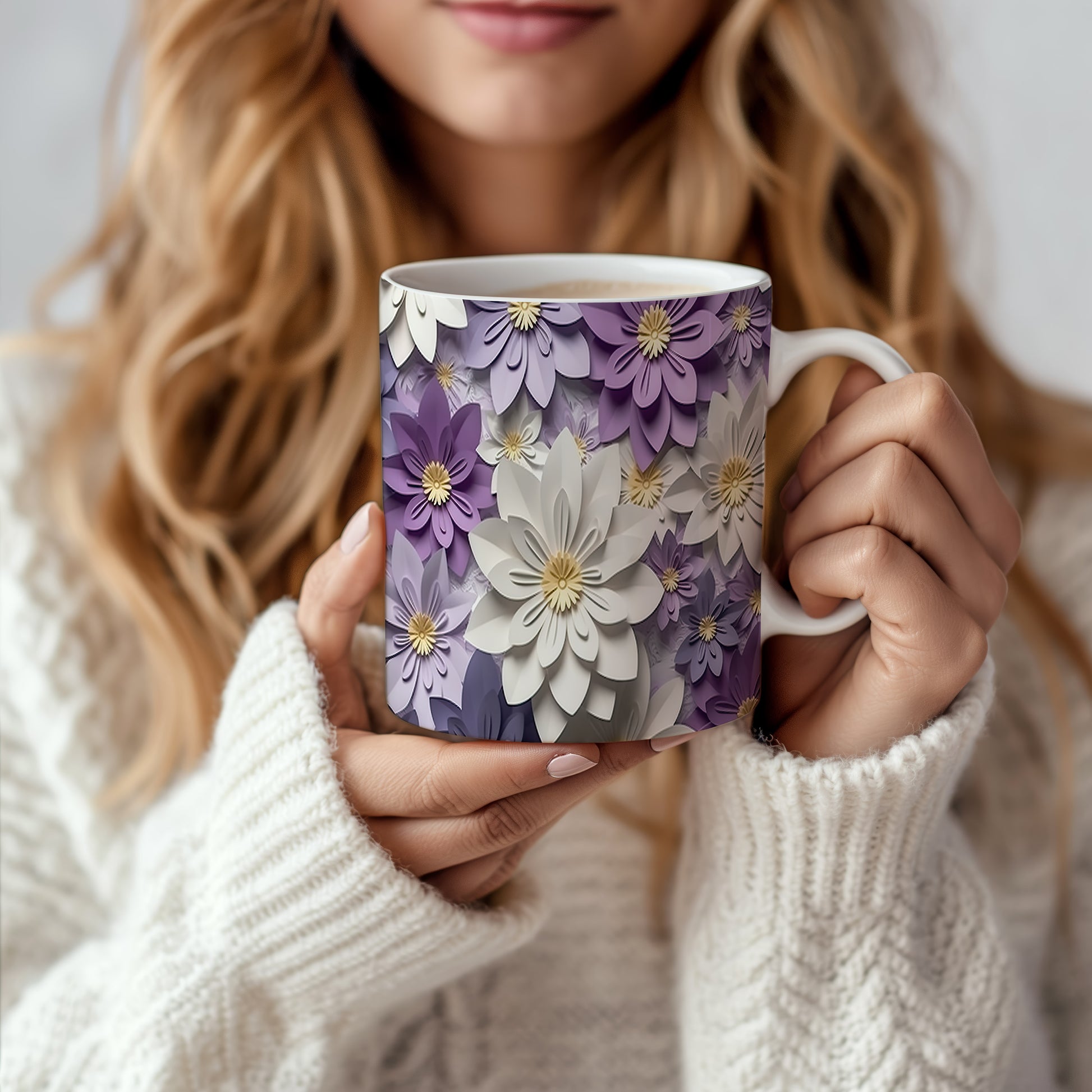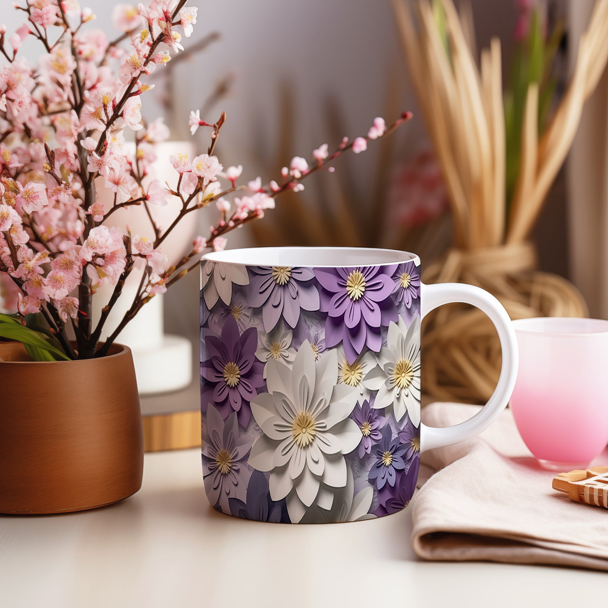 Hrnek s květinovým motivem 3D efektem – bílým provedením