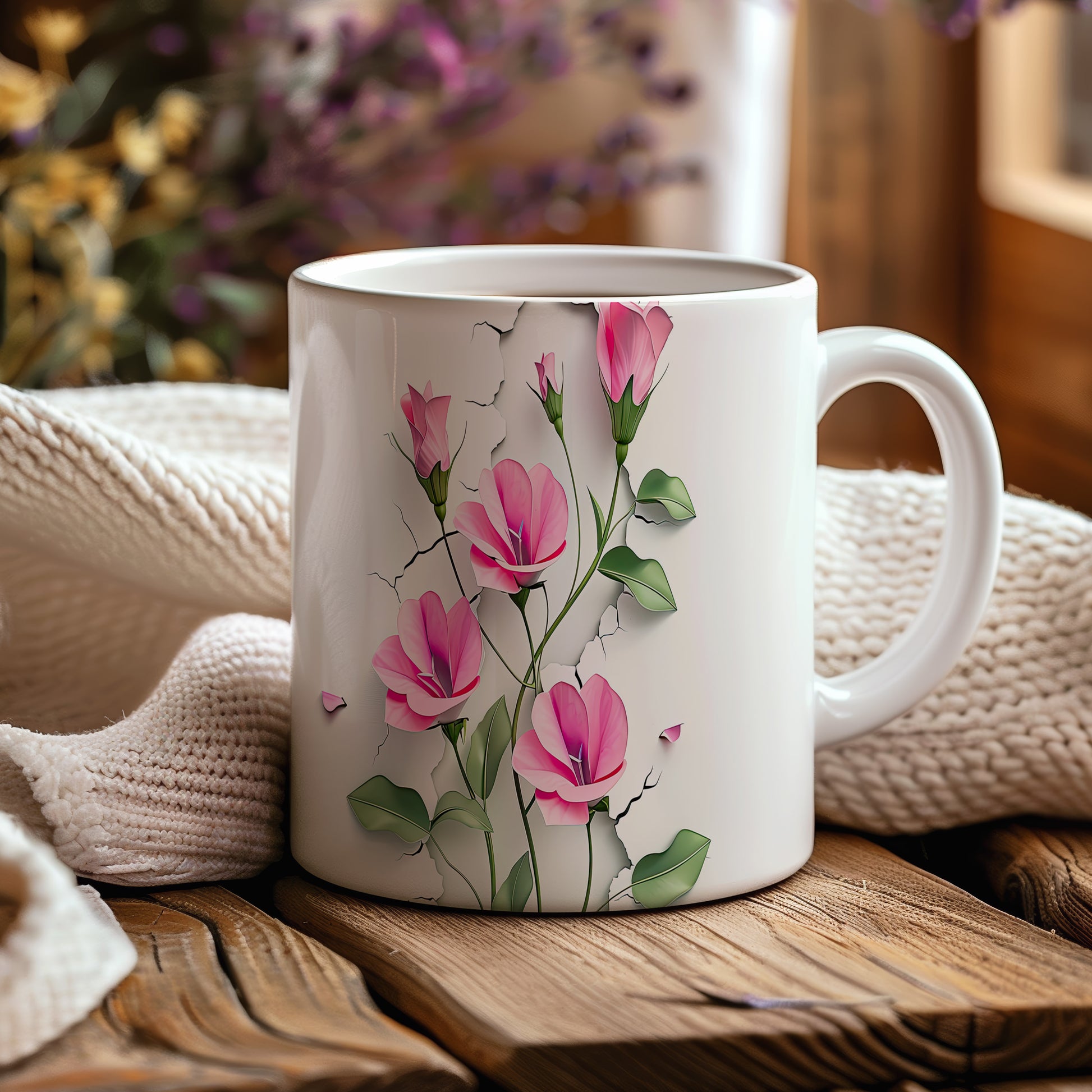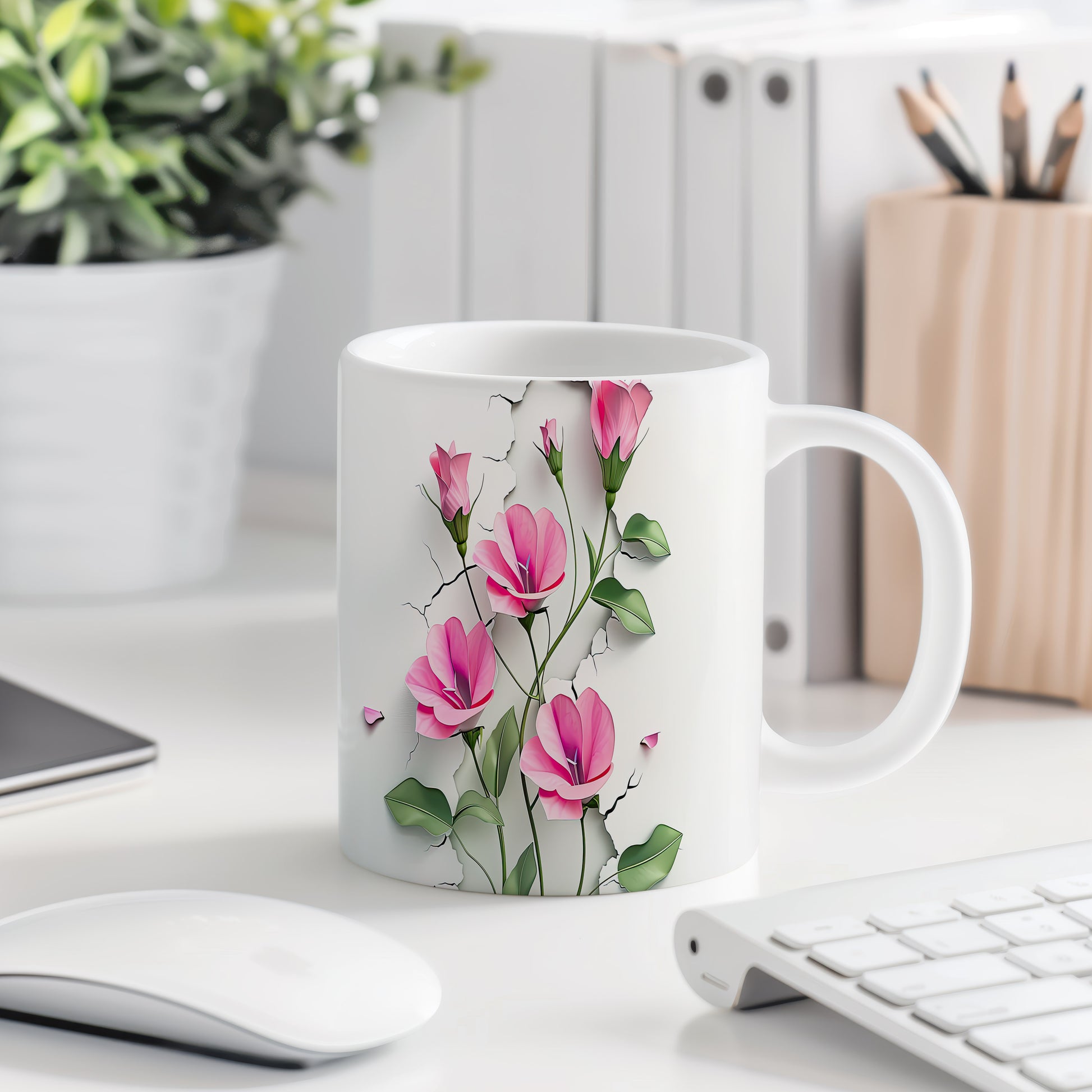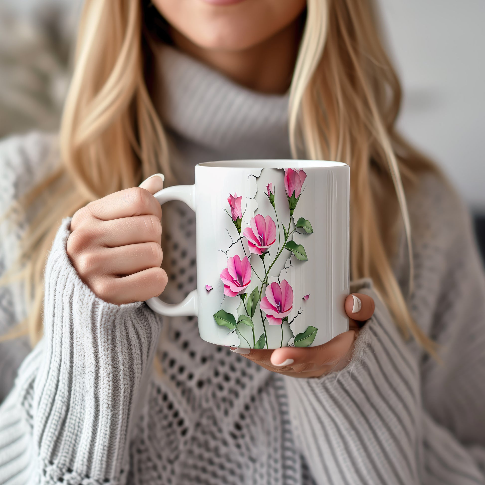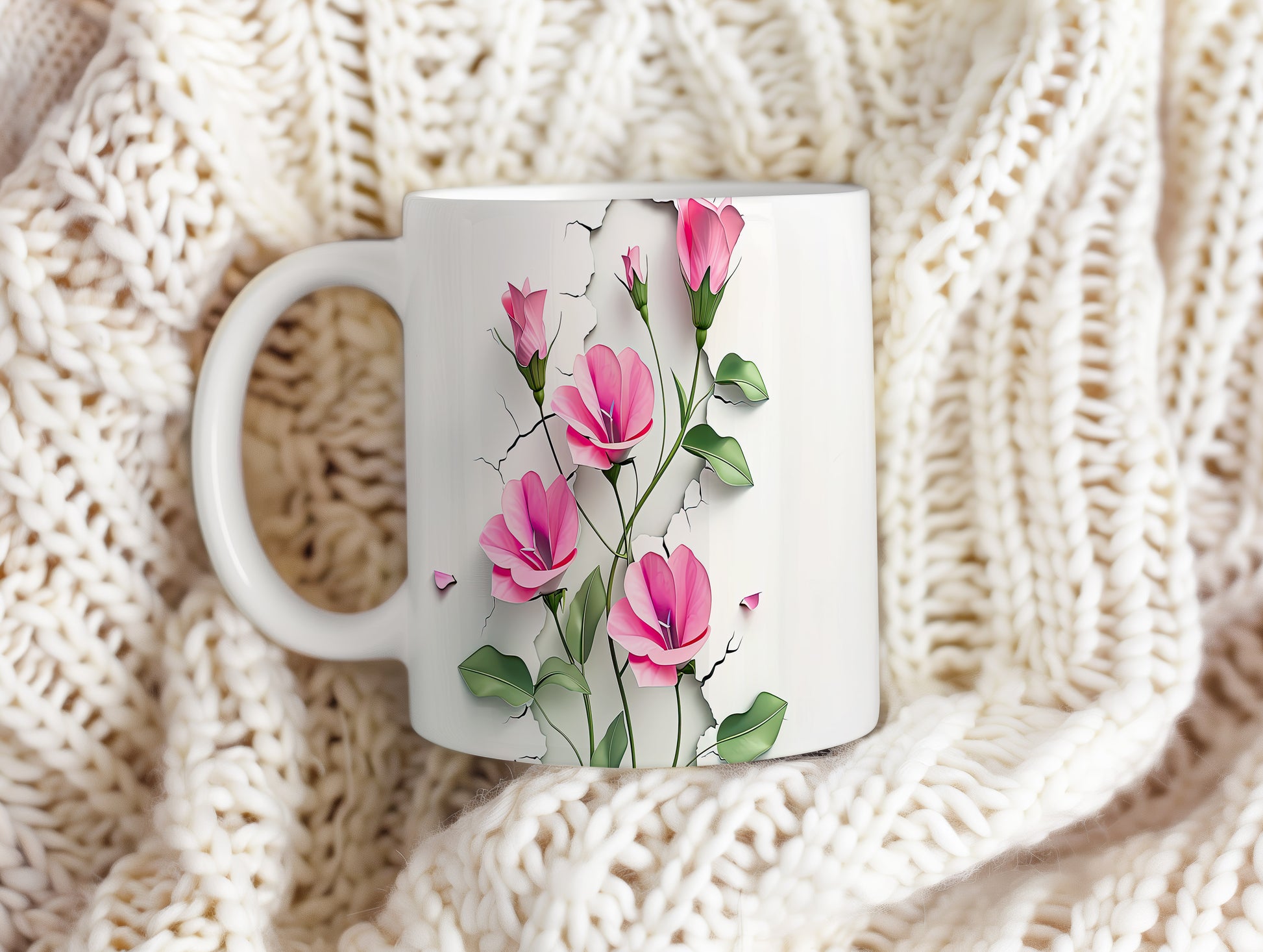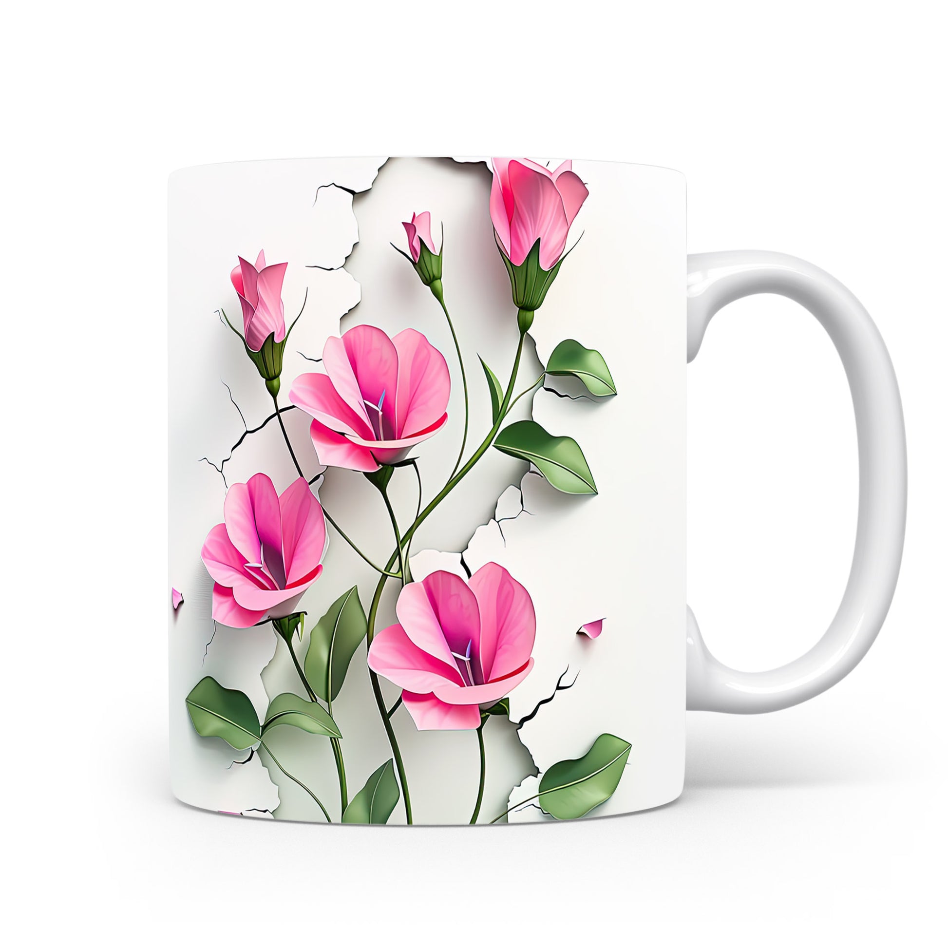 Hrnek s květinovým motivem 3D efektem – limitovaným vzhledem