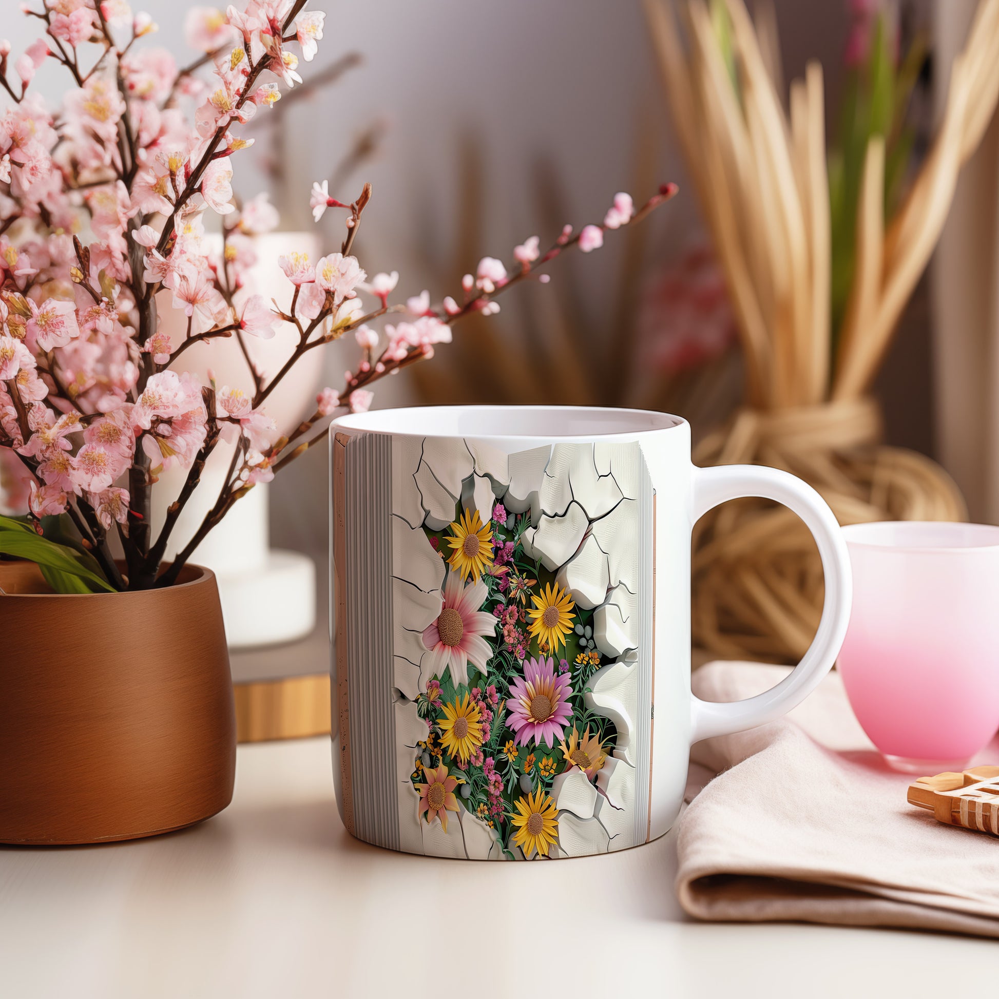 Hrnek s květinovým motivem 3D efektem – unikátní variantou
