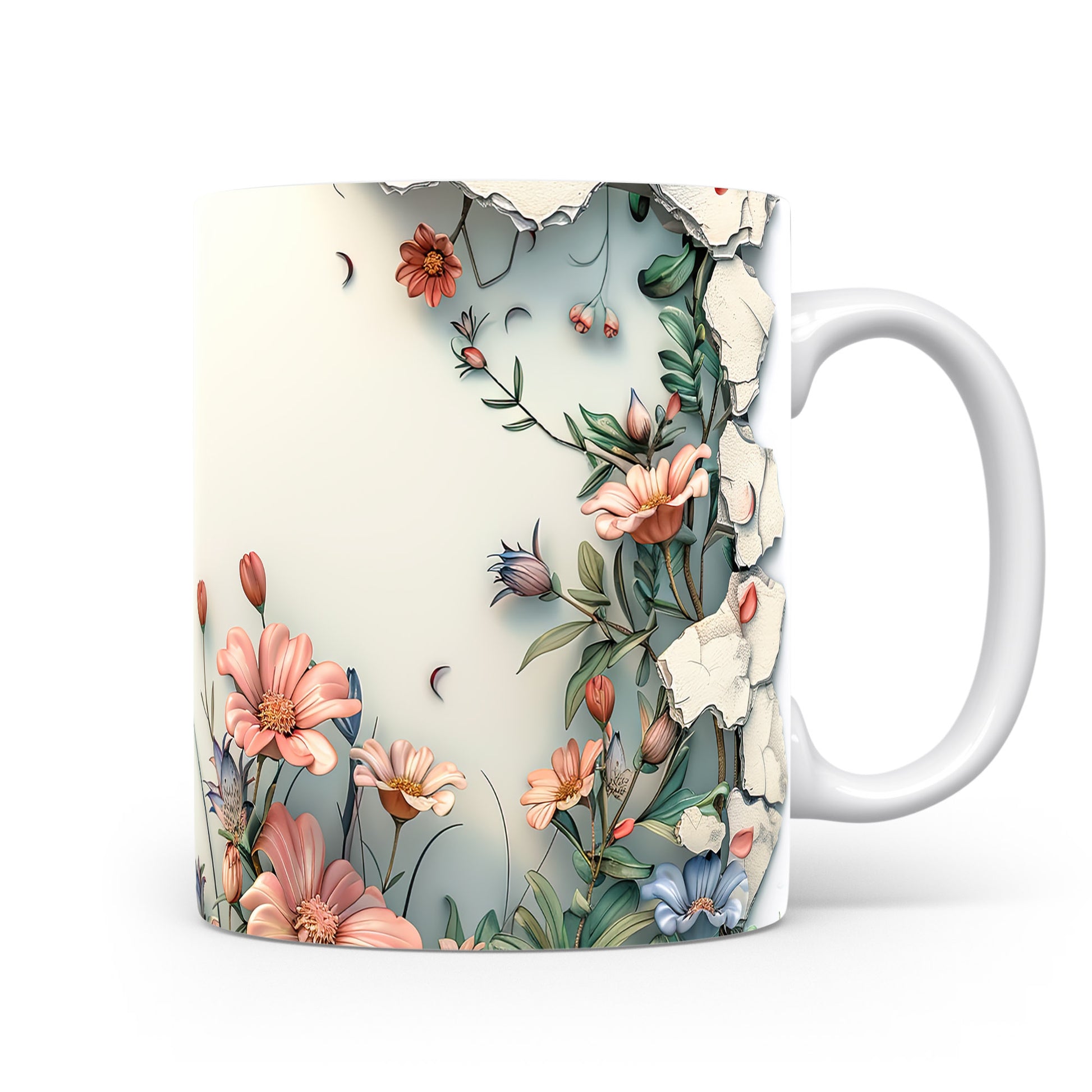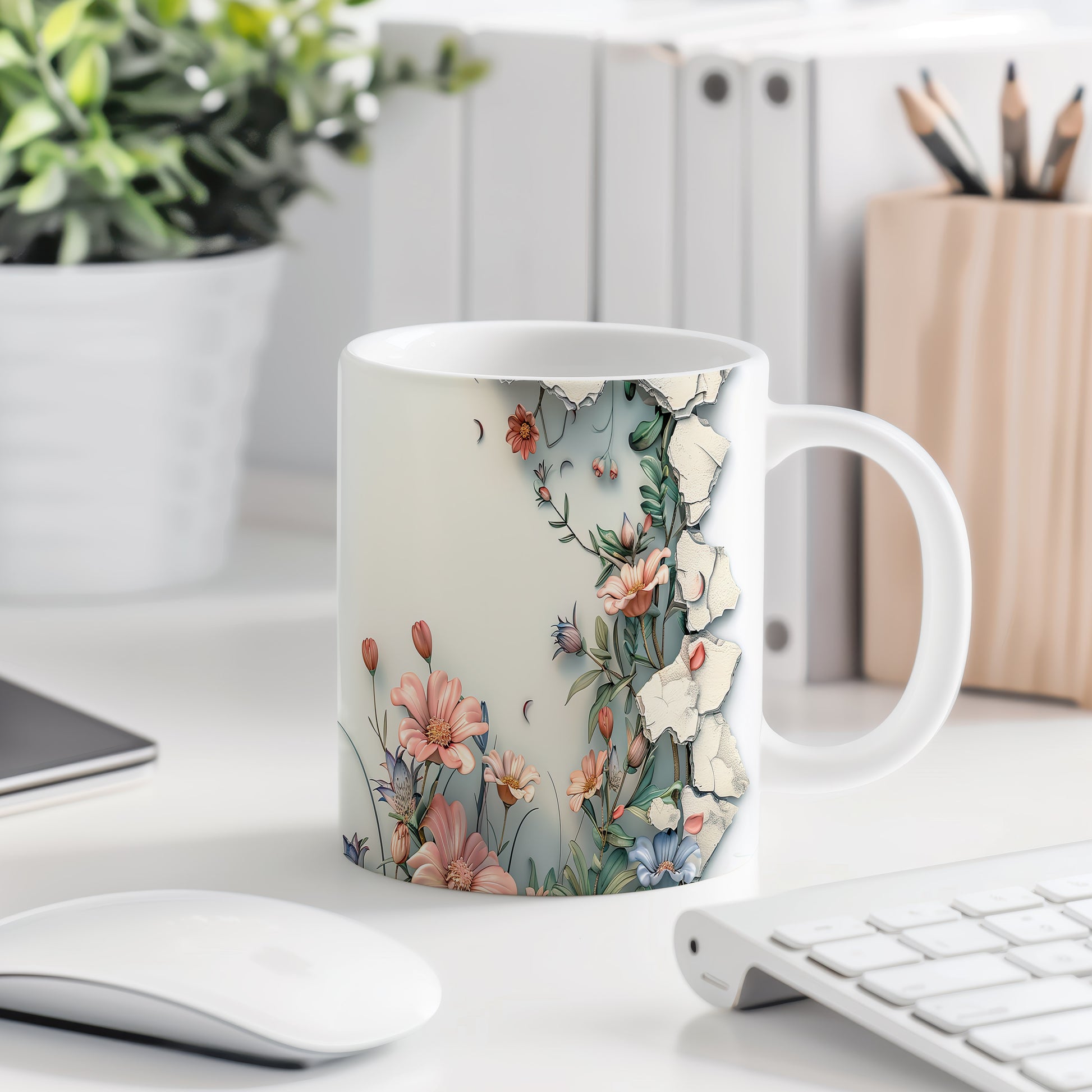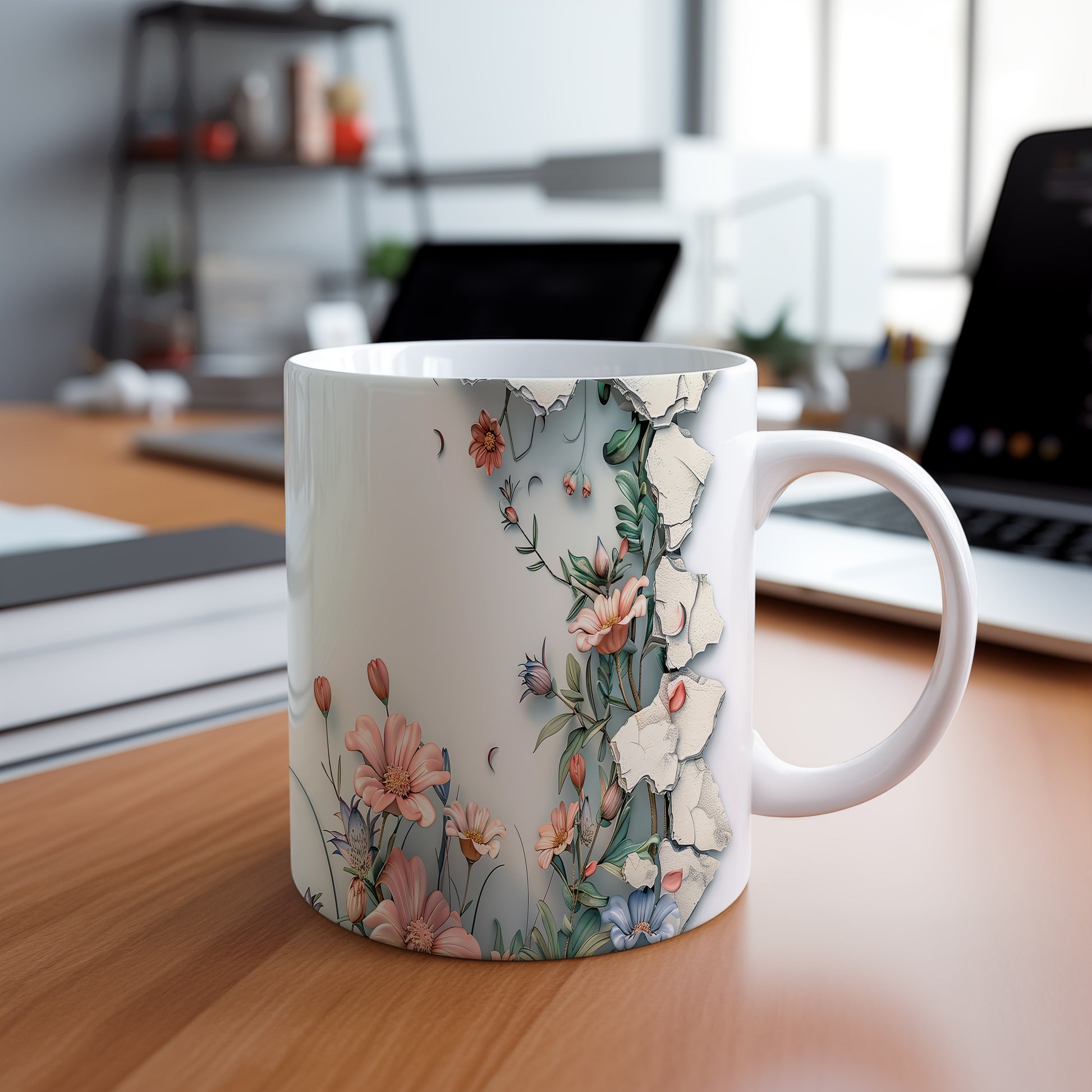 Hrnek s květinovým motivem a 3D efektem – malířským vzhledem