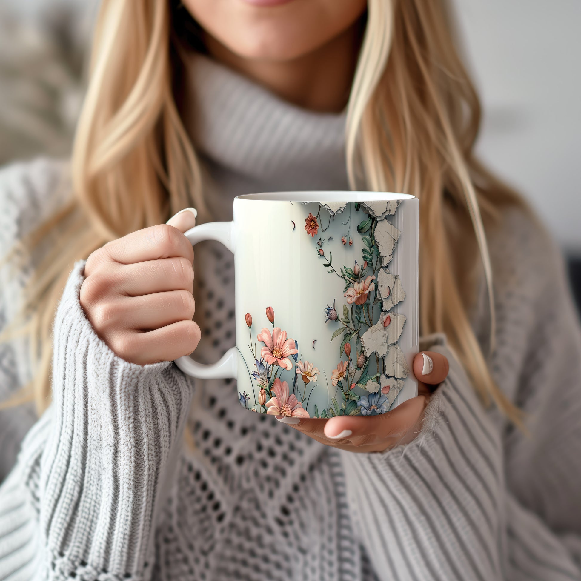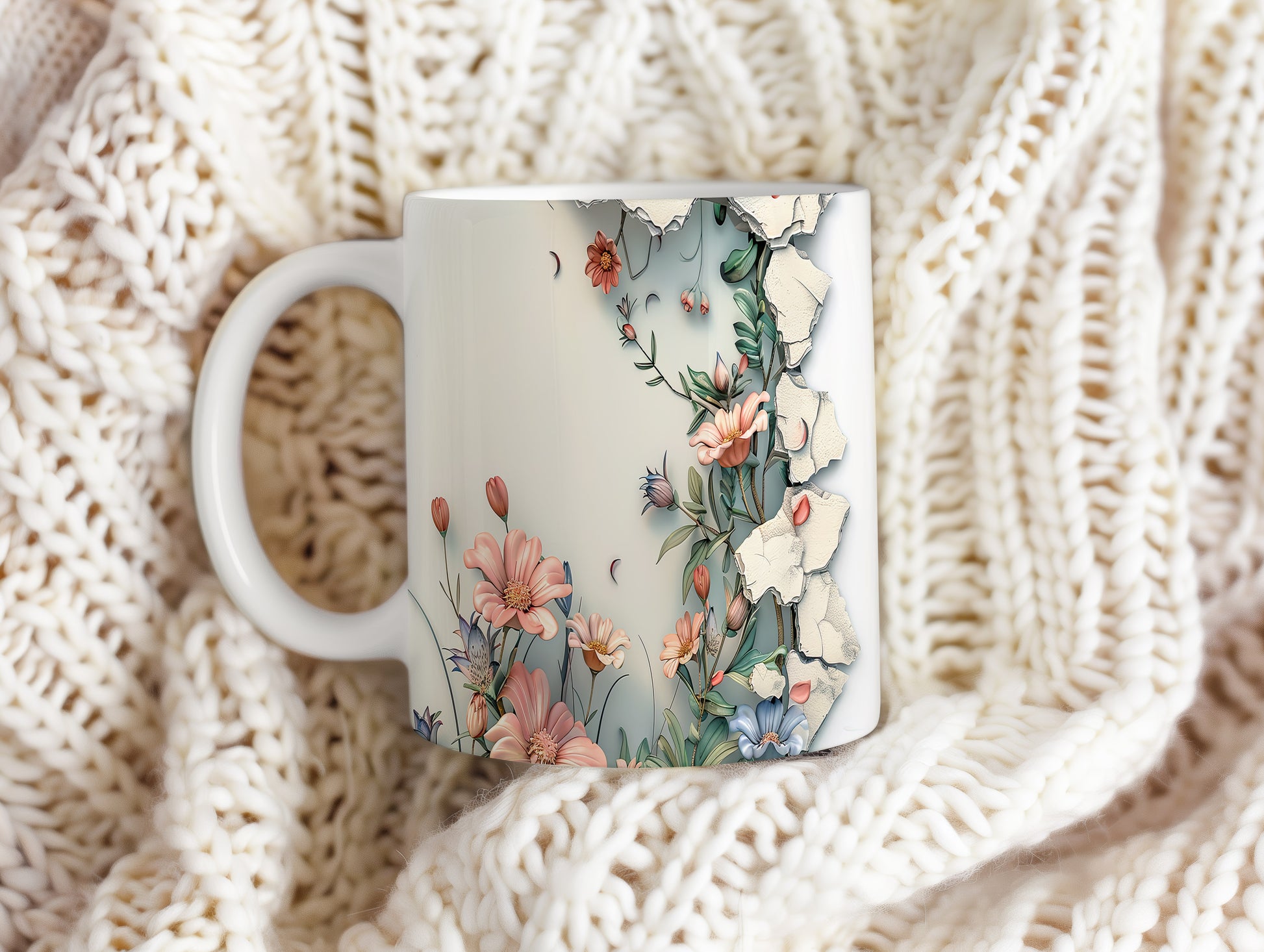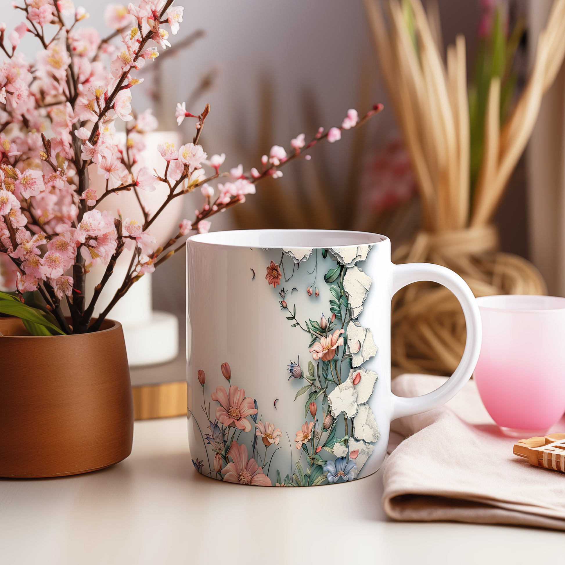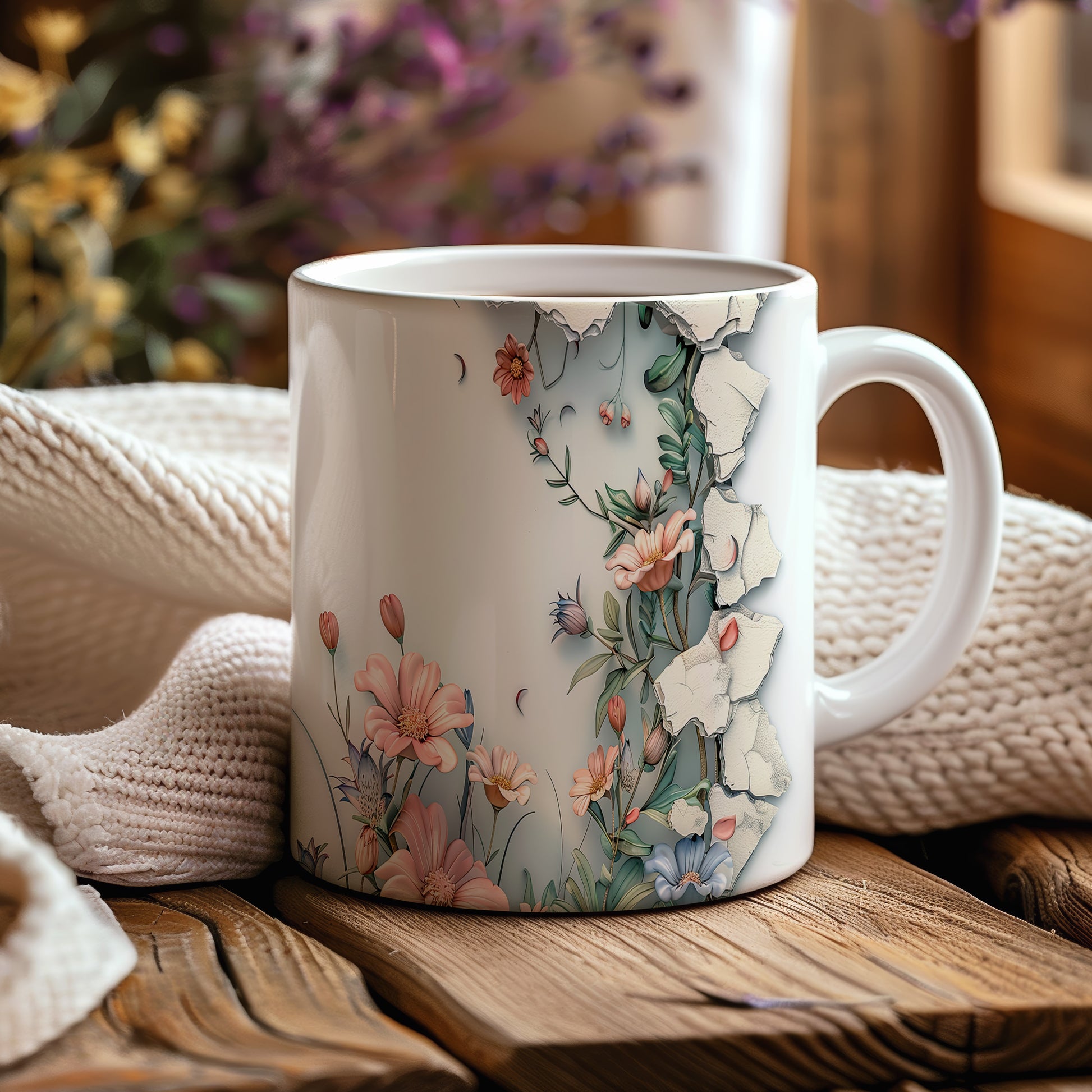 Hrnek s květinovým motivem a 3D efektem – malířským vzhledem