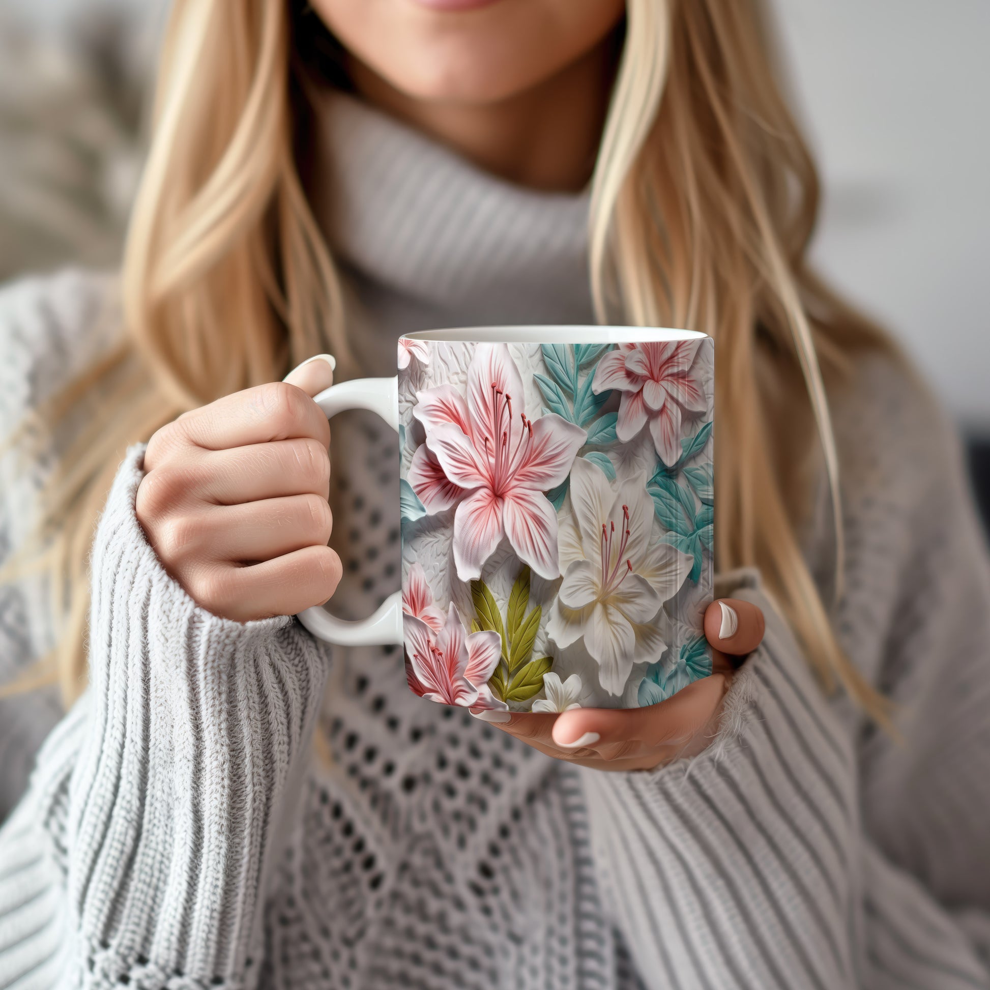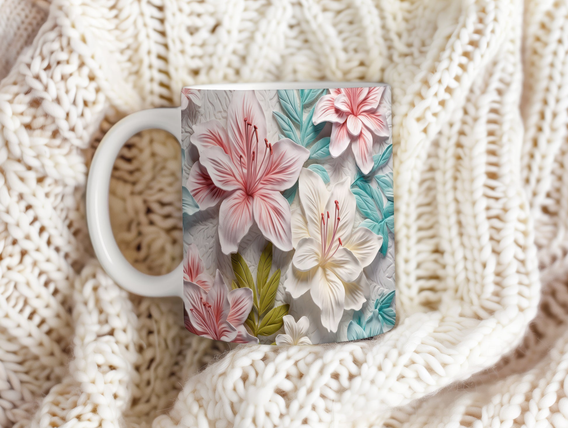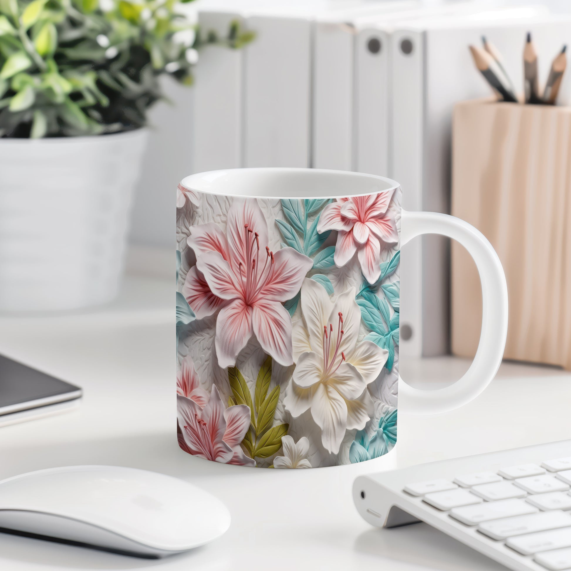 Hrnek s květinovým motivem a 3D efektem – modrými detaily