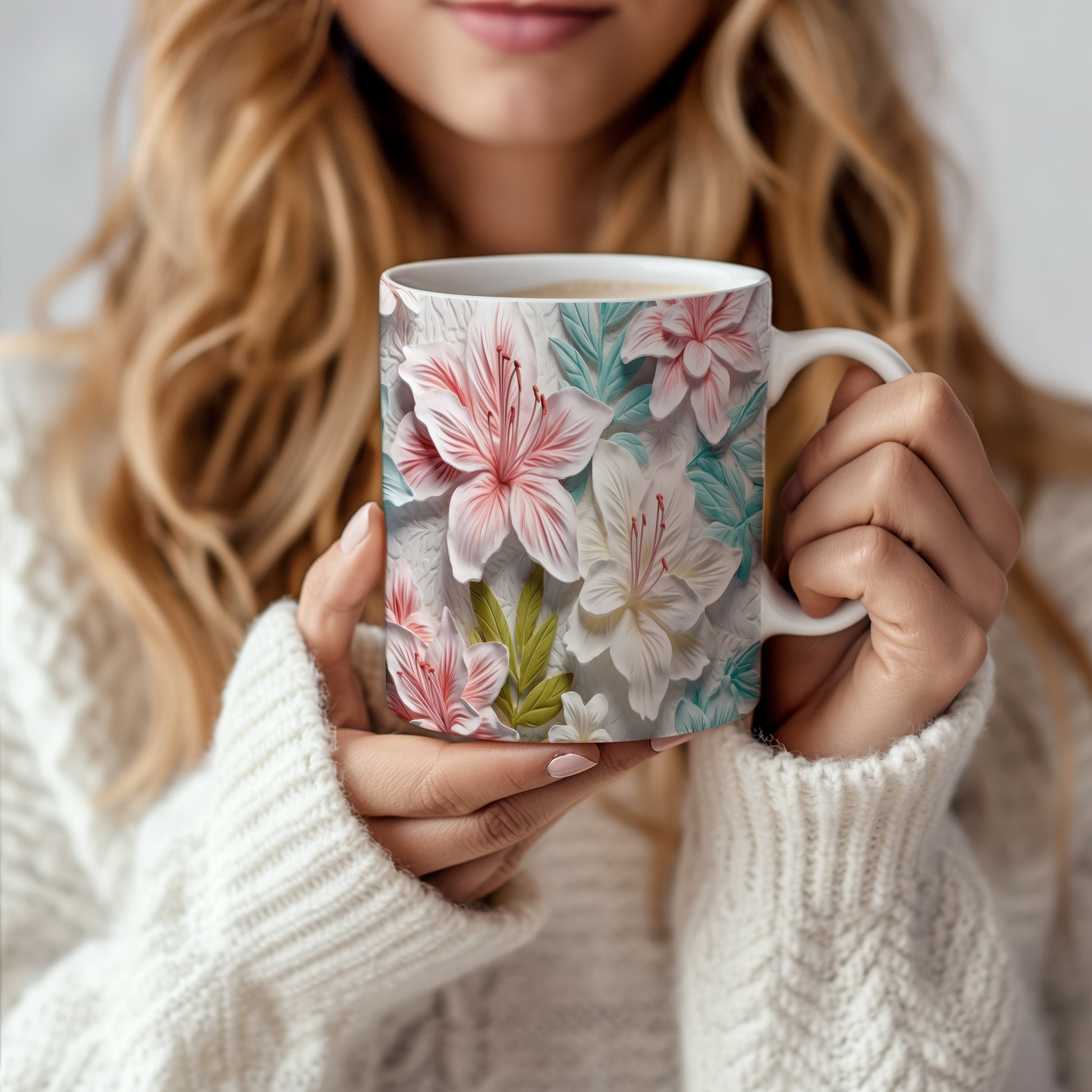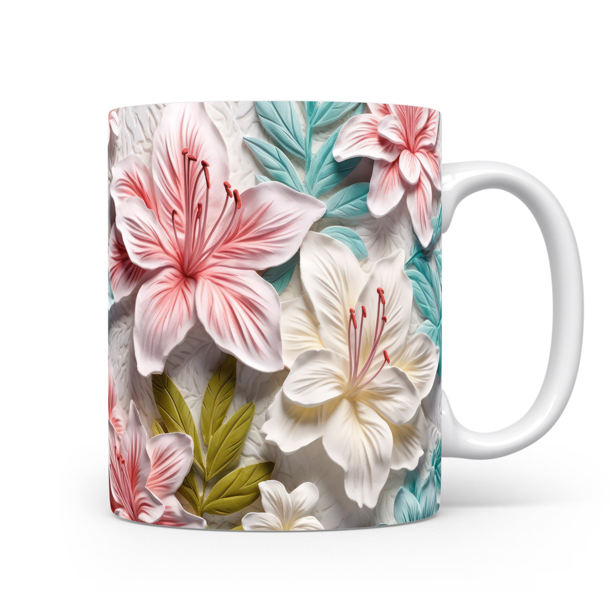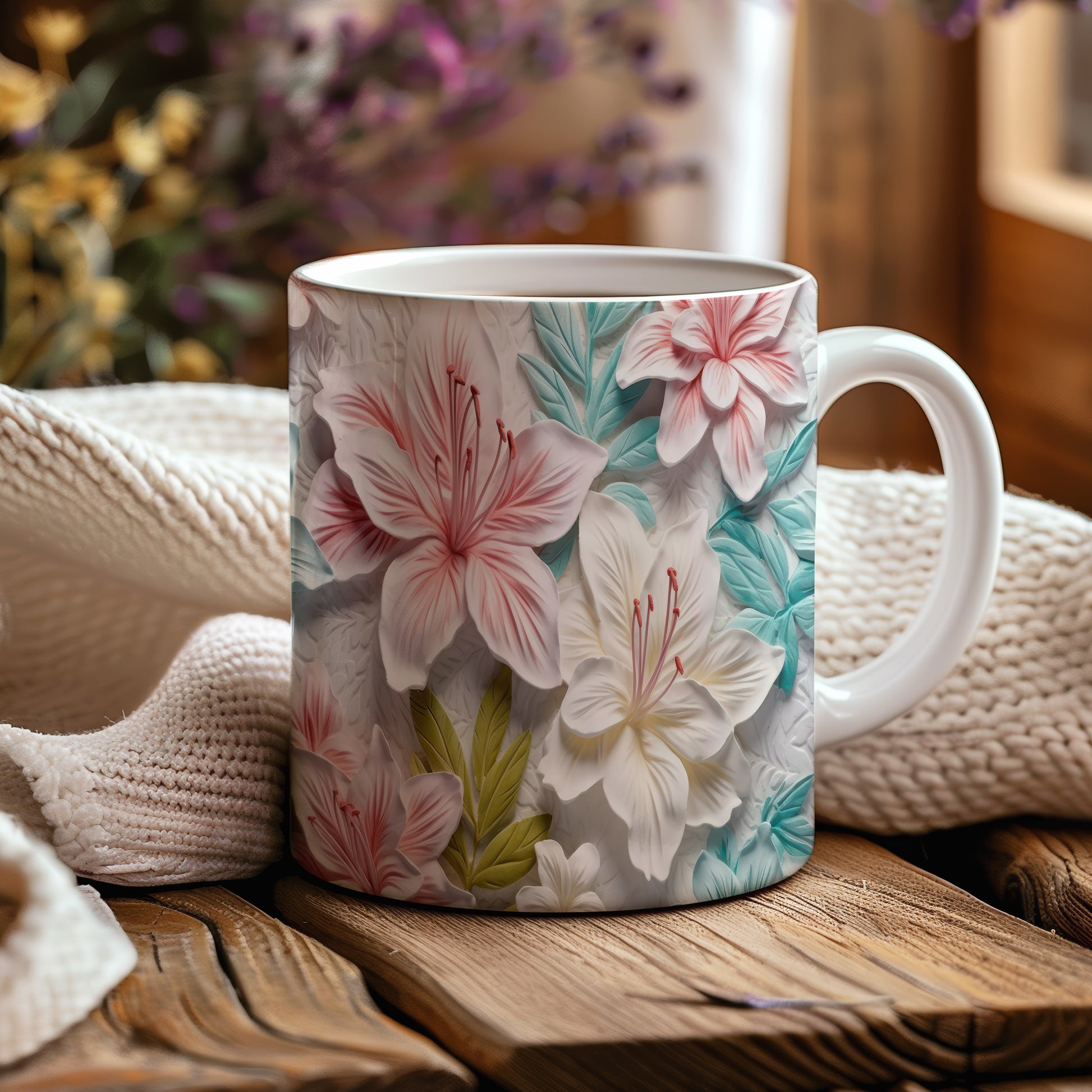 Hrnek s květinovým motivem a 3D efektem – modrými detaily