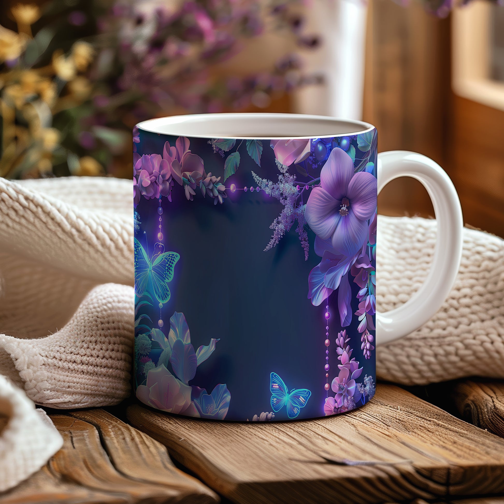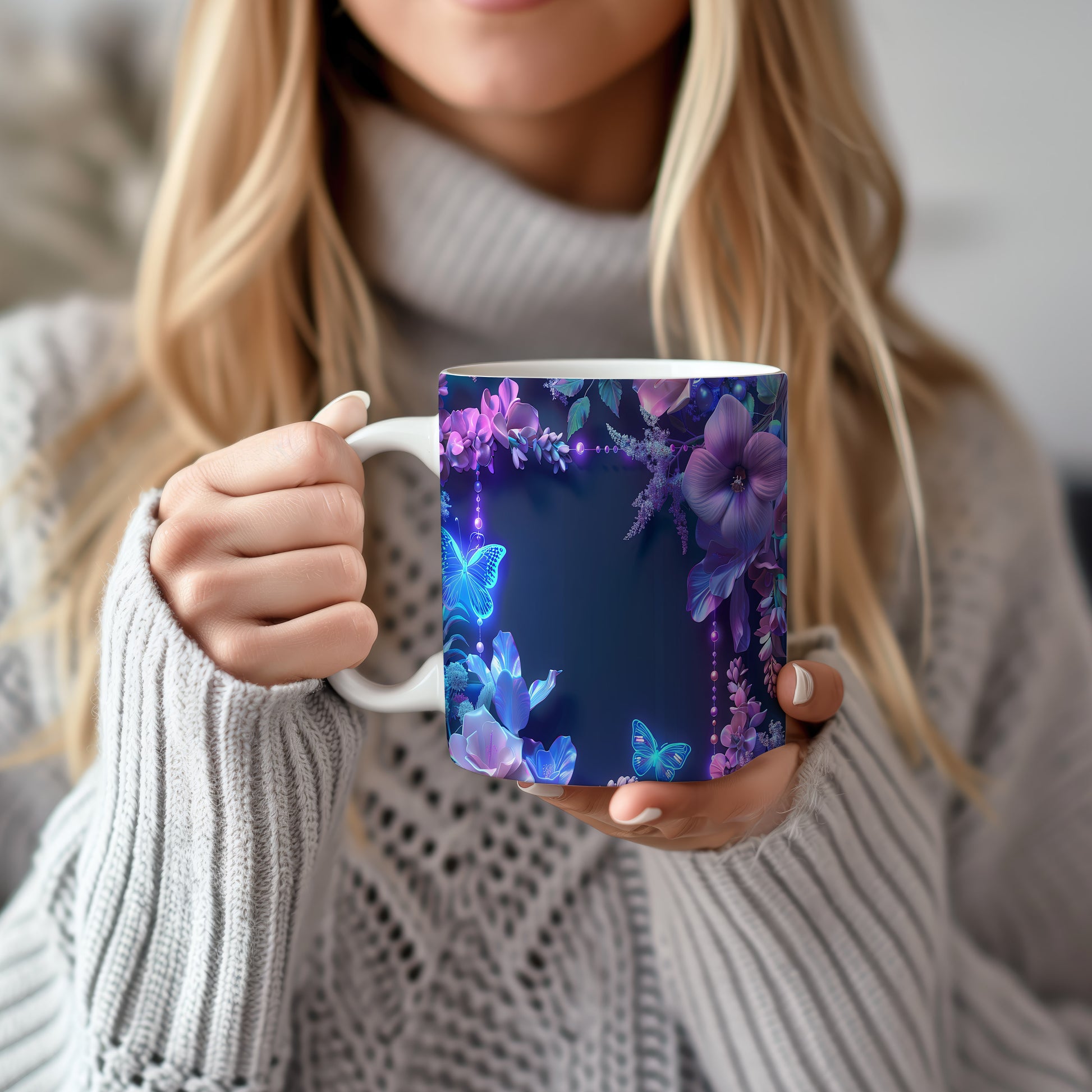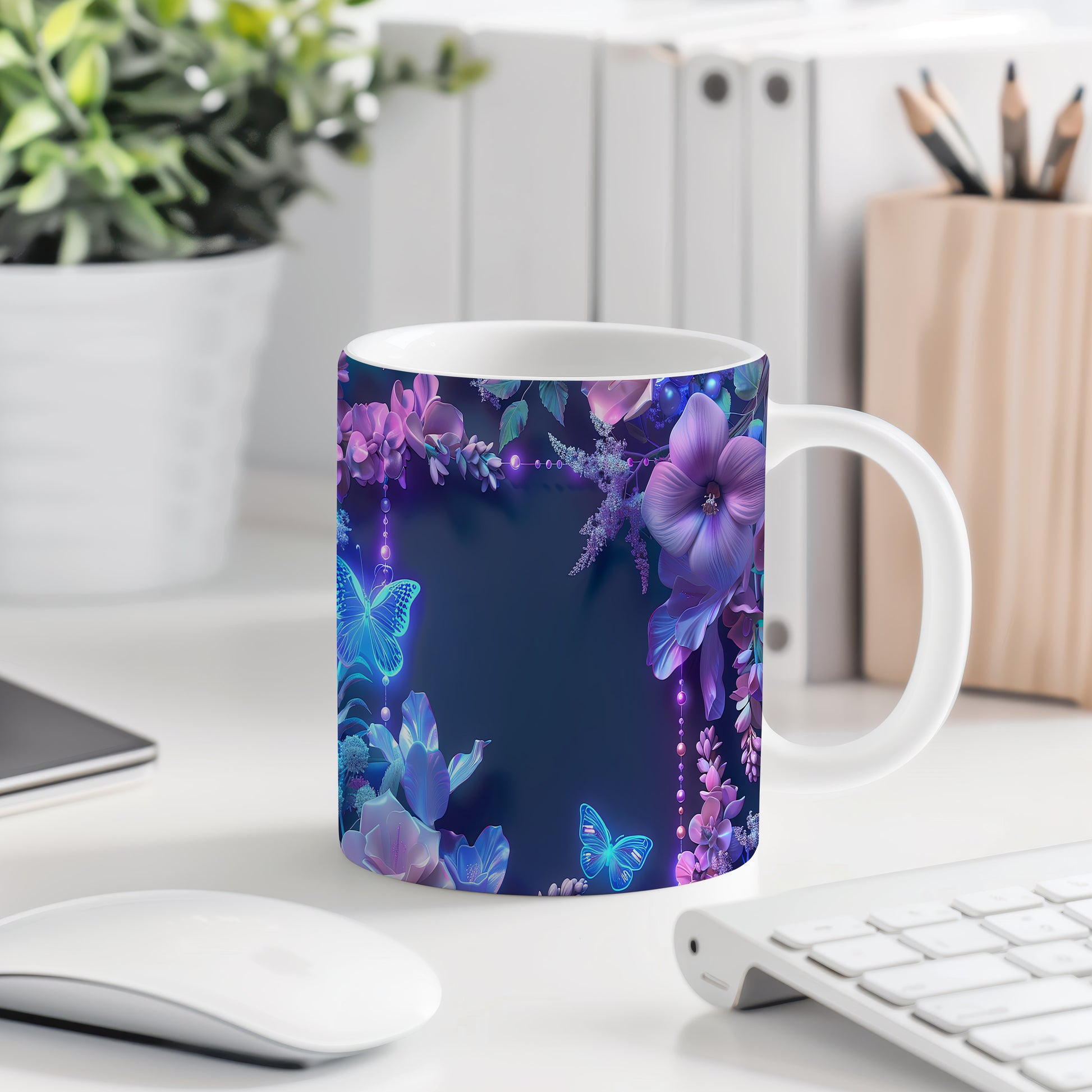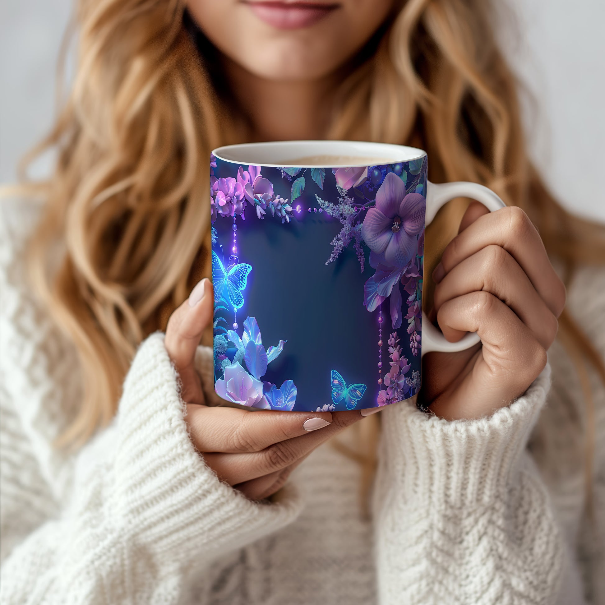 Tento keramický hrnek s květinovým motivem a modrými motýly je ideální pro milovníky přírody a krásných designů. Skvělý tip na dárek pro přátele nebo rodinu, kteří ocení stylové nádobí. Materiál: keramika. Objem: 330 ml. Vhodné do myčky i mikrovlnky. Díky svému elegantnímu vzhledu přinese do každodenního pití radost a pohodu.