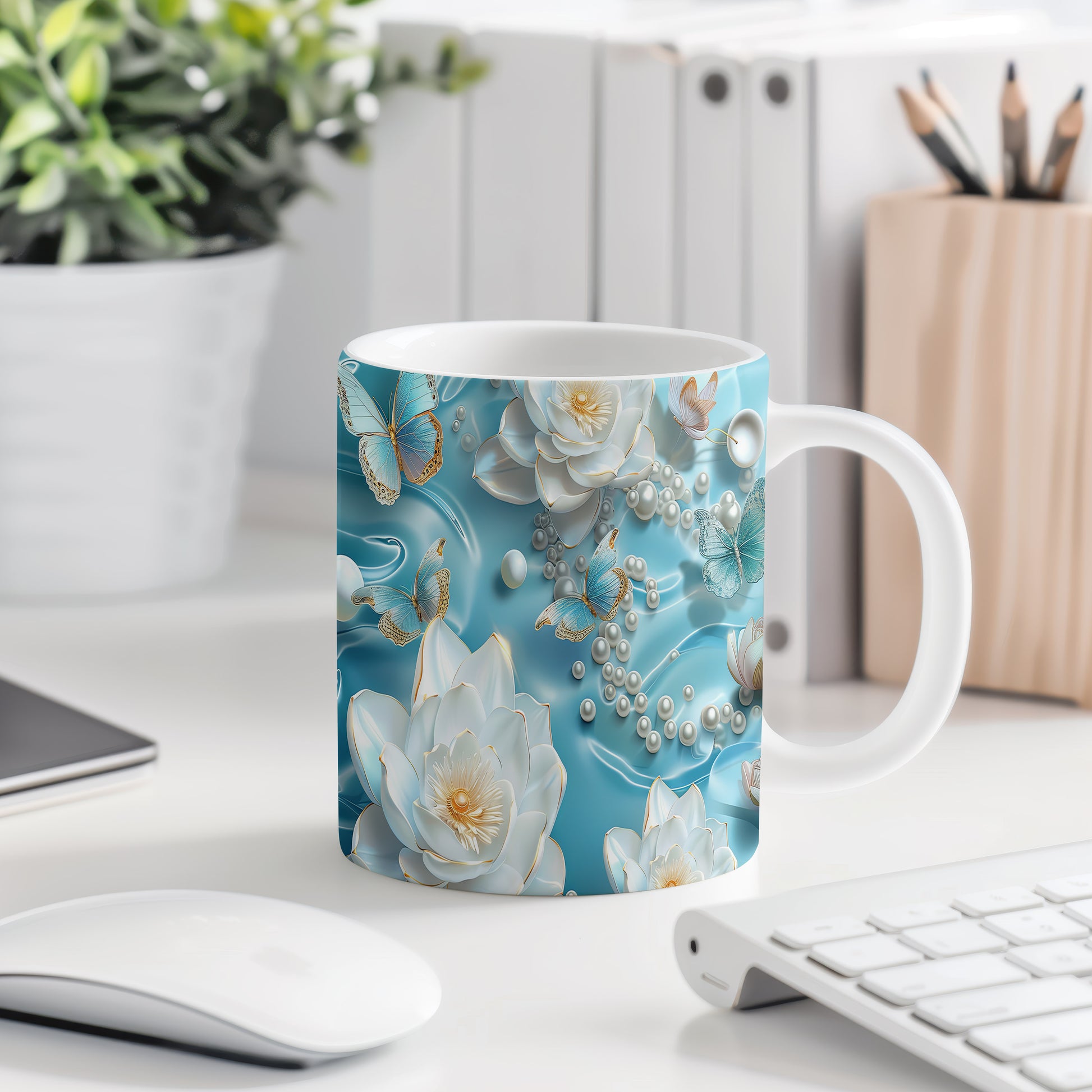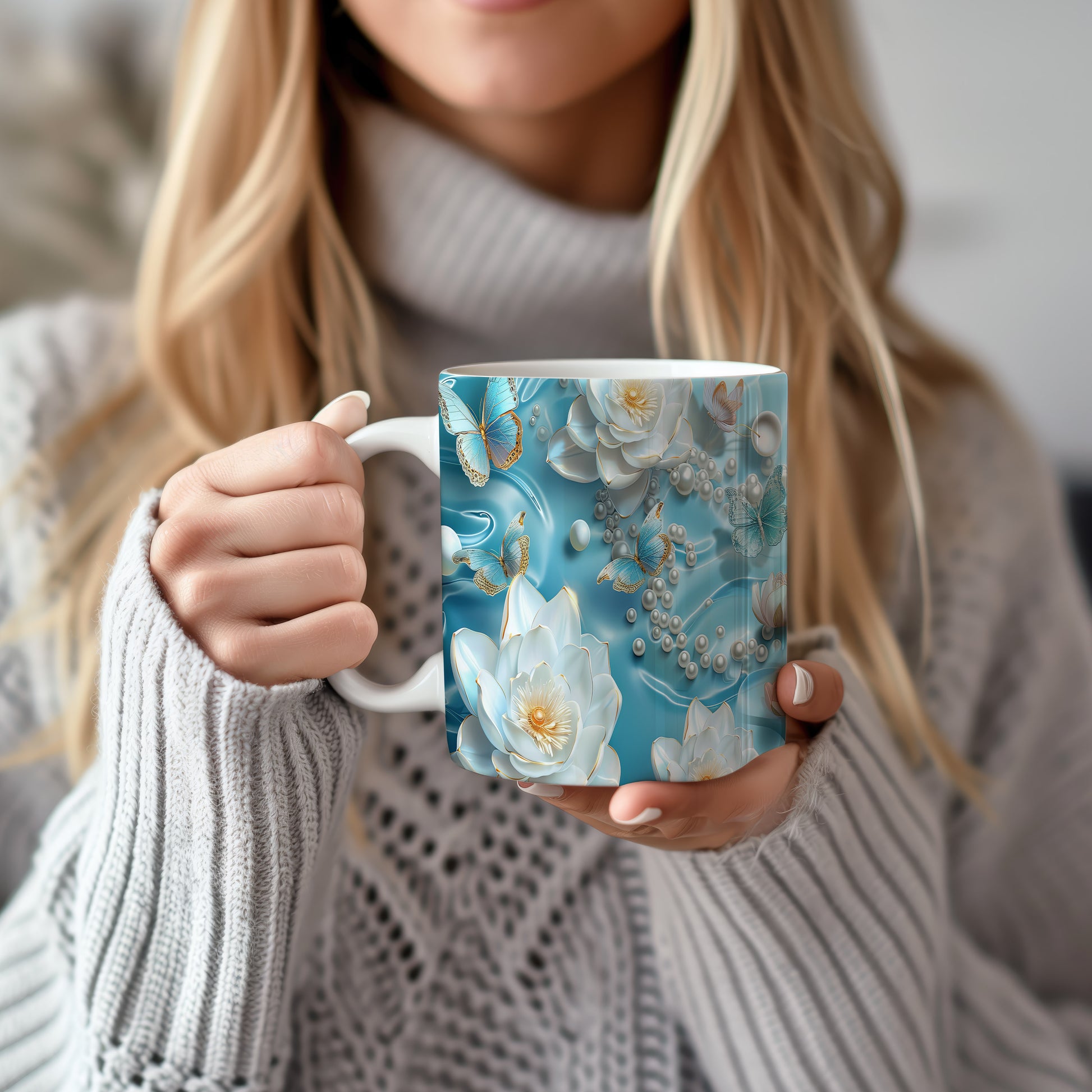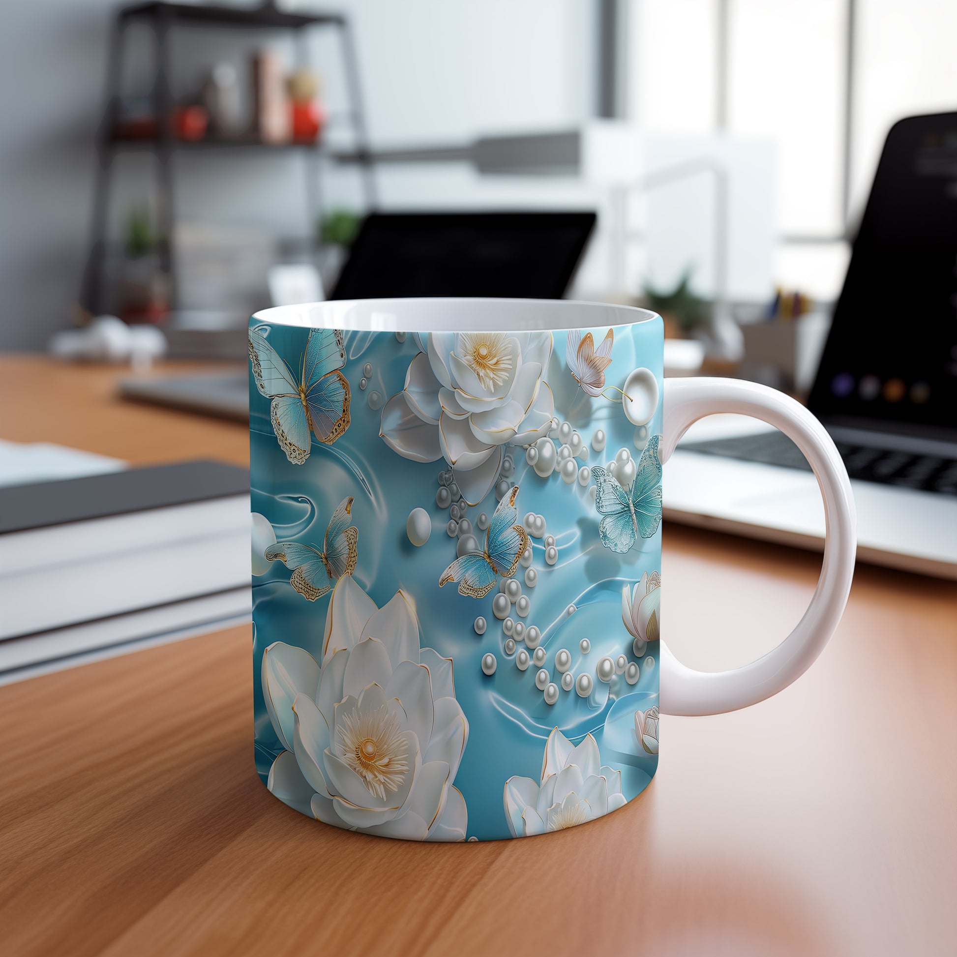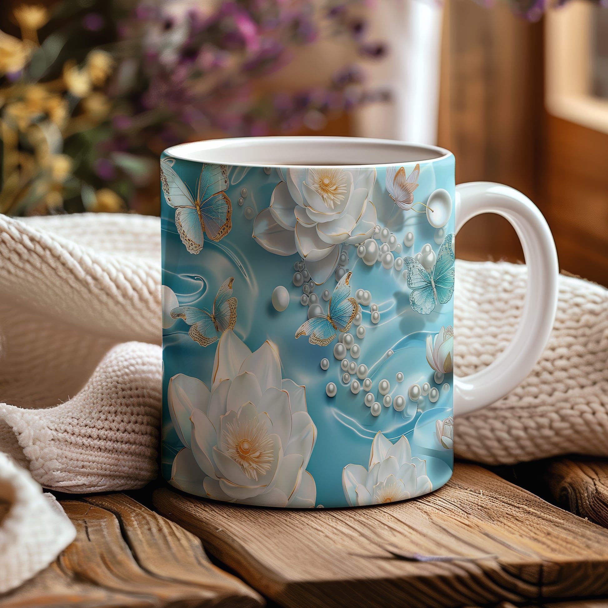 Tento elegantní hrnek s květinovým motivem a modrými motýly je skvělou volbou pro milovníky přírody. Je ideální jako dárek pro přátele nebo rodinu, kteří ocení krásu a jemnost designu. Materiál: keramika. Objem: 330 ml. Vhodné do myčky i mikrovlnky. Užijte si svůj oblíbený nápoj v hrnku, který přináší radost a pohodu.