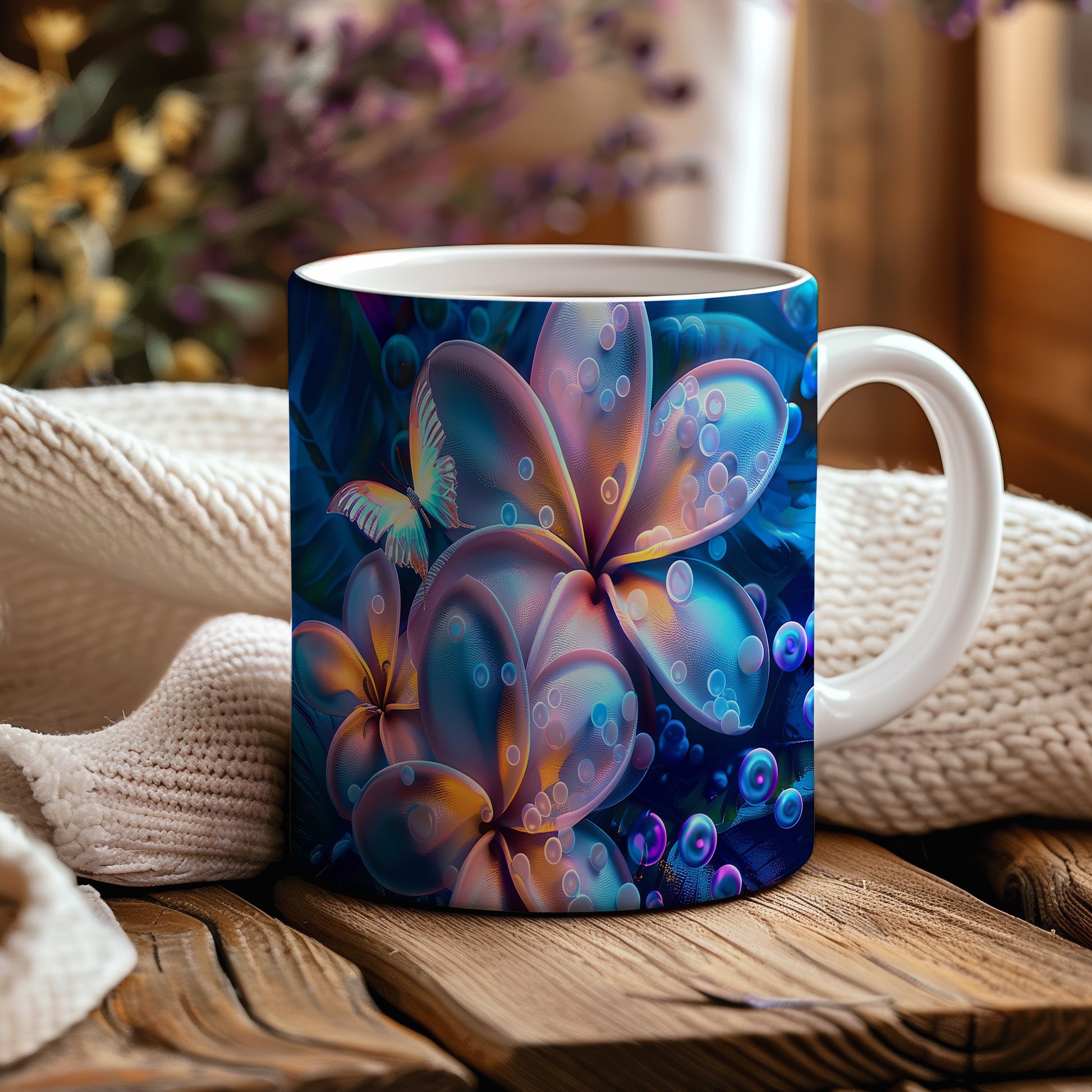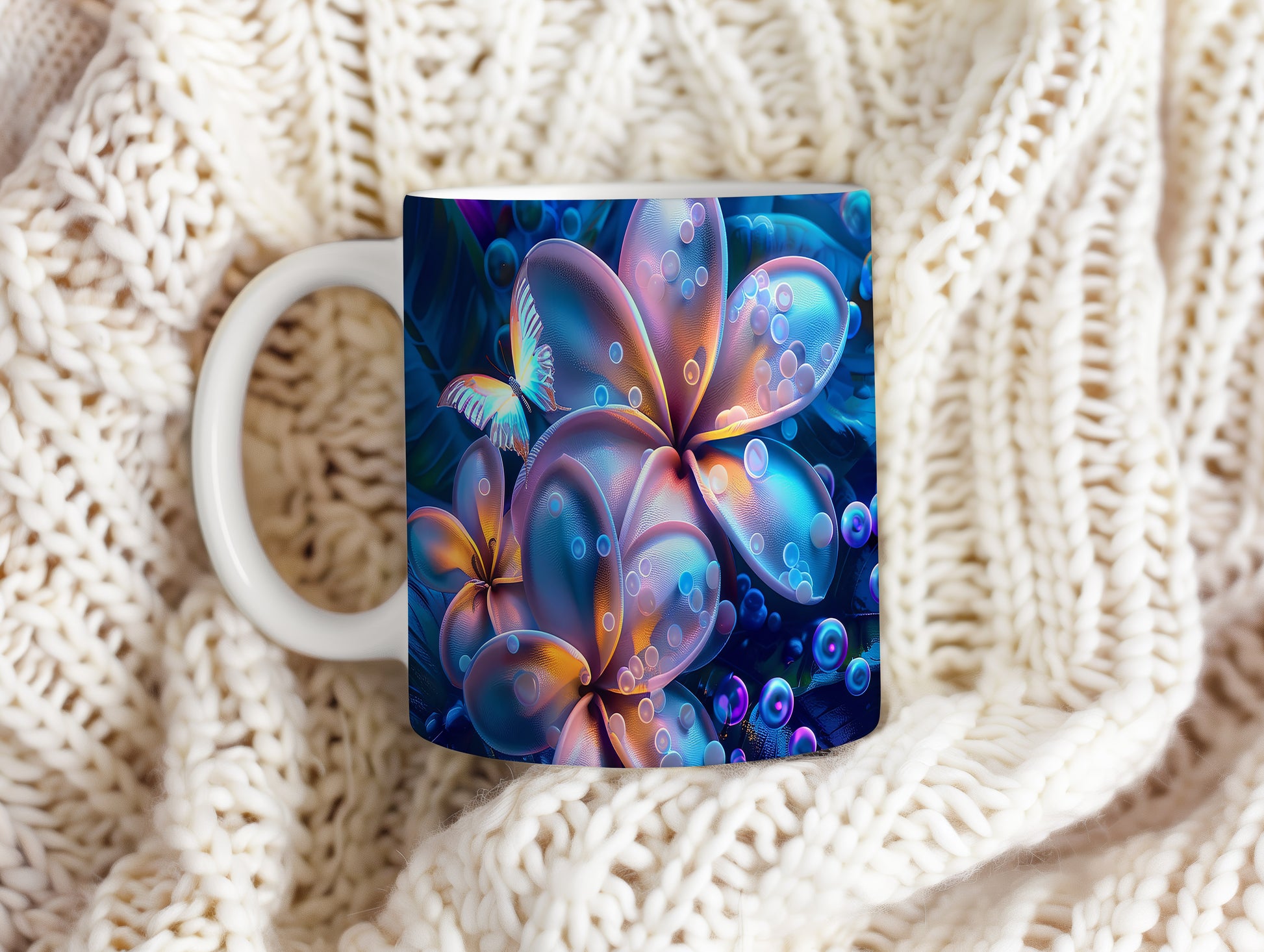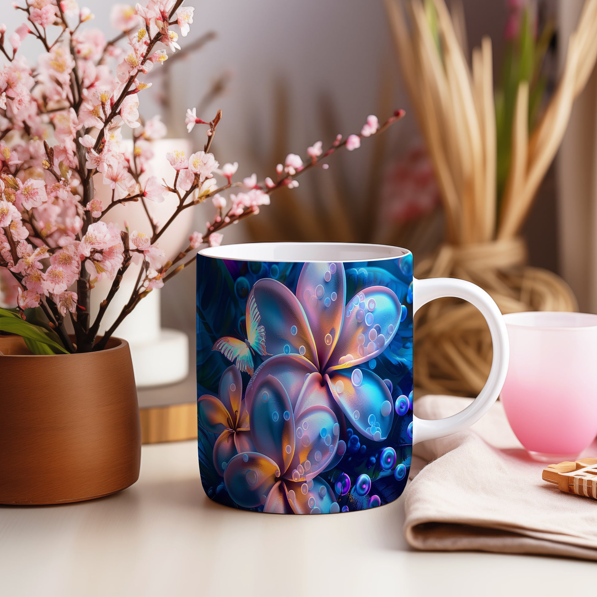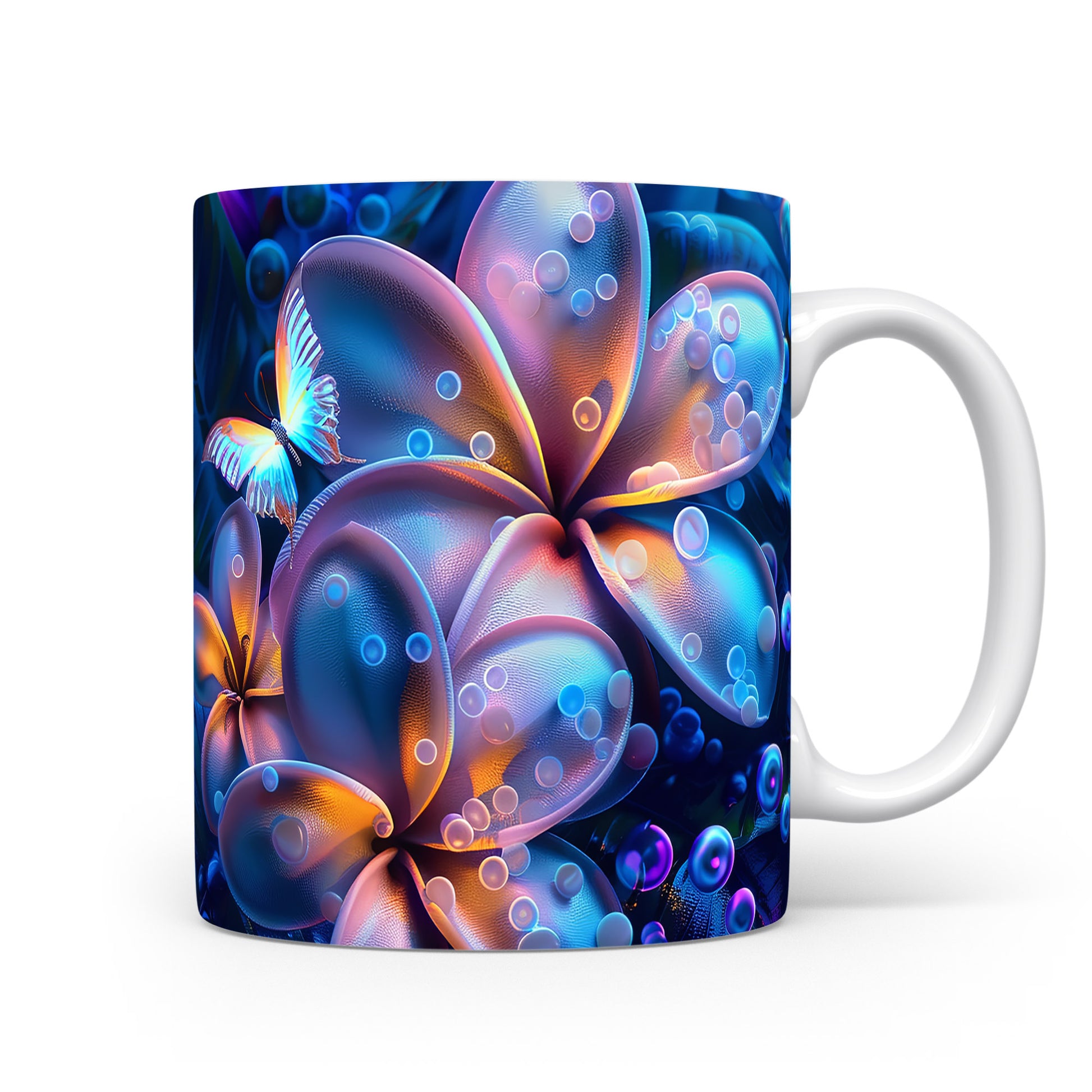 Hrnek s květinovým motivem a motýlem – 3D efektem