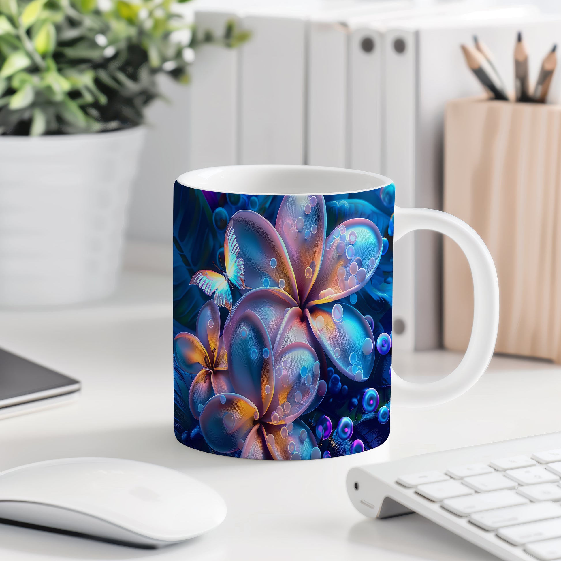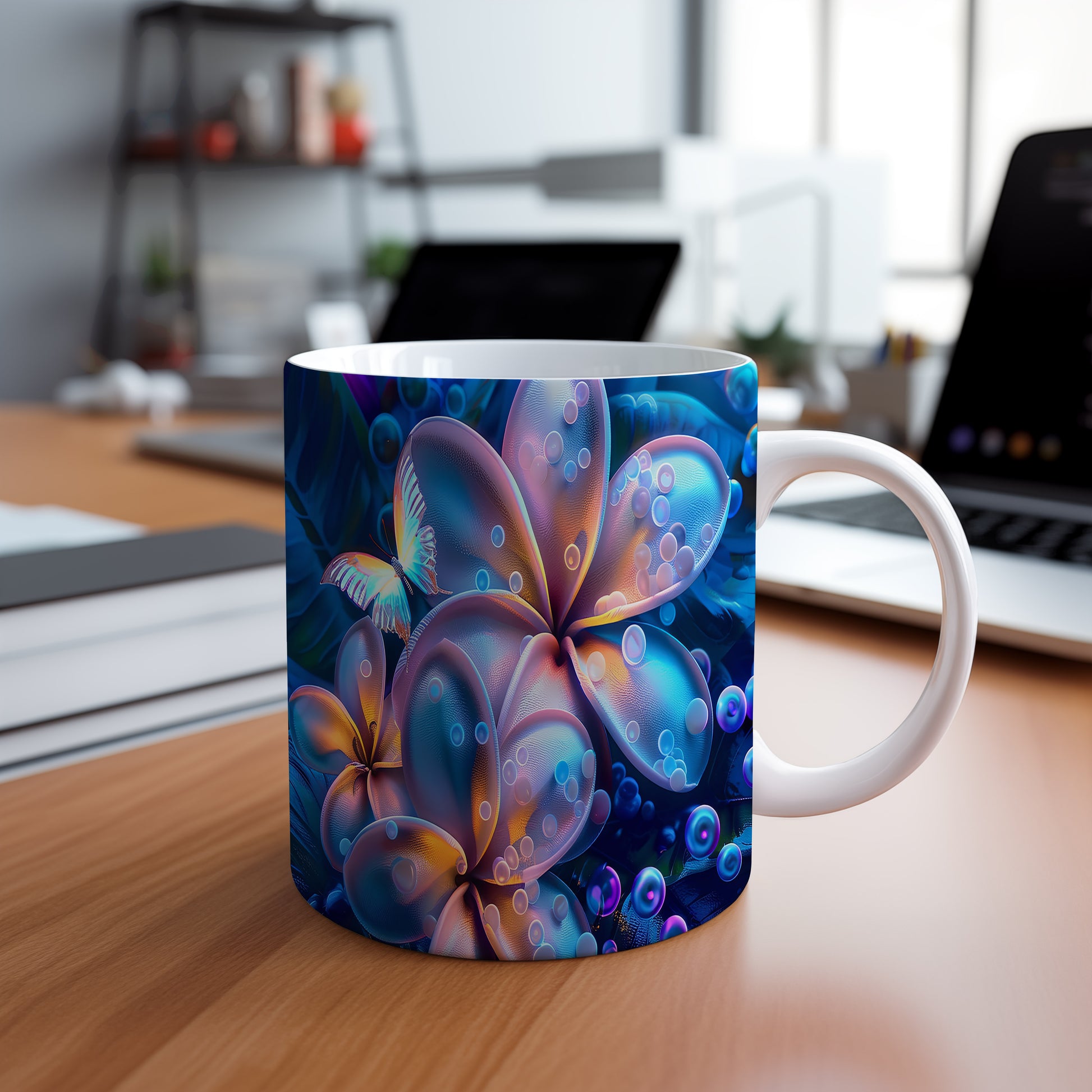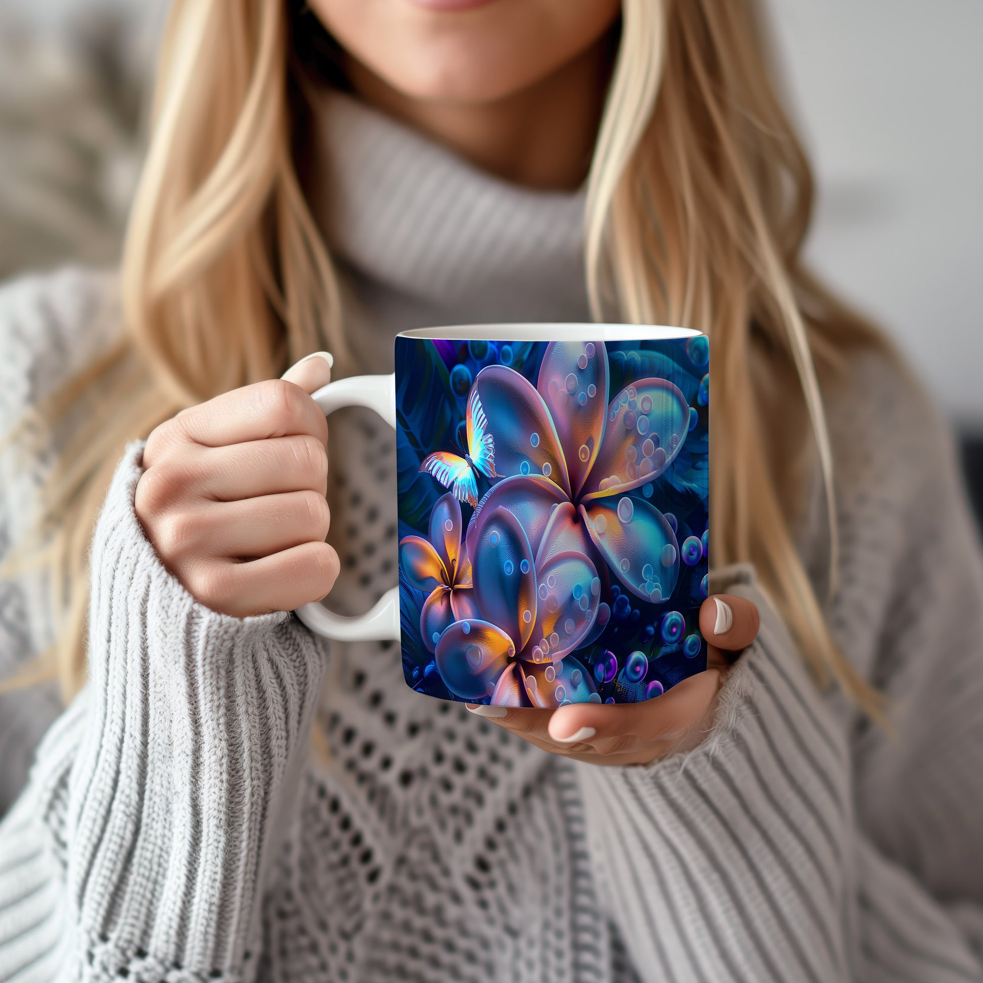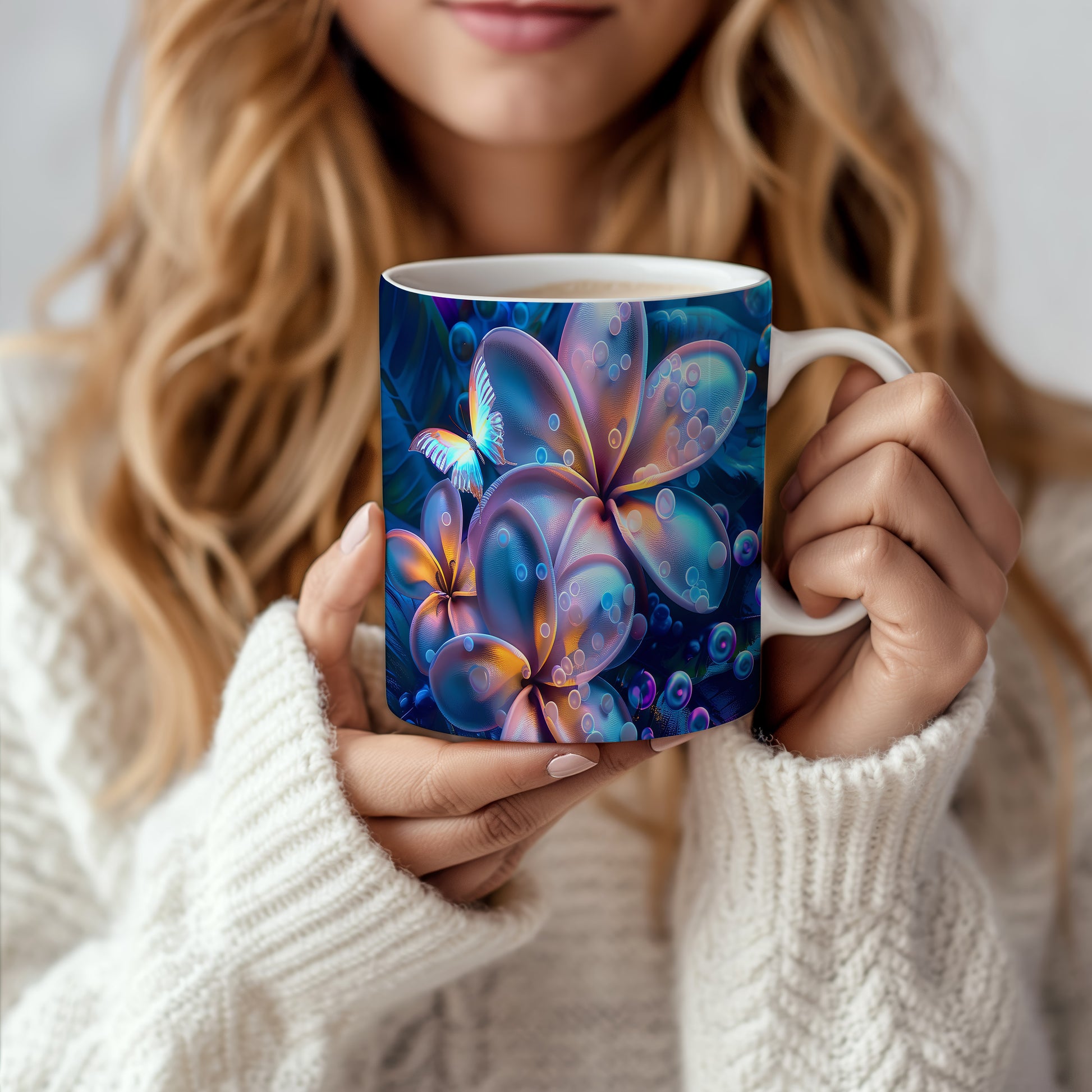 Hrnek s květinovým motivem a motýlem – 3D efektem