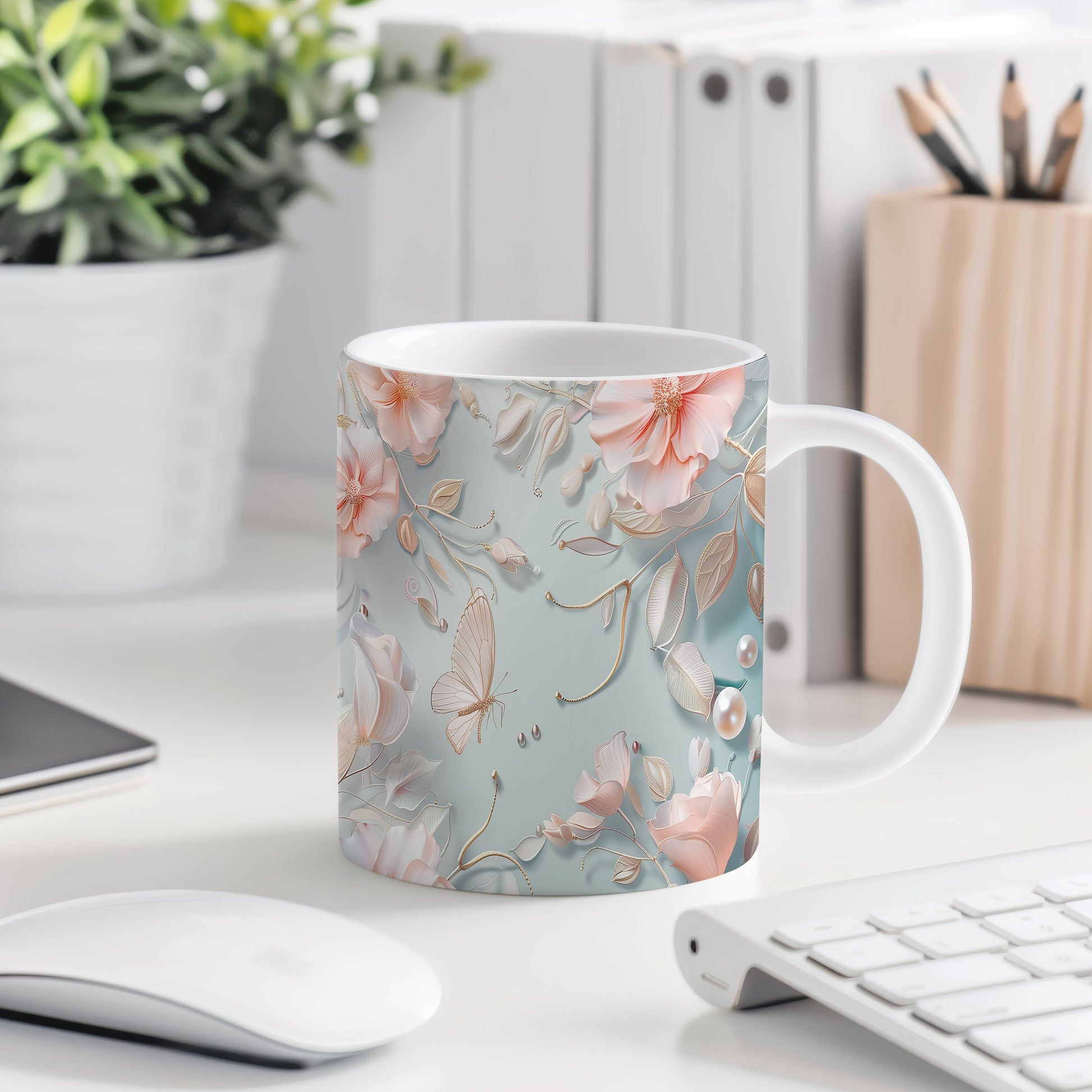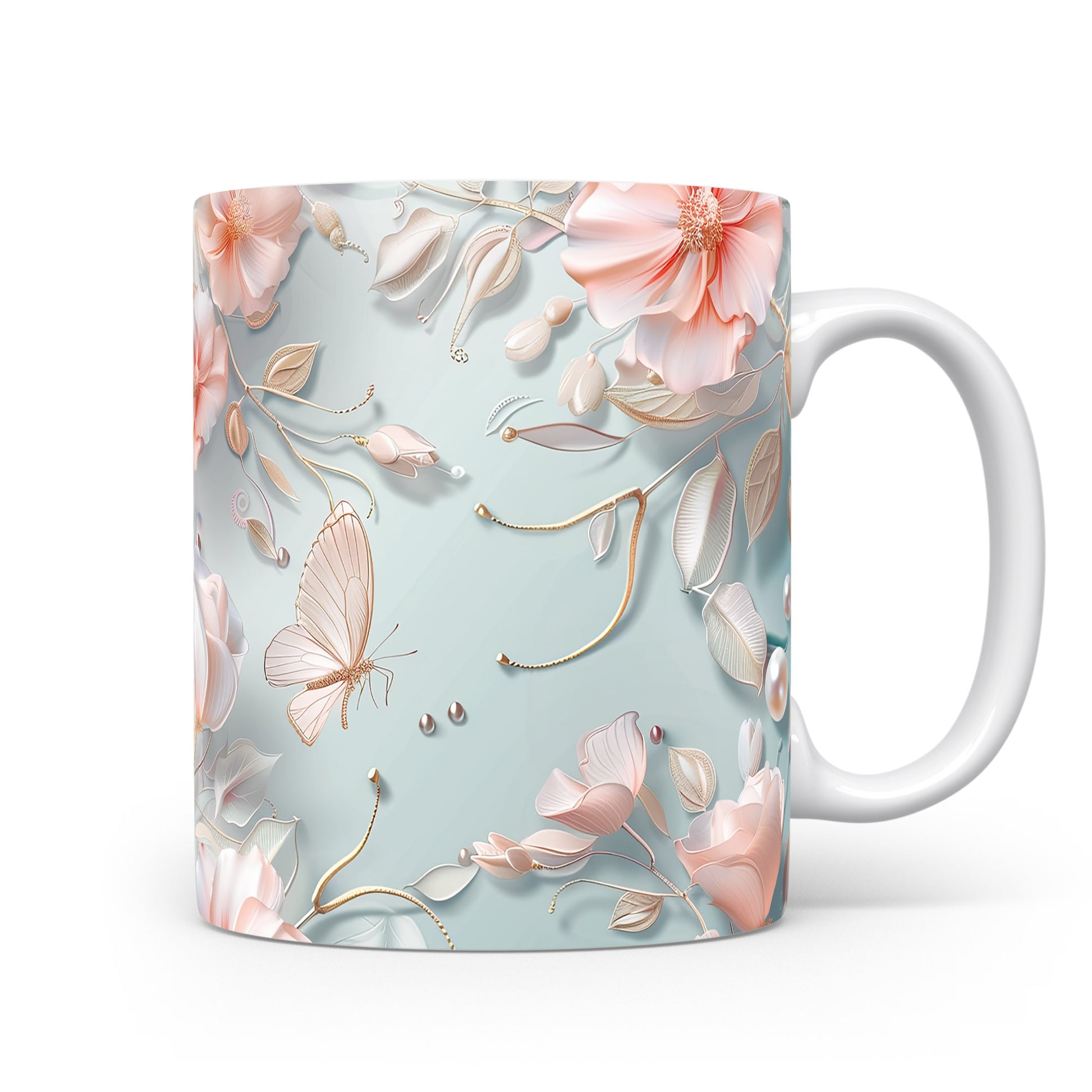 Tento elegantní hrnek zdobí jemný květinový motiv a skvostný motýl. Je ideální pro milovníky přírody a skvělým dárkem pro ženy. Materiál: keramika. Objem: 330 ml. Vhodné do myčky i mikrovlnky. Díky svému designu přináší do každodenního pití radost a pohodu.