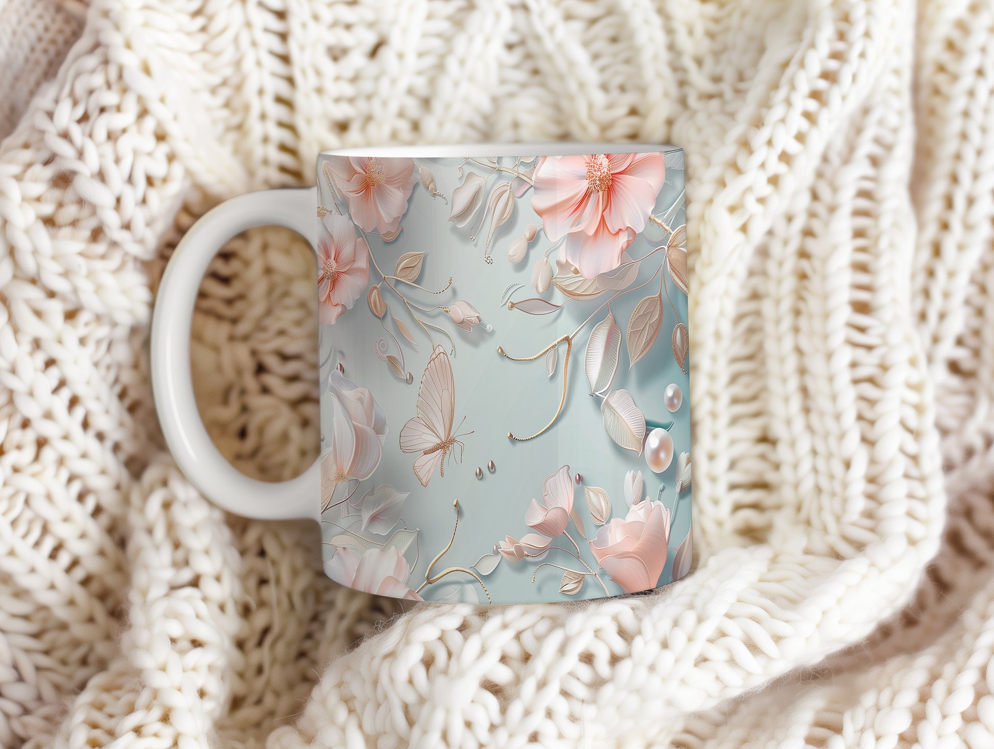 Hrnek s květinovým motivem a motýlem – originálním motivem