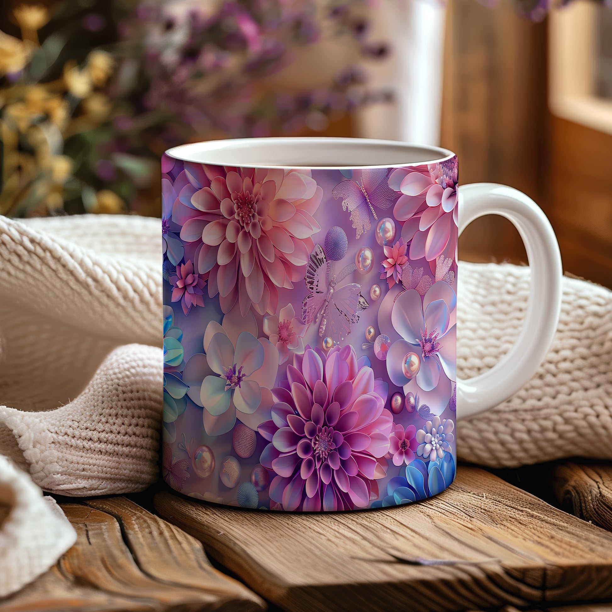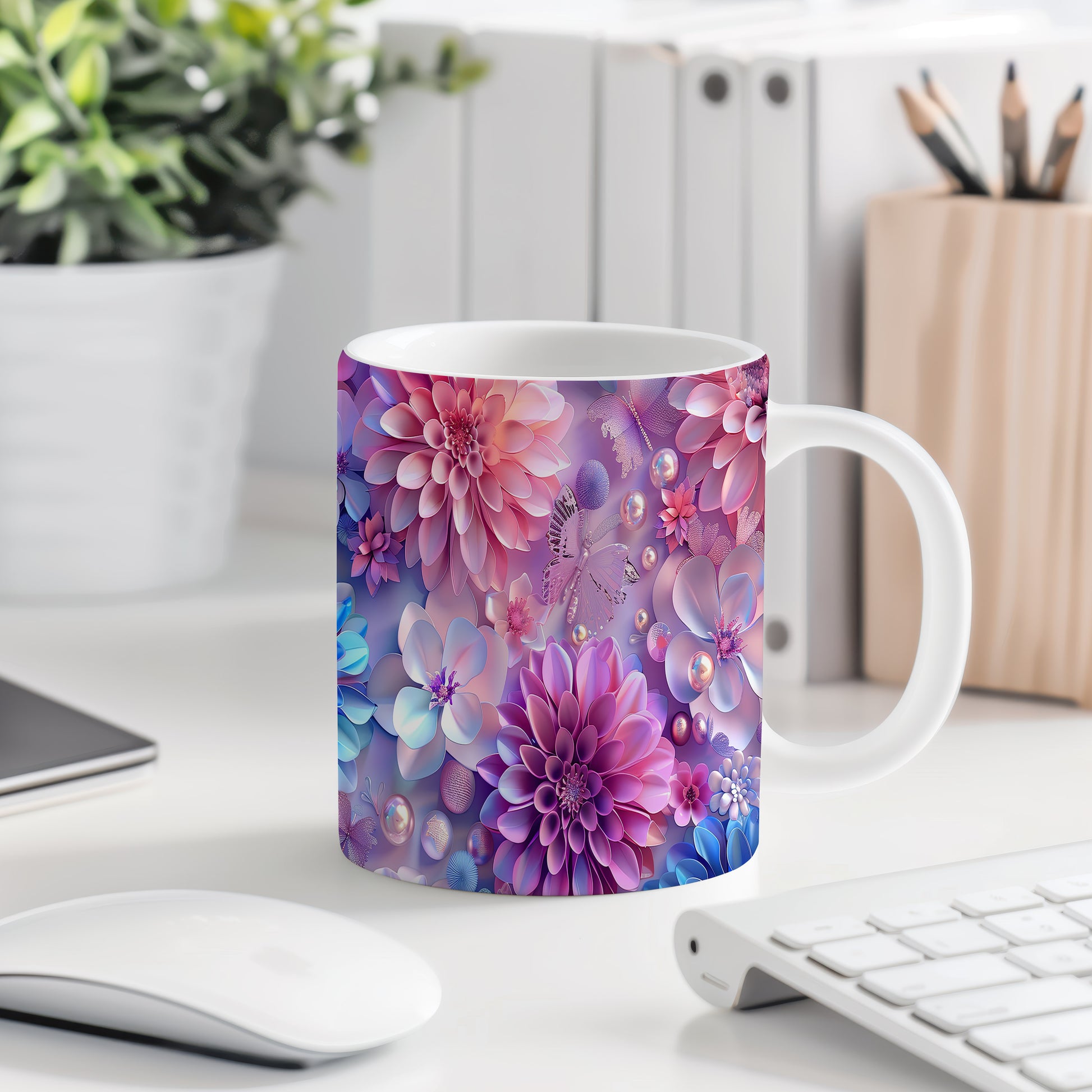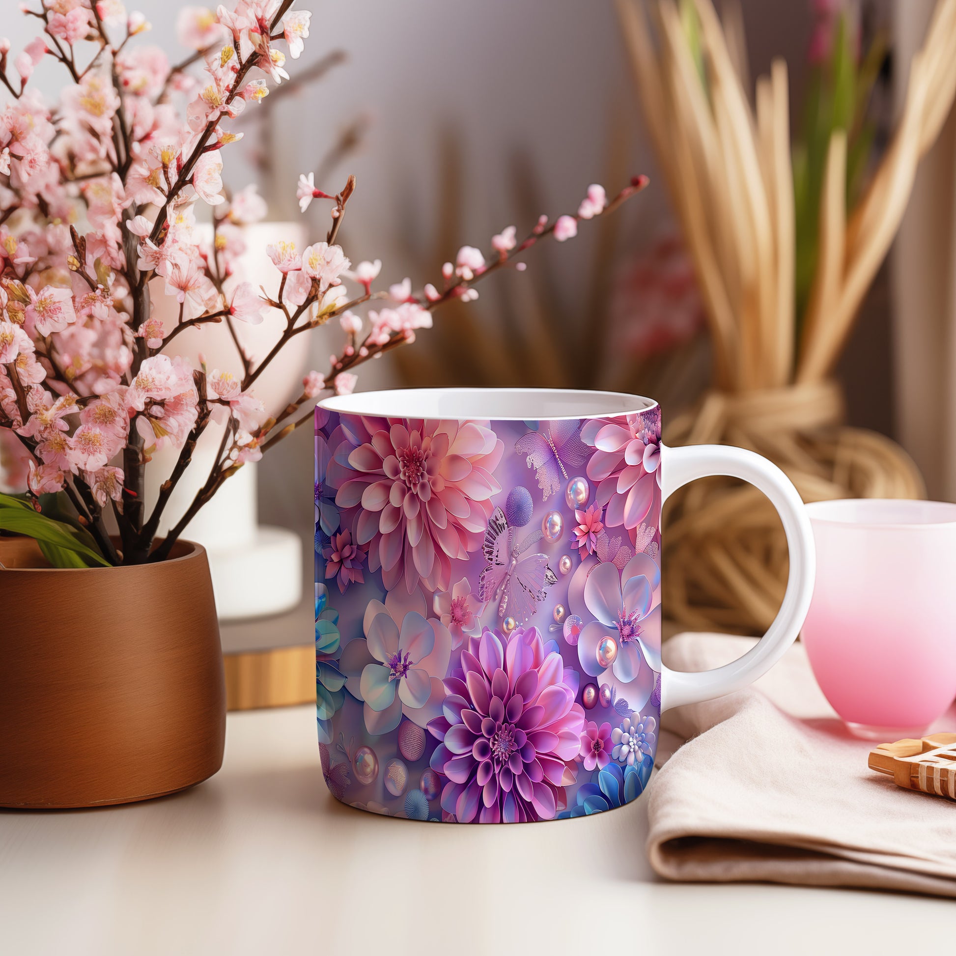 Tento keramický hrnek s květinovým motivem a motýlkem přináší do vašeho dne kousek přírody. Je ideální pro milovníky květin a přírody, skvělý tip na dárek pro blízké. Materiál: keramika. Objem: 330 ml. Vhodné do myčky i mikrovlnky. Užijte si svůj oblíbený nápoj s tímto stylovým hrnkem, který potěší oko i duši.