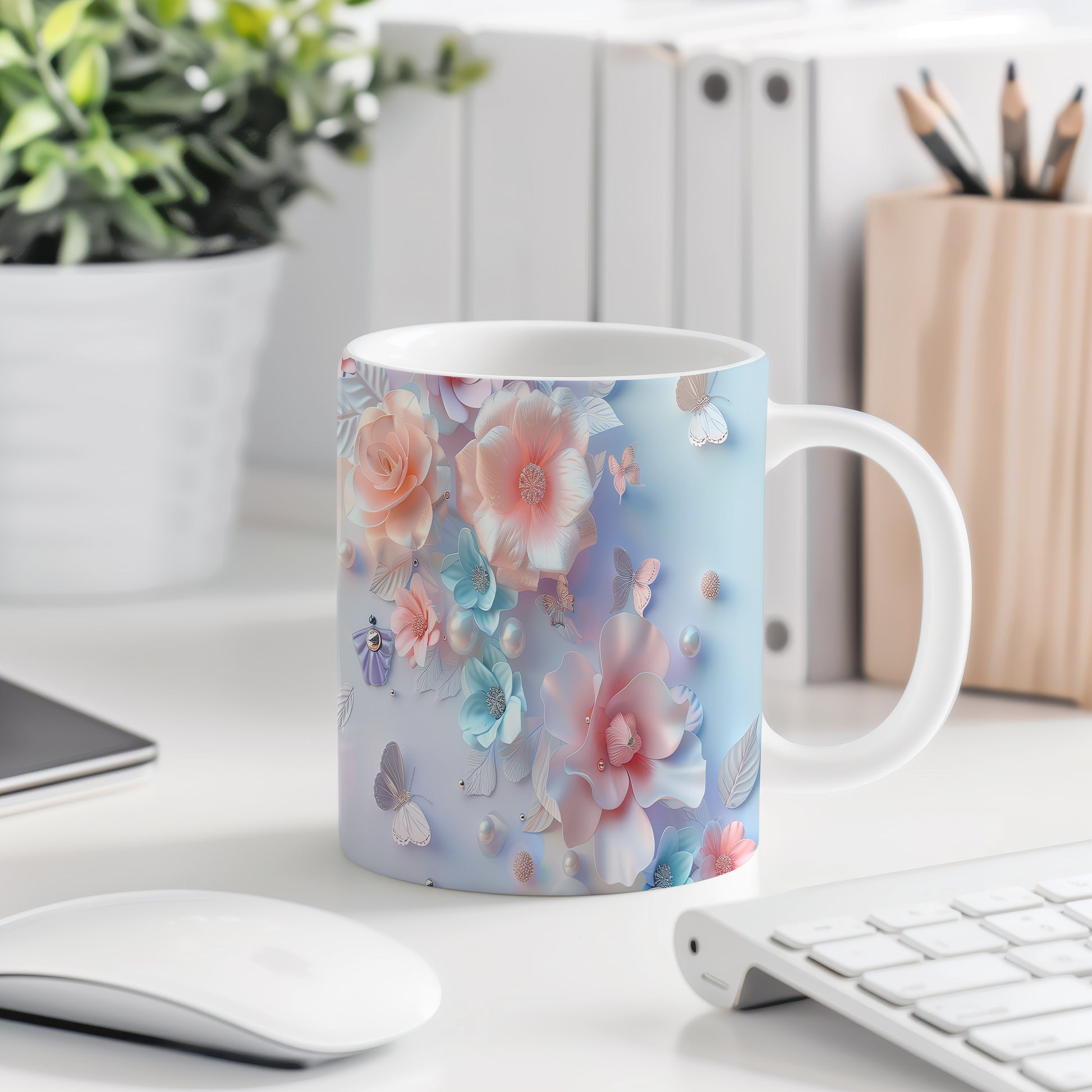 Elegantní hrnek s barevným květinovým designem a jemnými motýlky. Tento hrnek je ideální pro každodenní užívání a skvělým dárkem pro milovníky přírody. Materiál: keramika. Objem: 330 ml. Vhodné do myčky i mikrovlnky. Díky svému stylovému vzhledu přináší do každého dne radost a pohodu.