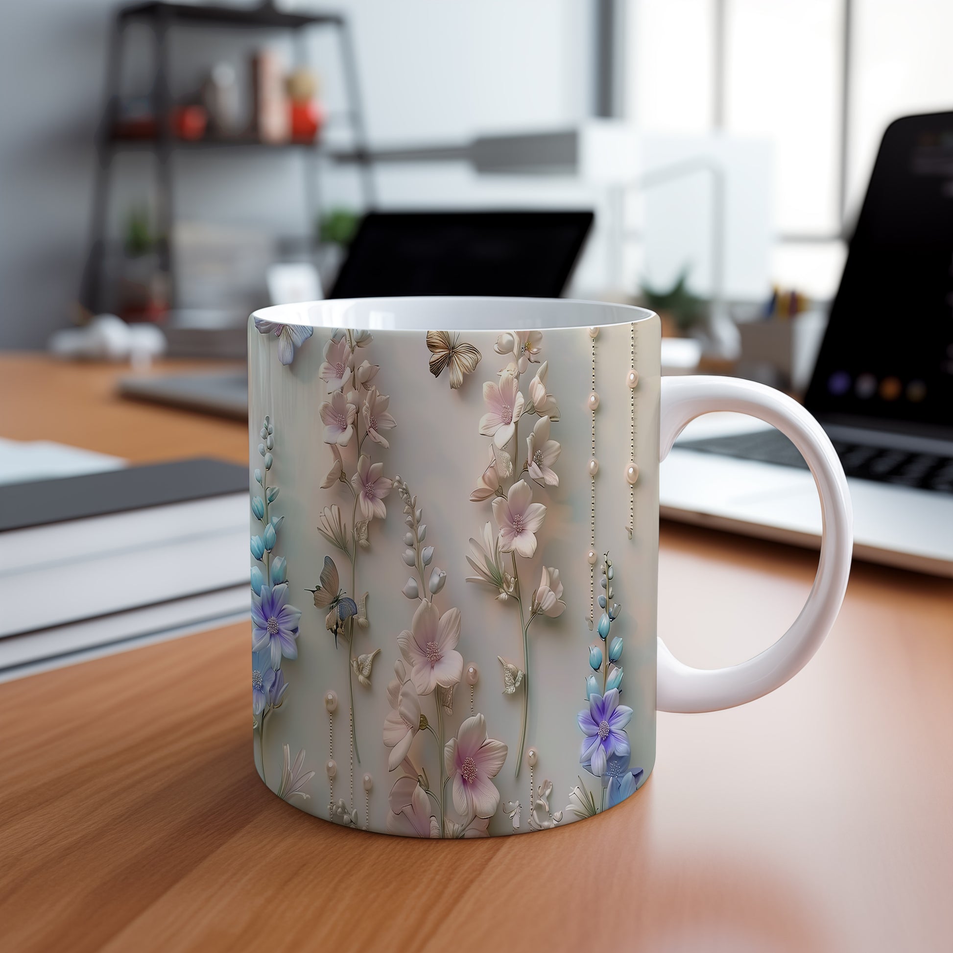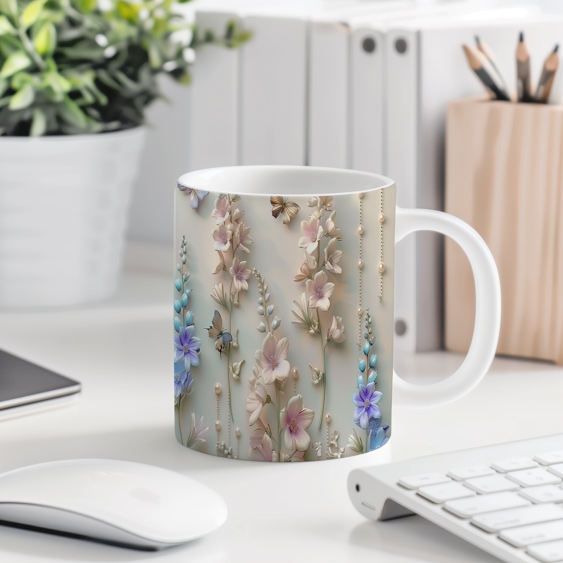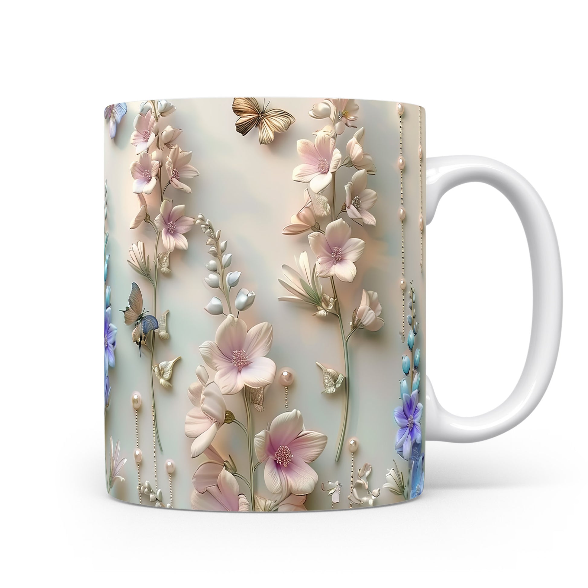 Hrnek s jemným květinovým motivem a motýlky je ideální volbou pro milovníky přírody a romantiky. Tento elegantní kousek potěší každého, kdo hledá originální dárek pro blízké. Materiál: keramika. Objem: 330 ml. Vhodné do myčky i mikrovlnky. Díky svému designu přináší do každodenního pití radost a pohodu.