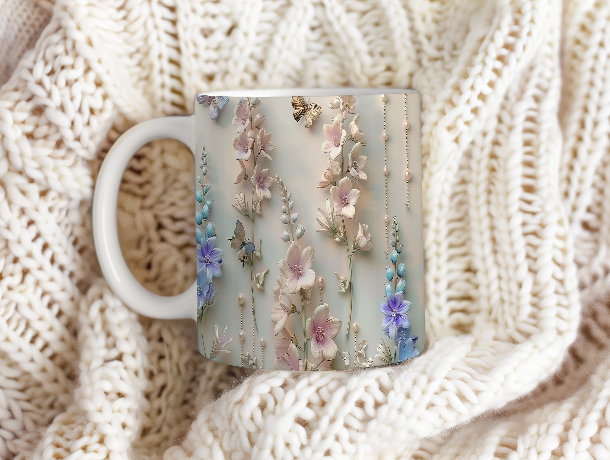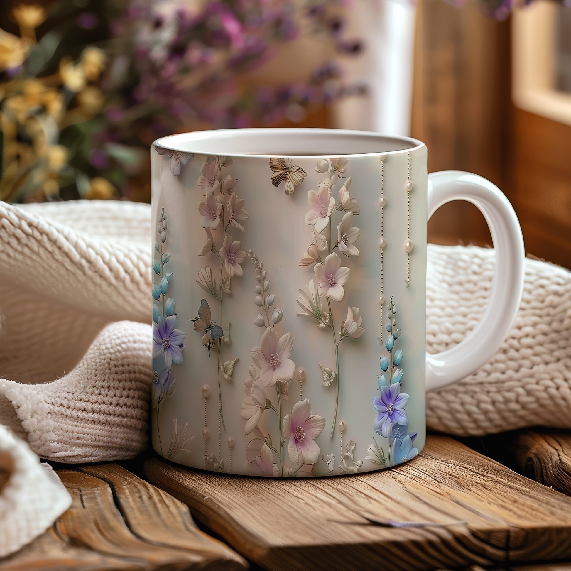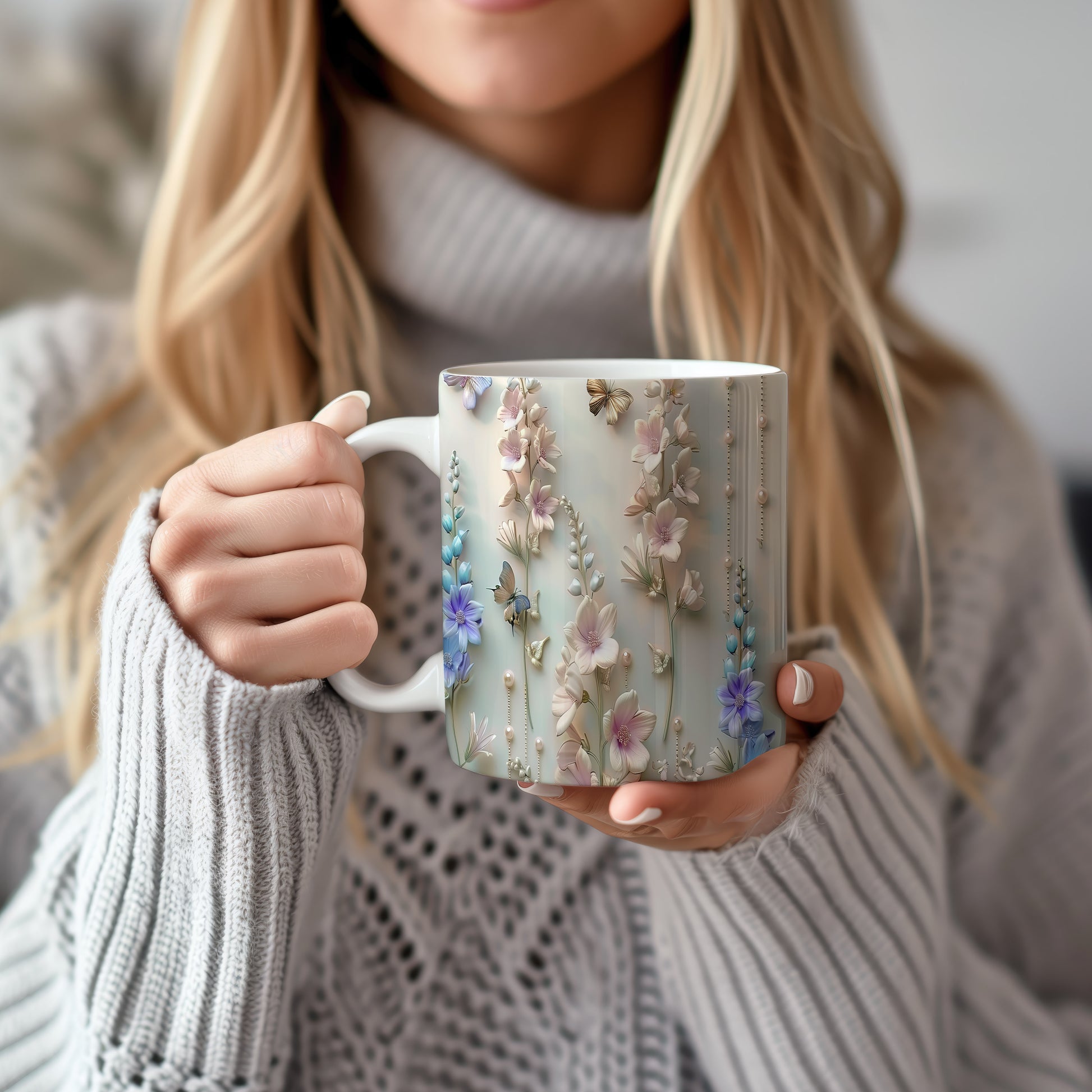 Hrnek s jemným květinovým motivem a motýlky je ideální volbou pro milovníky přírody a romantiky. Tento elegantní kousek potěší každého, kdo hledá originální dárek pro blízké. Materiál: keramika. Objem: 330 ml. Vhodné do myčky i mikrovlnky. Díky svému designu přináší do každodenního pití radost a pohodu.
