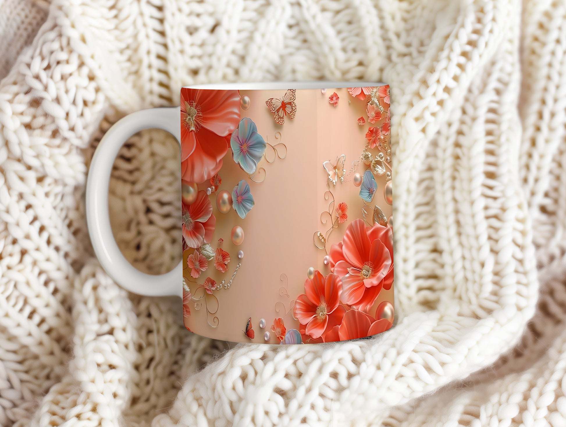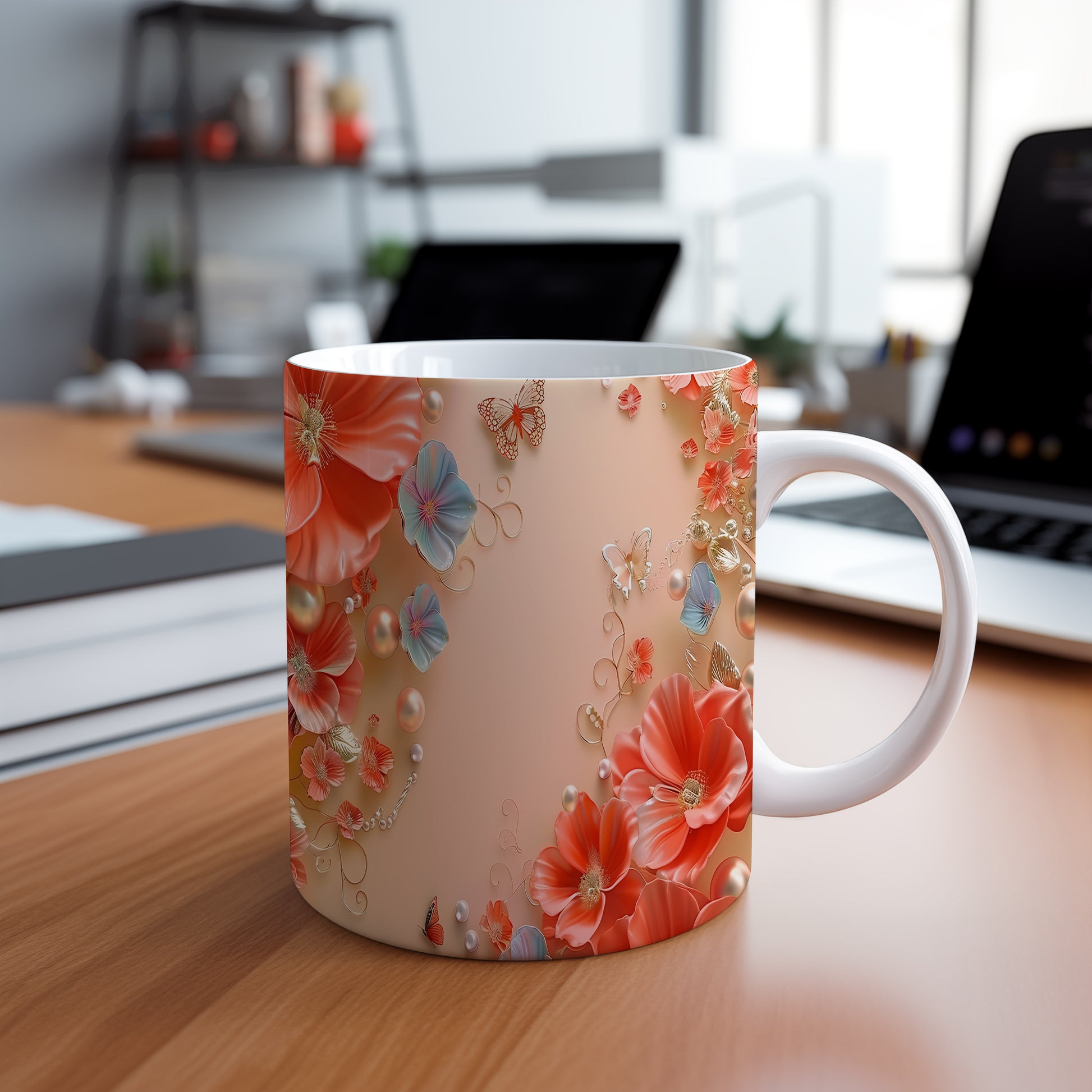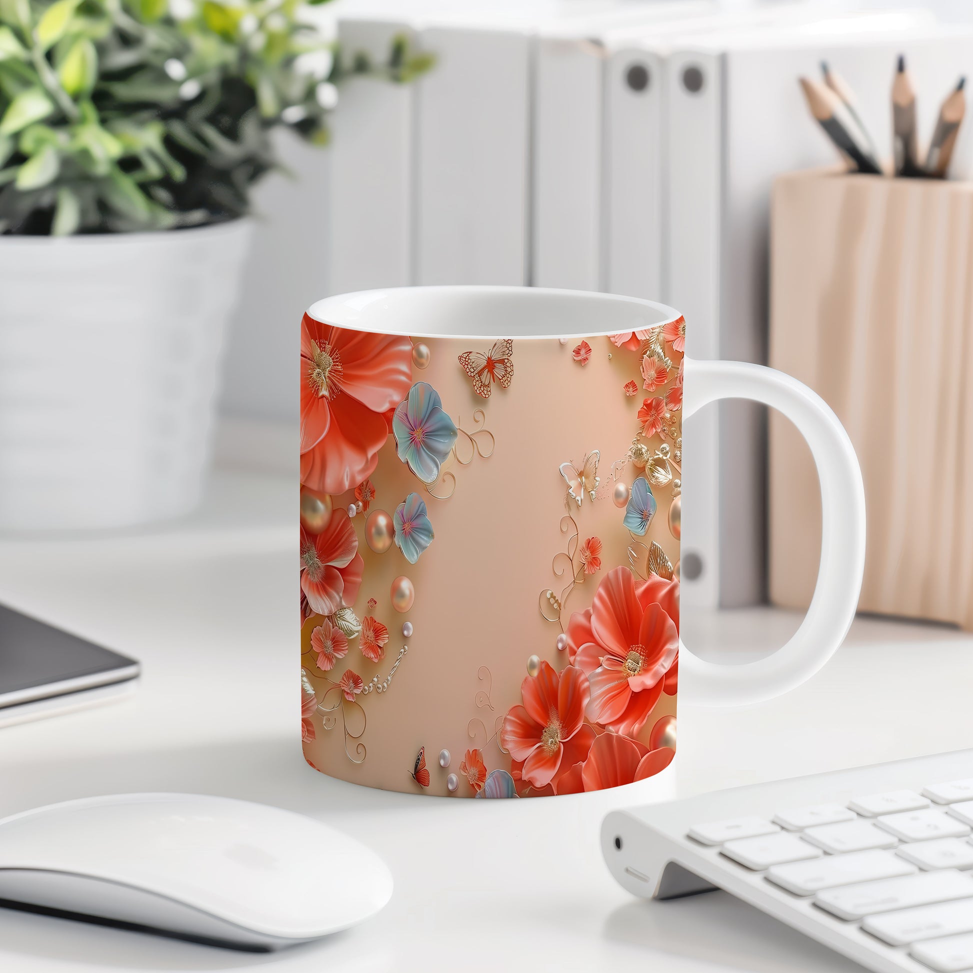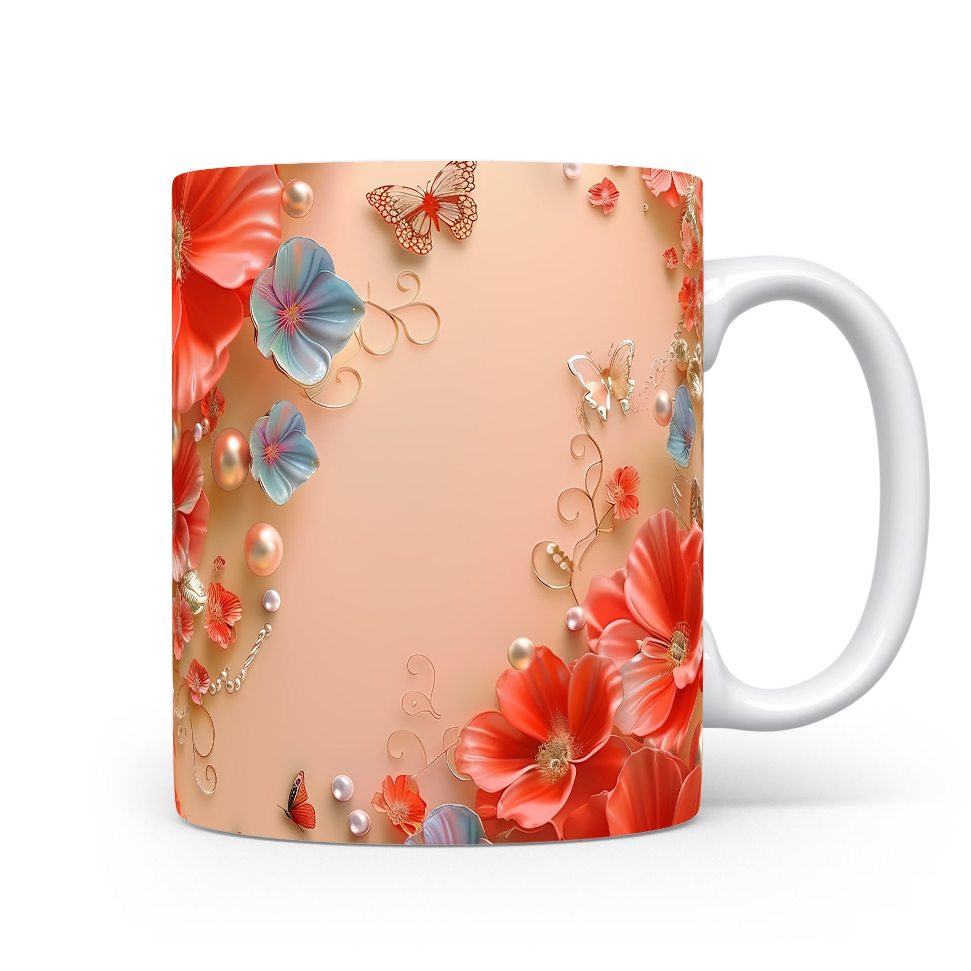 Hrnek s květinovým motivem a motýly – 3D efektem