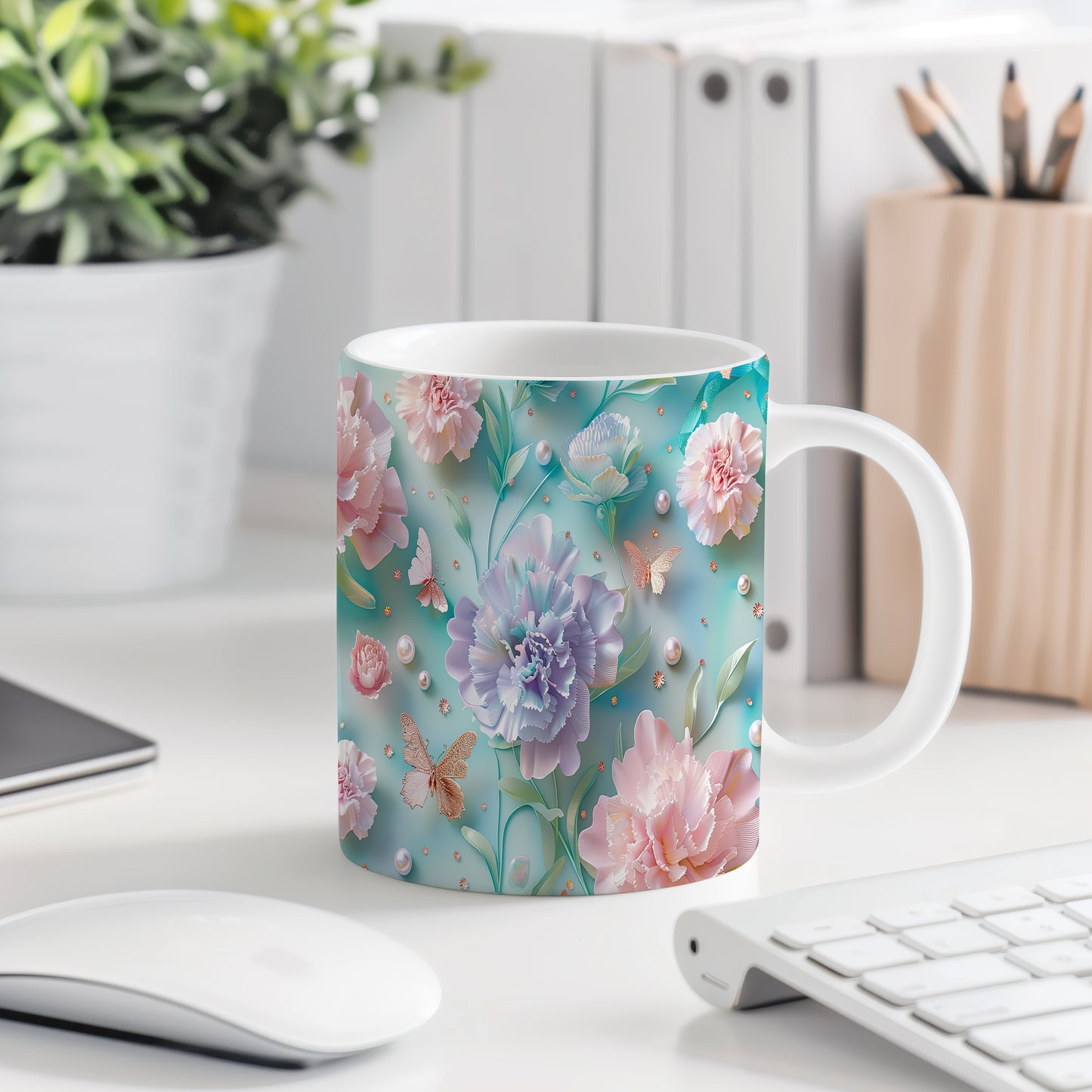 Tento elegantní hrnek s květinovým motivem a motýly je ideálním doplňkem pro milovníky přírody. Skvěle se hodí jako dárek pro přátele nebo rodinu, kteří ocení krásu a jemnost. Materiál: keramika. Objem: 330 ml. Vhodné do myčky i mikrovlnky. Užívejte si své oblíbené nápoje v krásném designu, který potěší každé ráno.