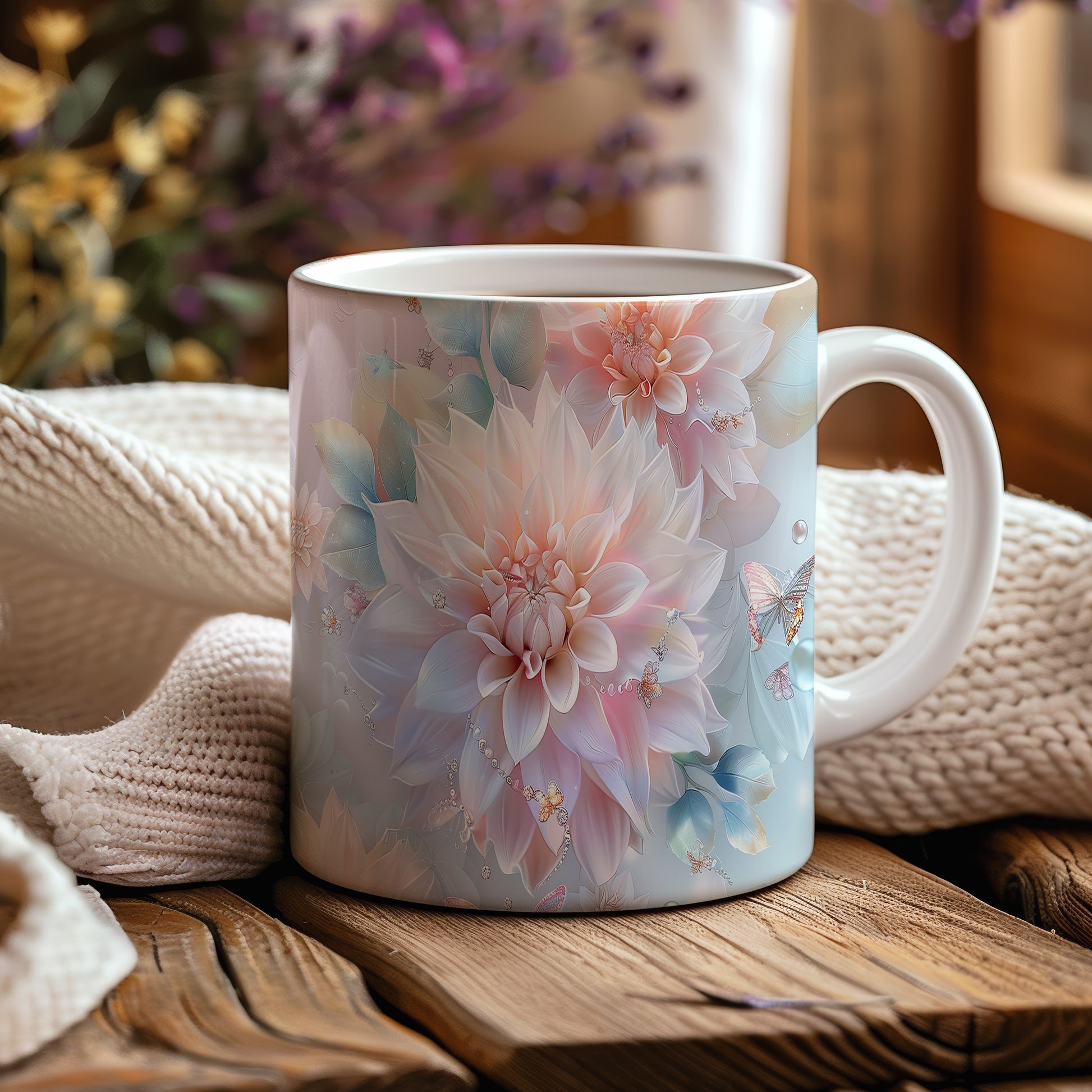 Keramický hrnek s krásným květinovým motivem a motýly je ideální pro každodenní používání. Skvěle se hodí jako dárek pro milovníky přírody a romantiky. Materiál: keramika. Objem: 330 ml. Vhodné do myčky i mikrovlnky. Tento hrnek přináší radost z pití oblíbeného nápoje a dodává každému dni barevnost.