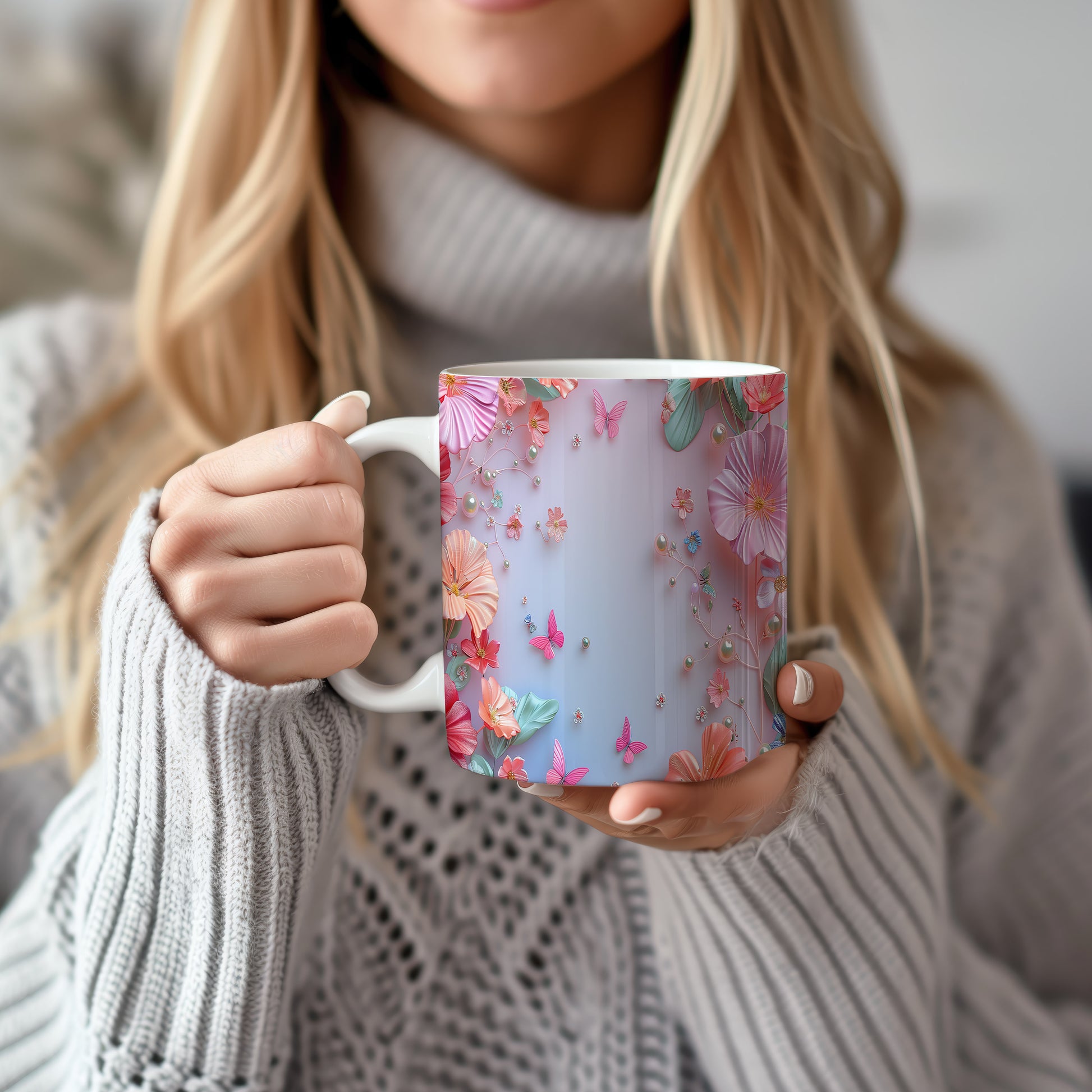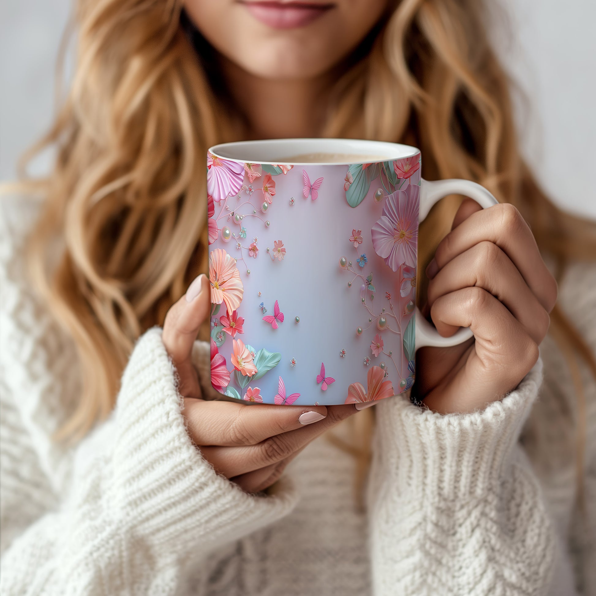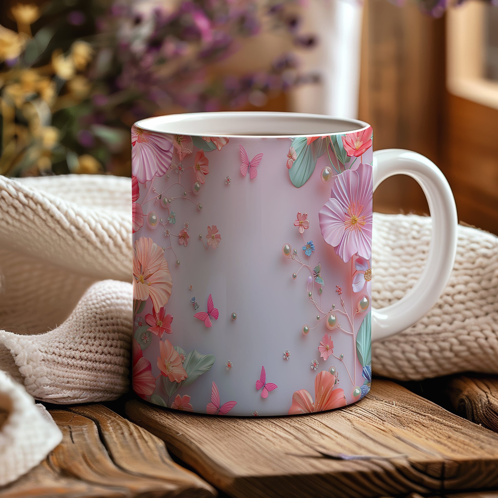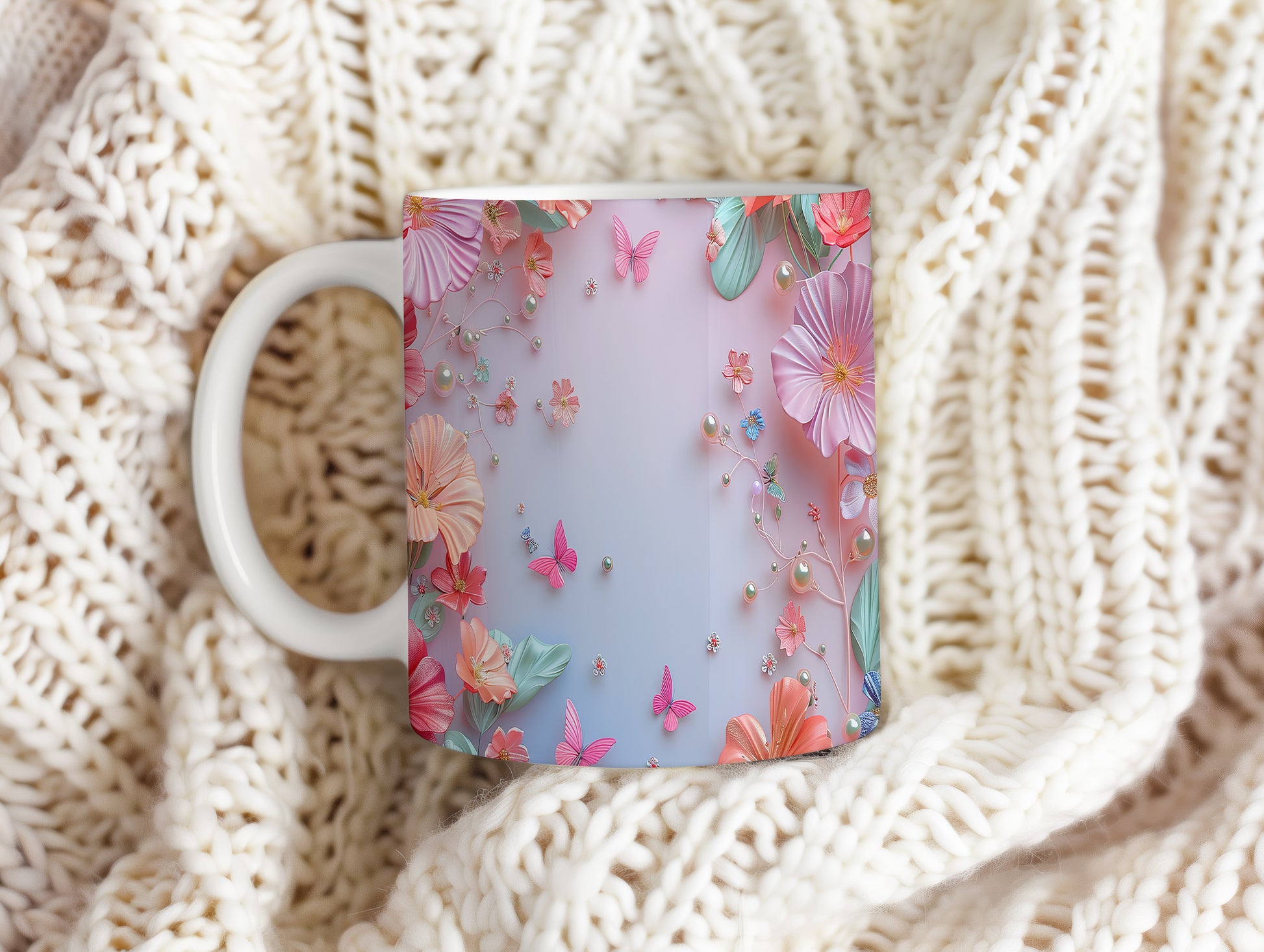 Hrnek s květinovým motivem a motýly – speciální edicí
