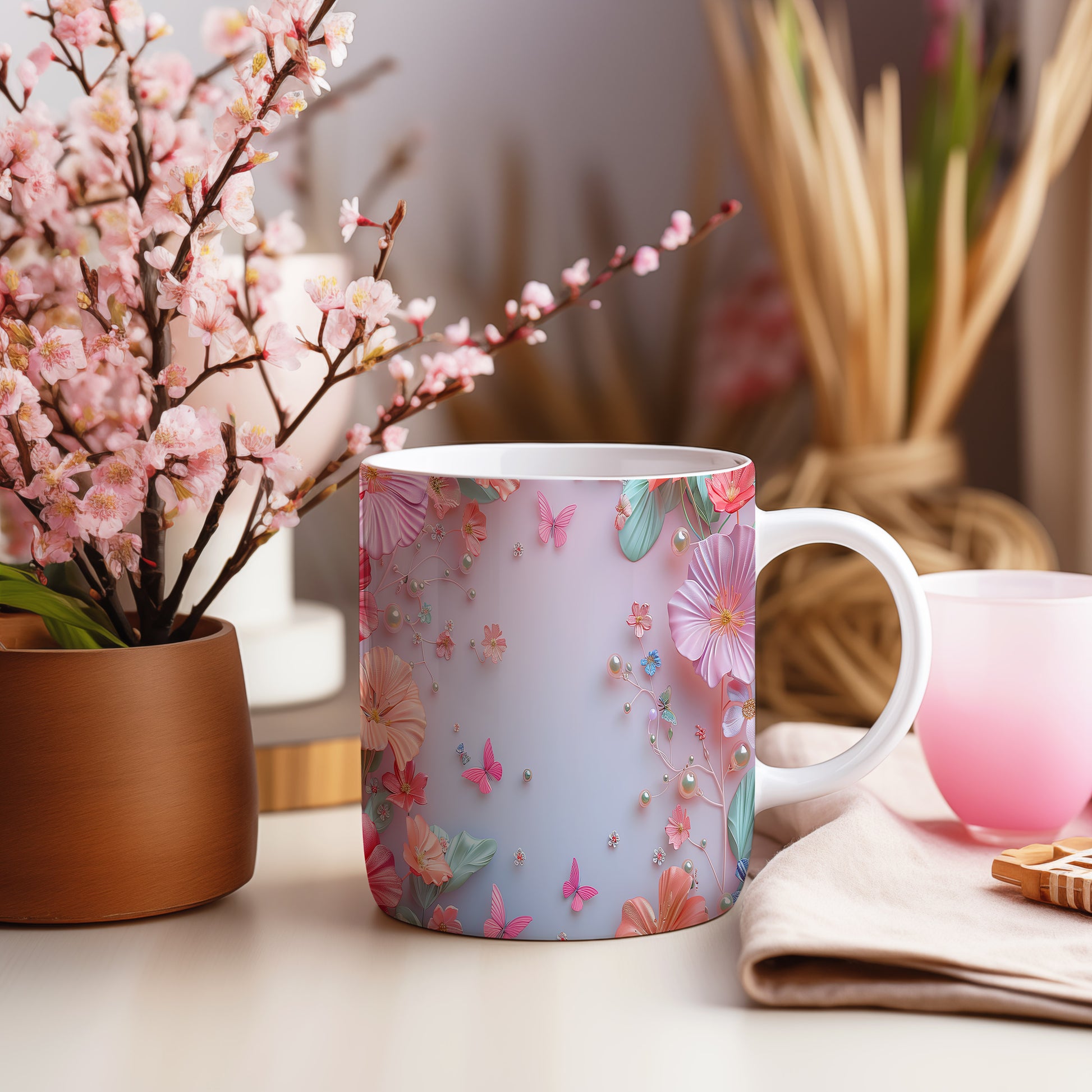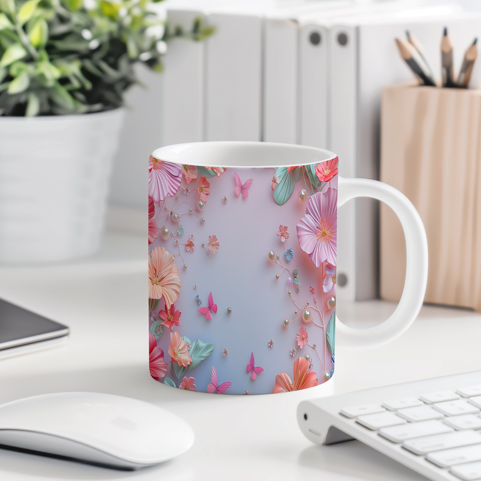 Tento keramický hrnek je zdobený krásným květinovým motivem a barevnými motýly. Je ideální pro milovníky přírody a skvělým dárkem pro přátele či rodinu. Materiál: keramika. Objem: 330 ml. Vhodné do myčky i mikrovlnky. Užívejte si svůj oblíbený nápoj s nádechem elegance.