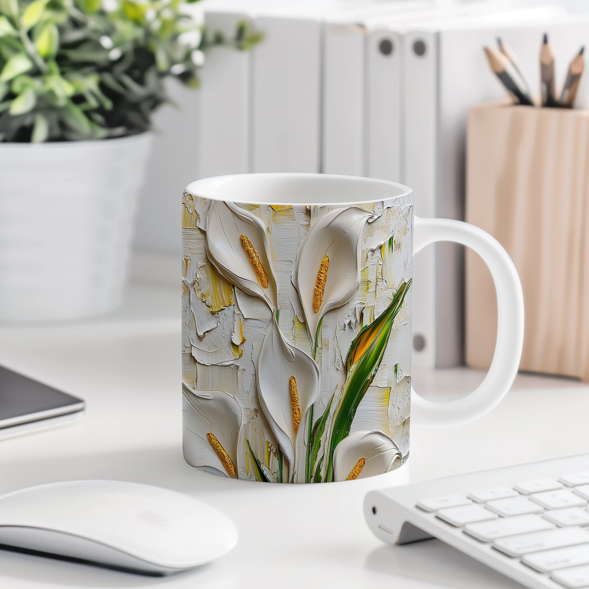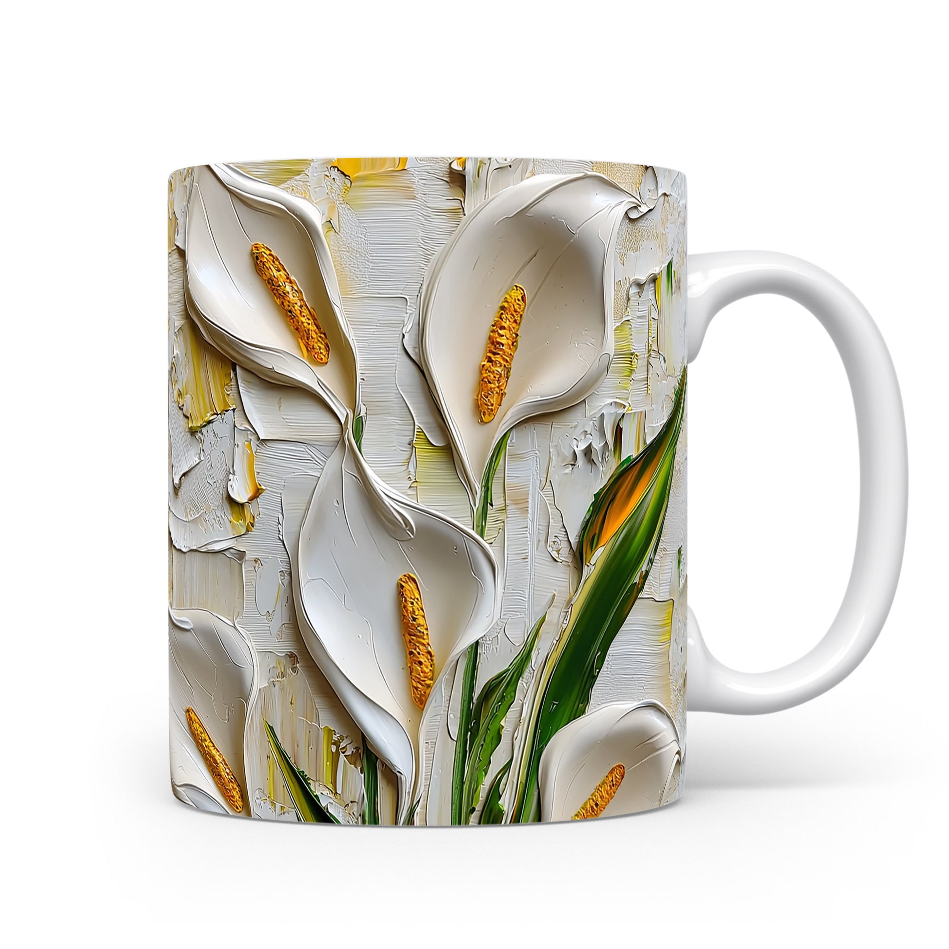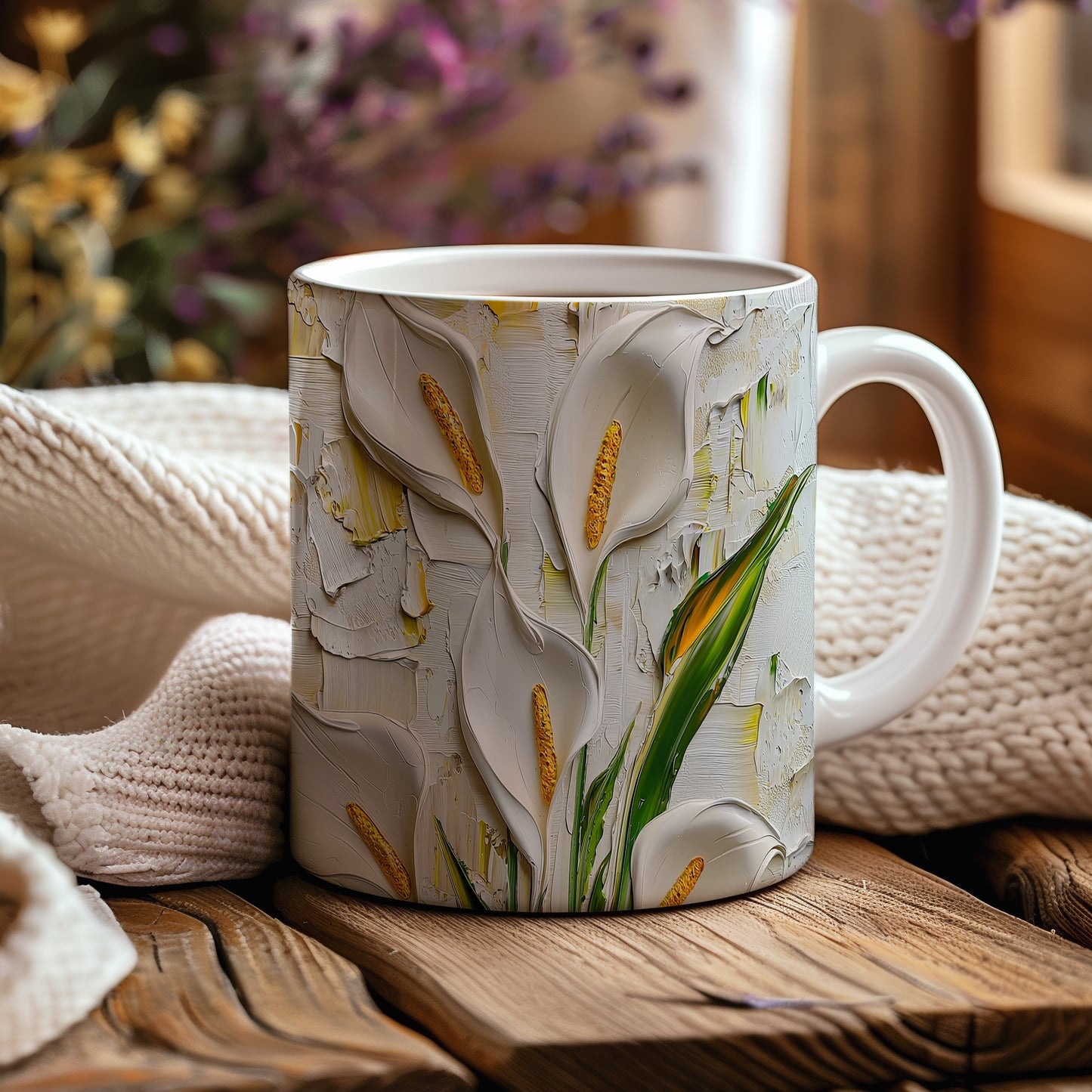 Tento keramický hrnek zdobí elegantní květinový motiv bílých lilií a zelených listů. Je ideální pro milovníky květin a skvělým dárkem pro přátele či rodinu. Materiál: keramika. Objem: 330 ml. Vhodné do myčky i mikrovlnky. Díky svému designu přináší do každodenního pití radost a styl.