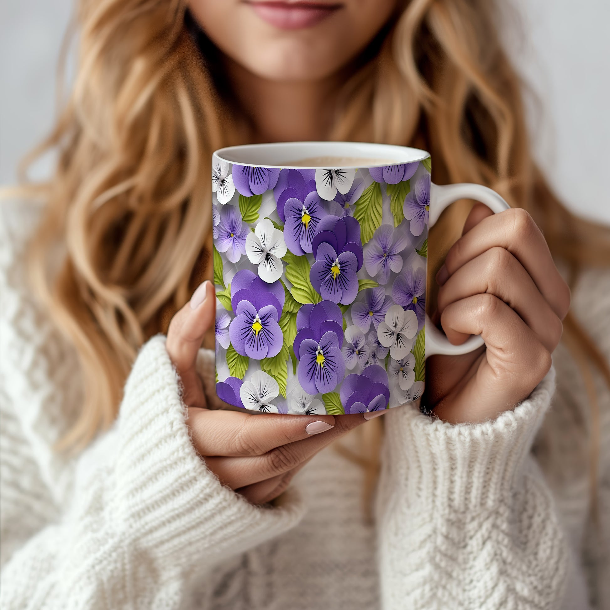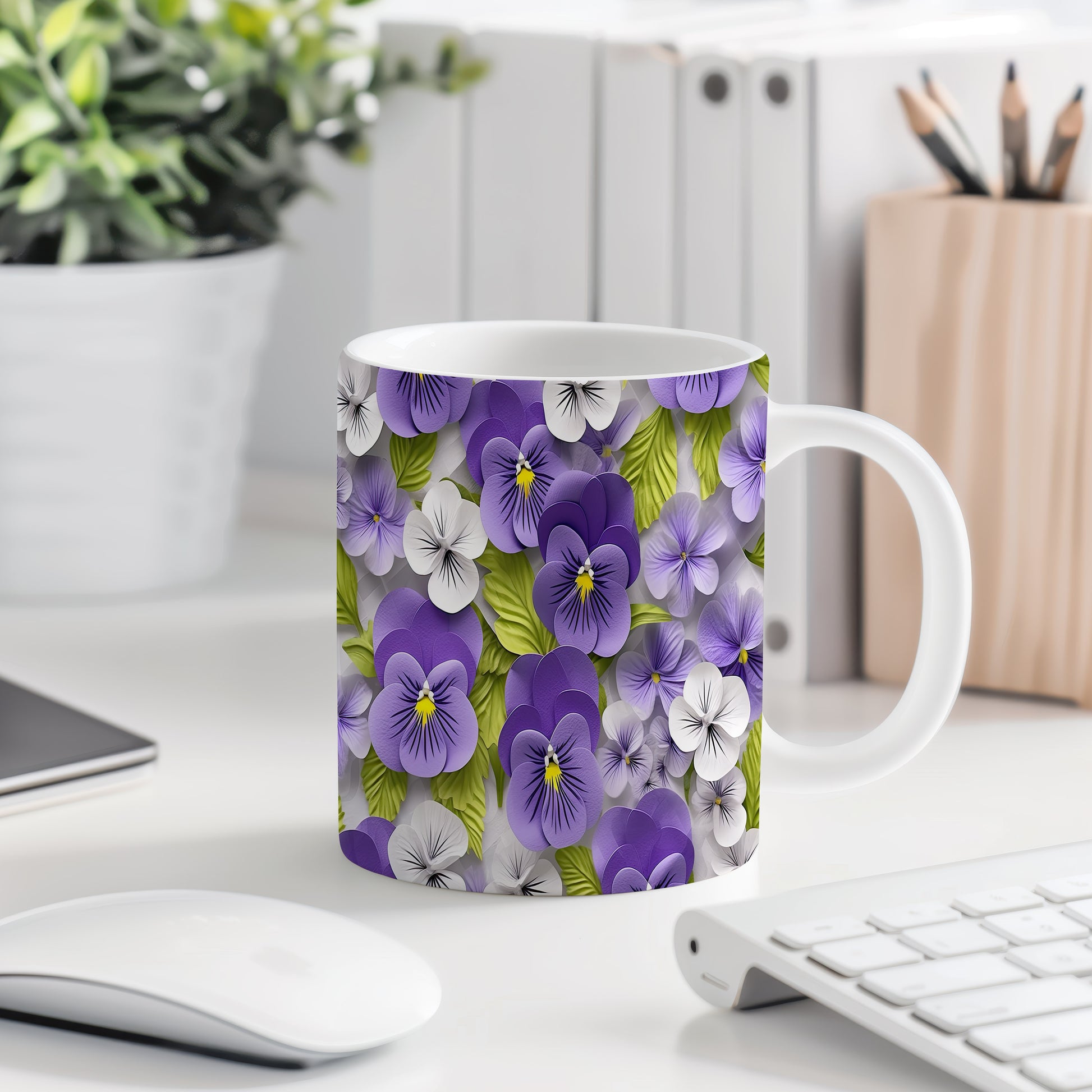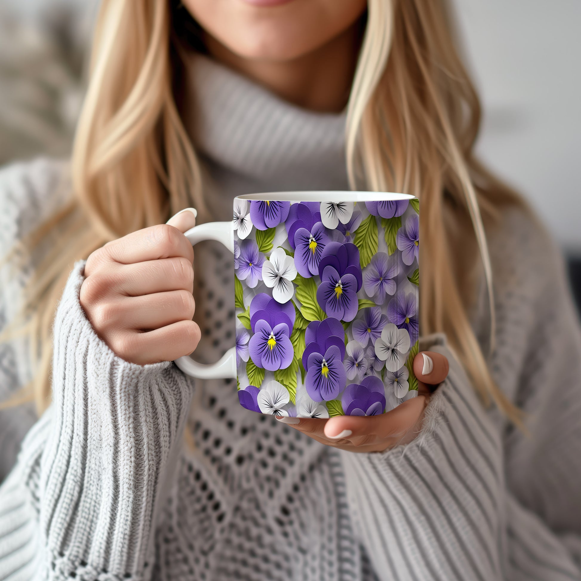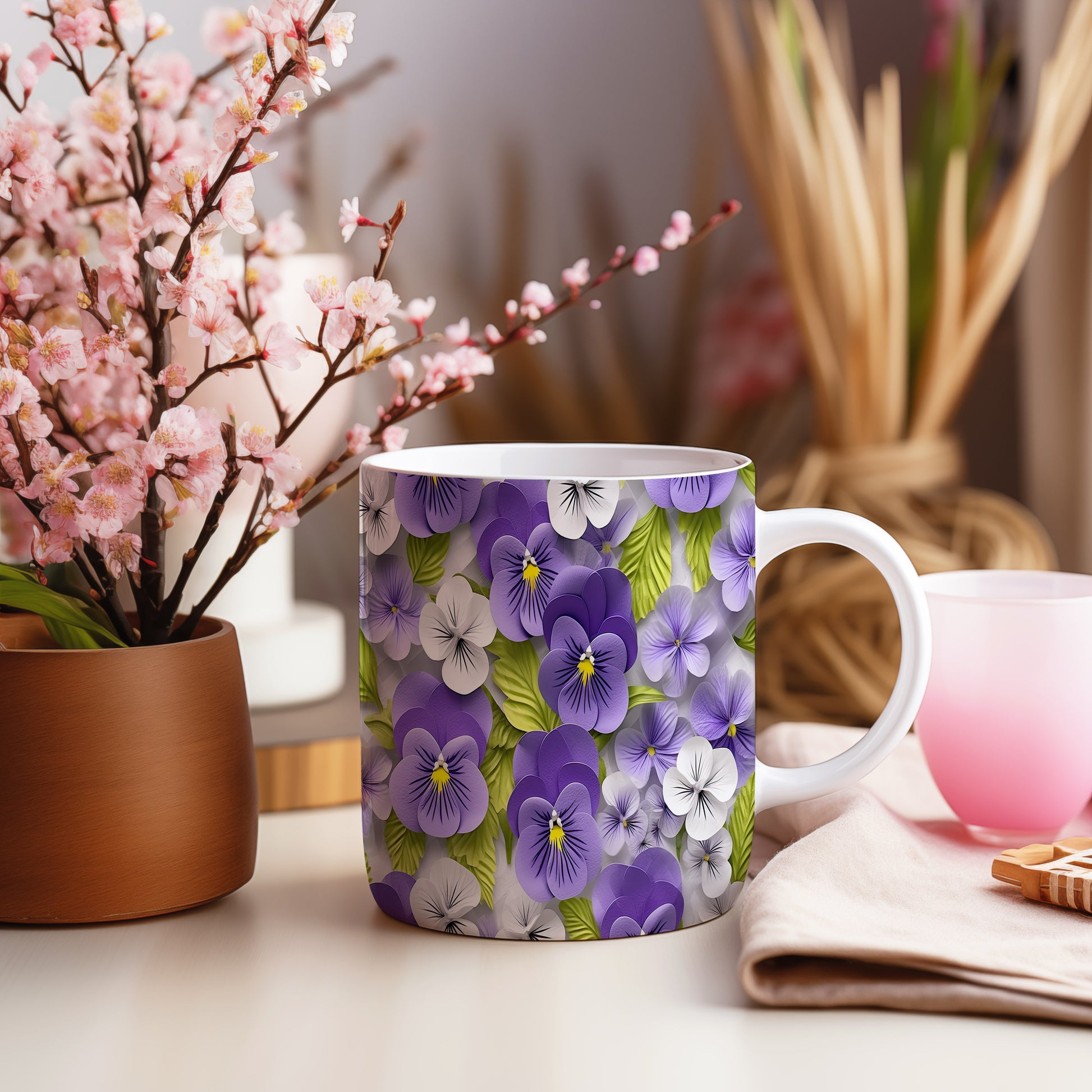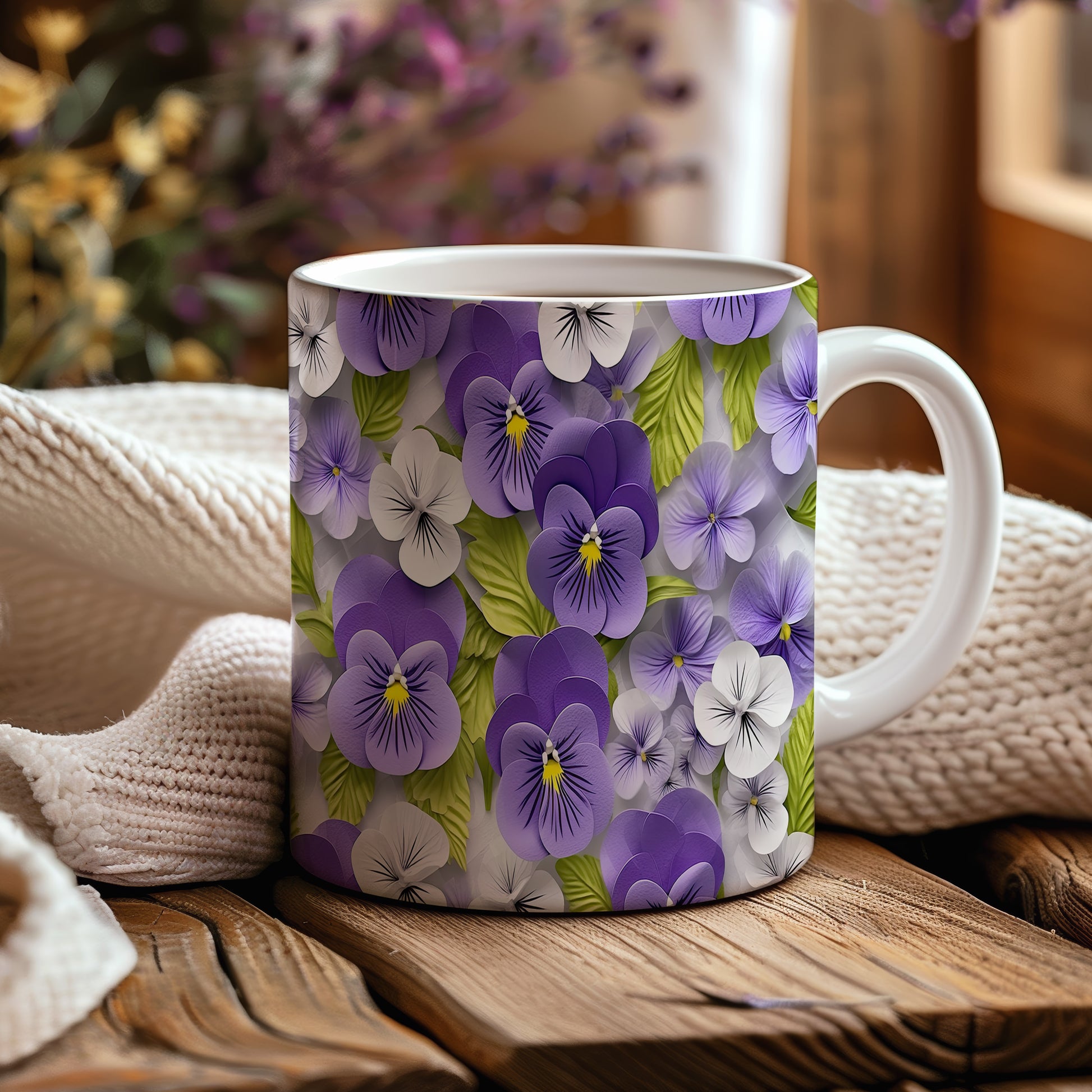 Tento hrnek je ozdobený krásnými fialkami a lístky, které přinášejí svěží atmosféru. Je ideální pro milovníky přírody a květin, skvělý tip na dárek pro blízké. Materiál: keramika. Objem: 330 ml. Vhodné do myčky i mikrovlnky. Užijte si každé sousto s tímto stylovým hrnkem.