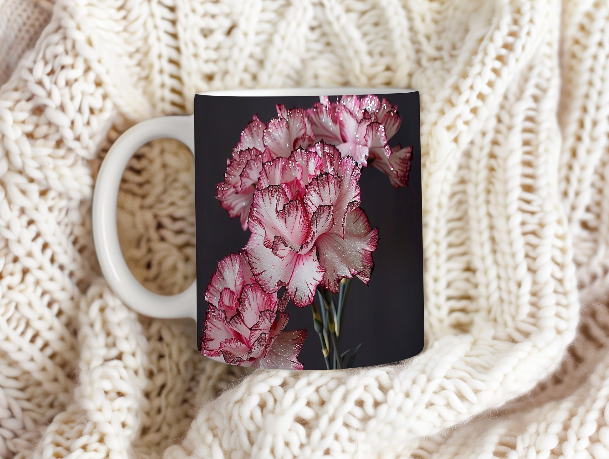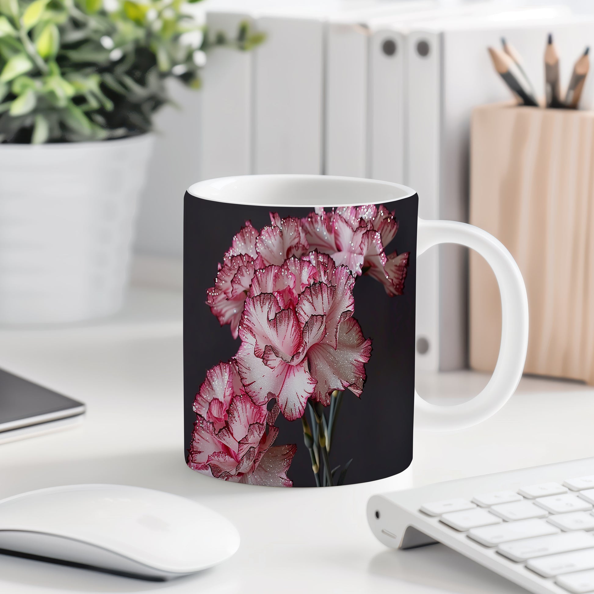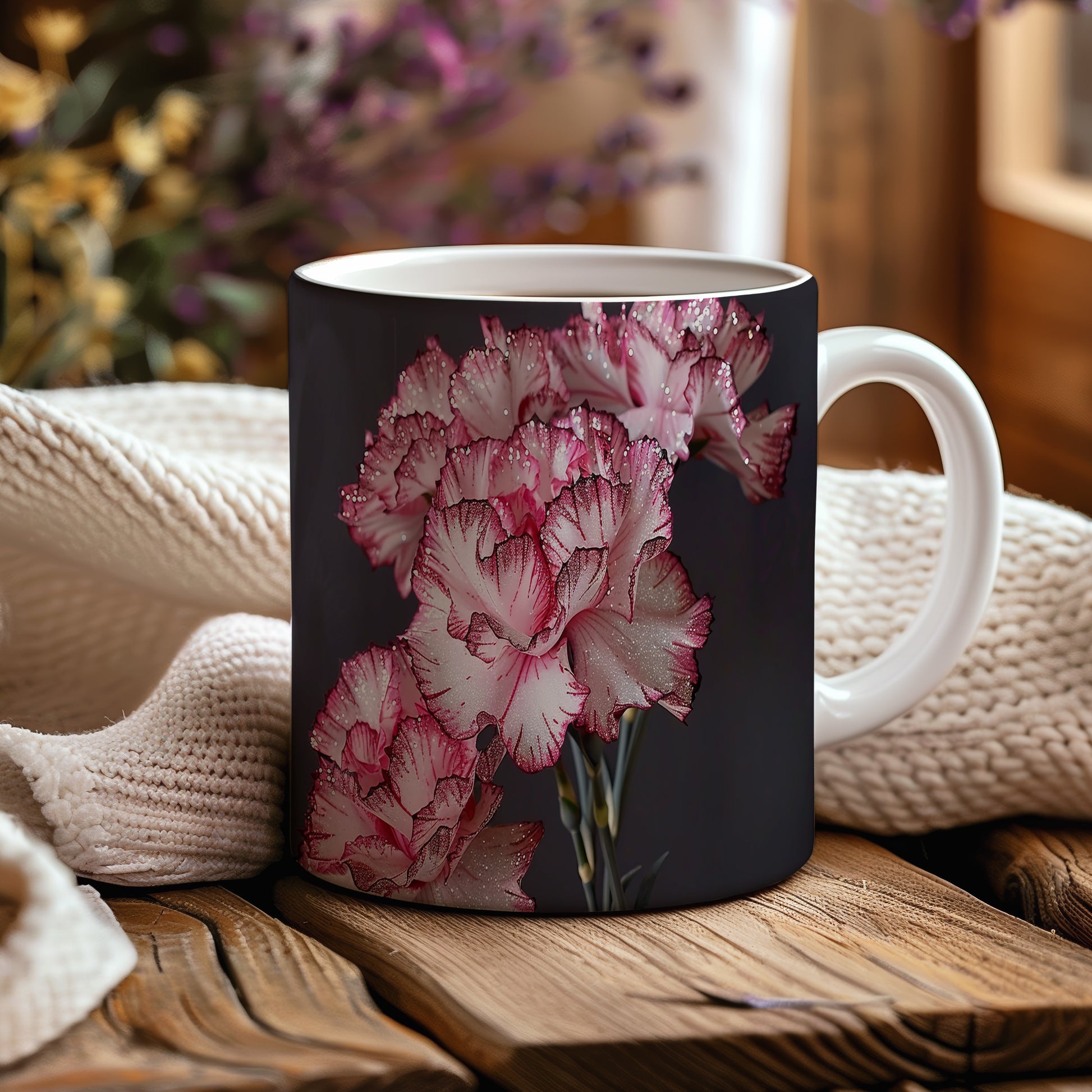 Hrnek s květinovým motivem karafiátů přináší do vašeho dne jemnost a eleganci. Je ideální pro milovníky květin a skvělým dárkem pro každého, kdo ocení krásu přírody. Materiál: keramika. Objem: 330 ml. Vhodné do myčky i mikrovlnky. Tento hrnek vám zpříjemní každé sousto a nápoj, který si do něj nalijete.