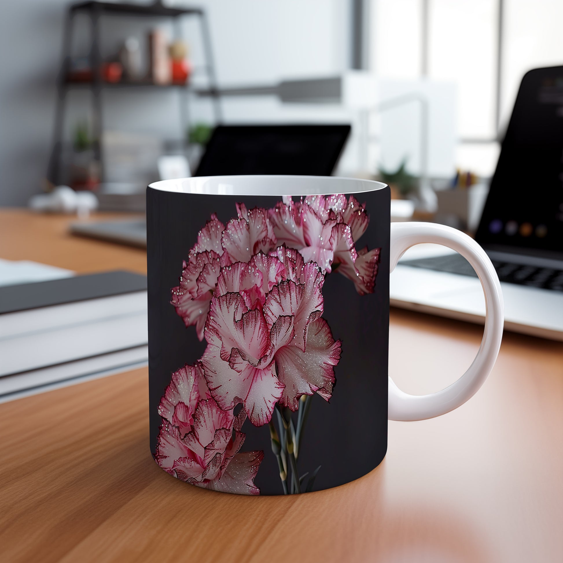 Hrnek s květinovým motivem karafiátů