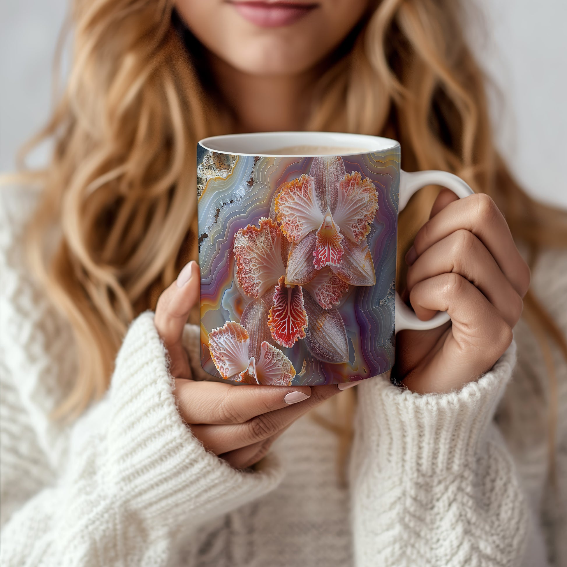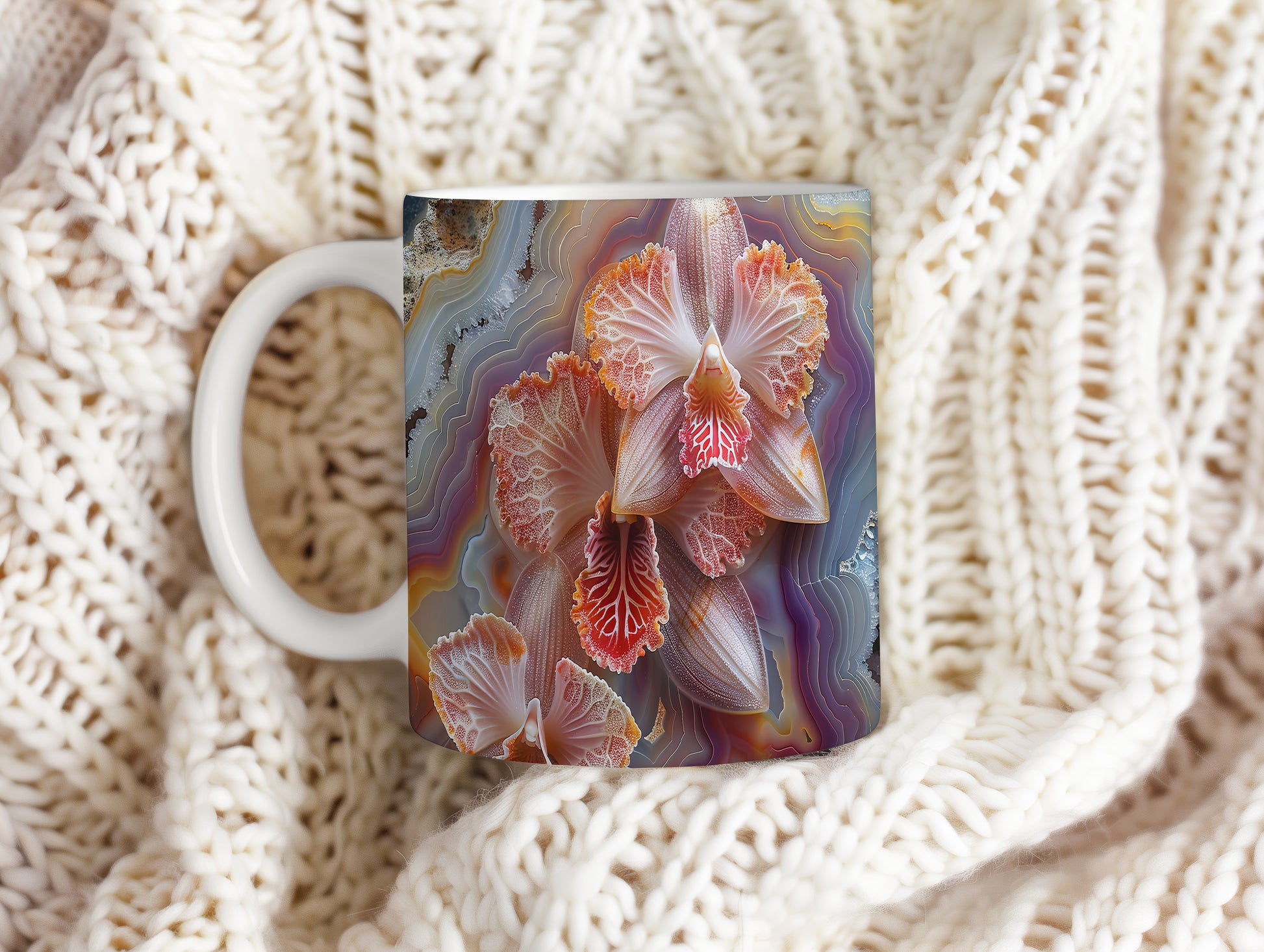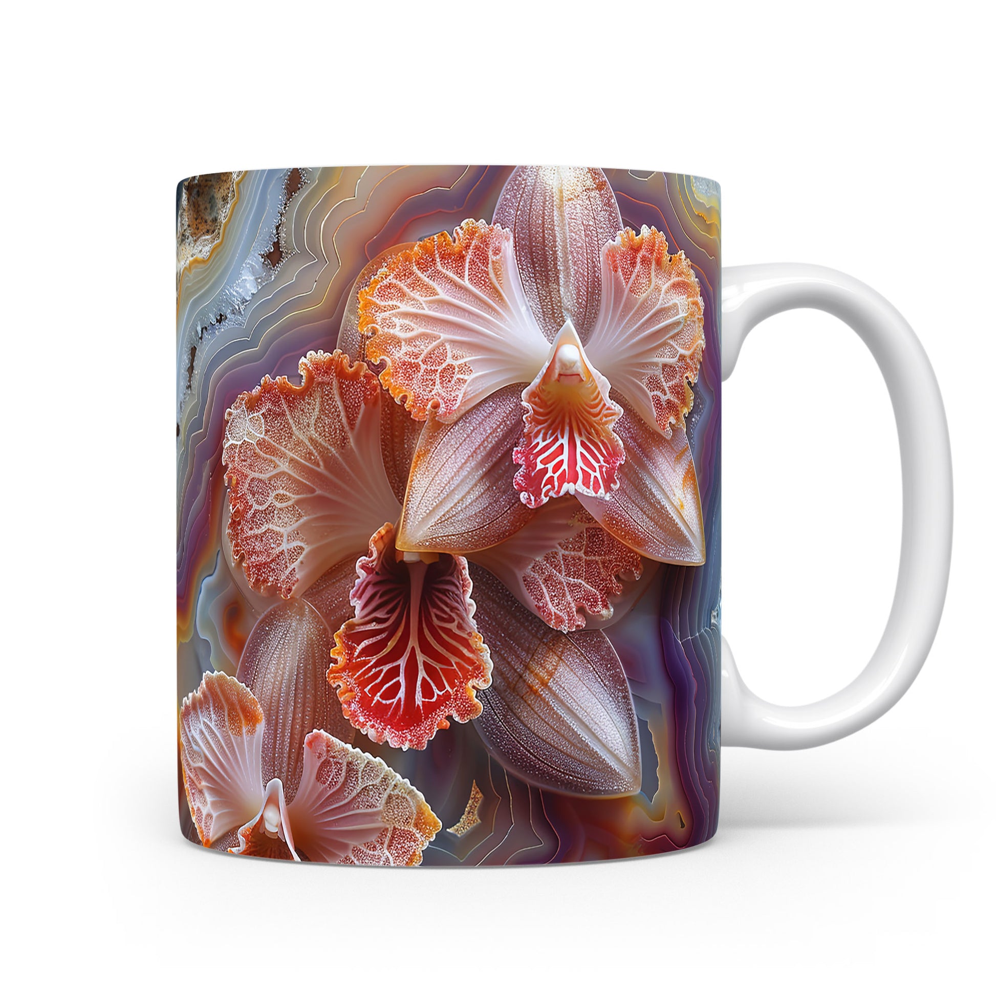 Hrnek s květinovým motivem orchidejí – malířským vzhledem